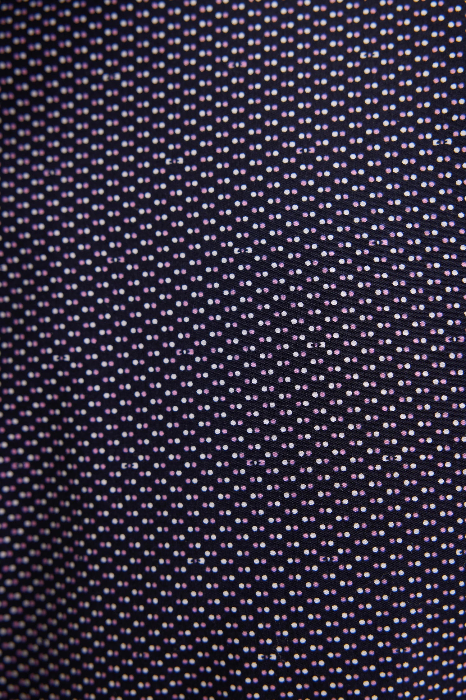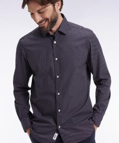 Avec son imprimé micro-pois discret rose ou bleu sur un fond marine, cette chemise à la coupe slim seyante affiche une allure moderne tout en respectant les codes de l’élégance Eden Park. Réalisée dans une popeline de coton douce et respirante, elle se distingue par l’absence de poche poitrine et par la broderie nœud papillon en bas de pièce, clin d’œil minimaliste à l’univers French Flair de la maison