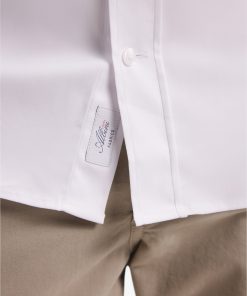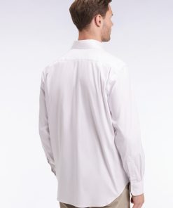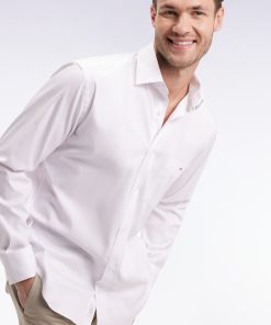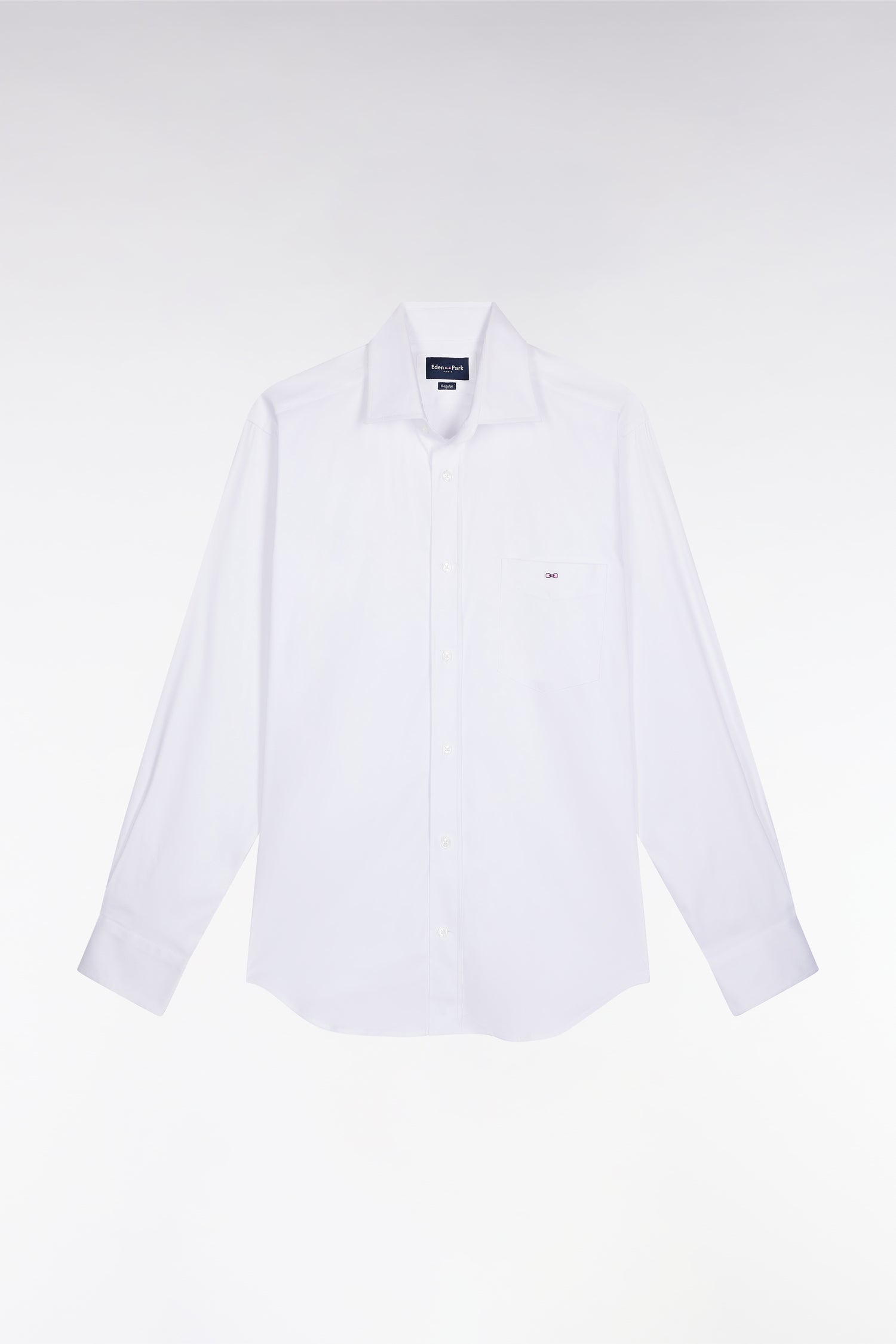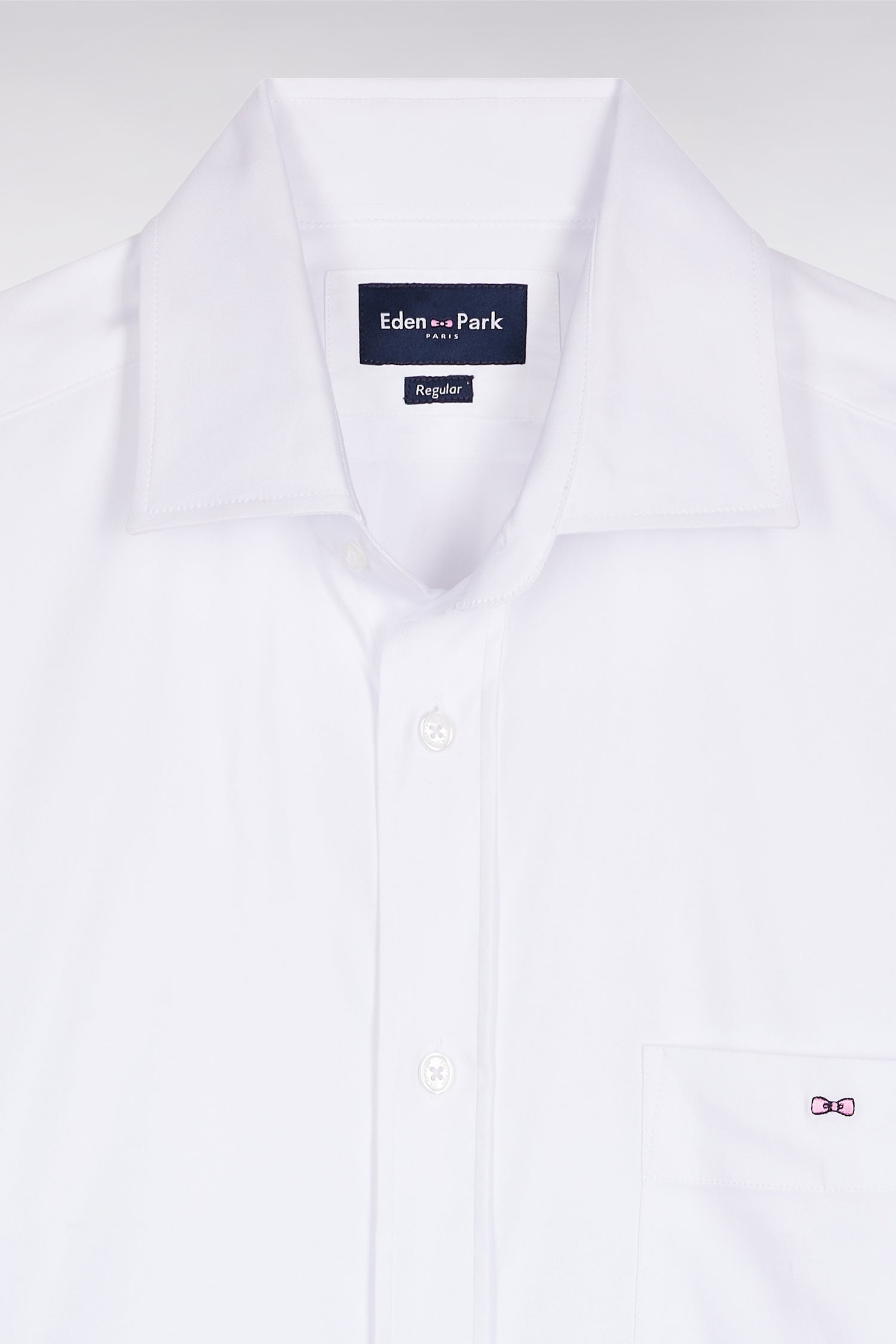 Alliance parfaite entre douceur et sophistication, cette chemise unie réalisée en popeline de coton Pima stretch mélangée arbore un col libre pour plus de décontraction. Sa coupe droite, son double pli d’aisance dans le dos et ses finitions soignées en font une pièce polyvalente, à la fois élégante et facile à vivre. Une broderie nœud papillon rose vient discrètement signer ce modèle intemporel pensé pour accompagner toutes vos silhouettes du quotidien