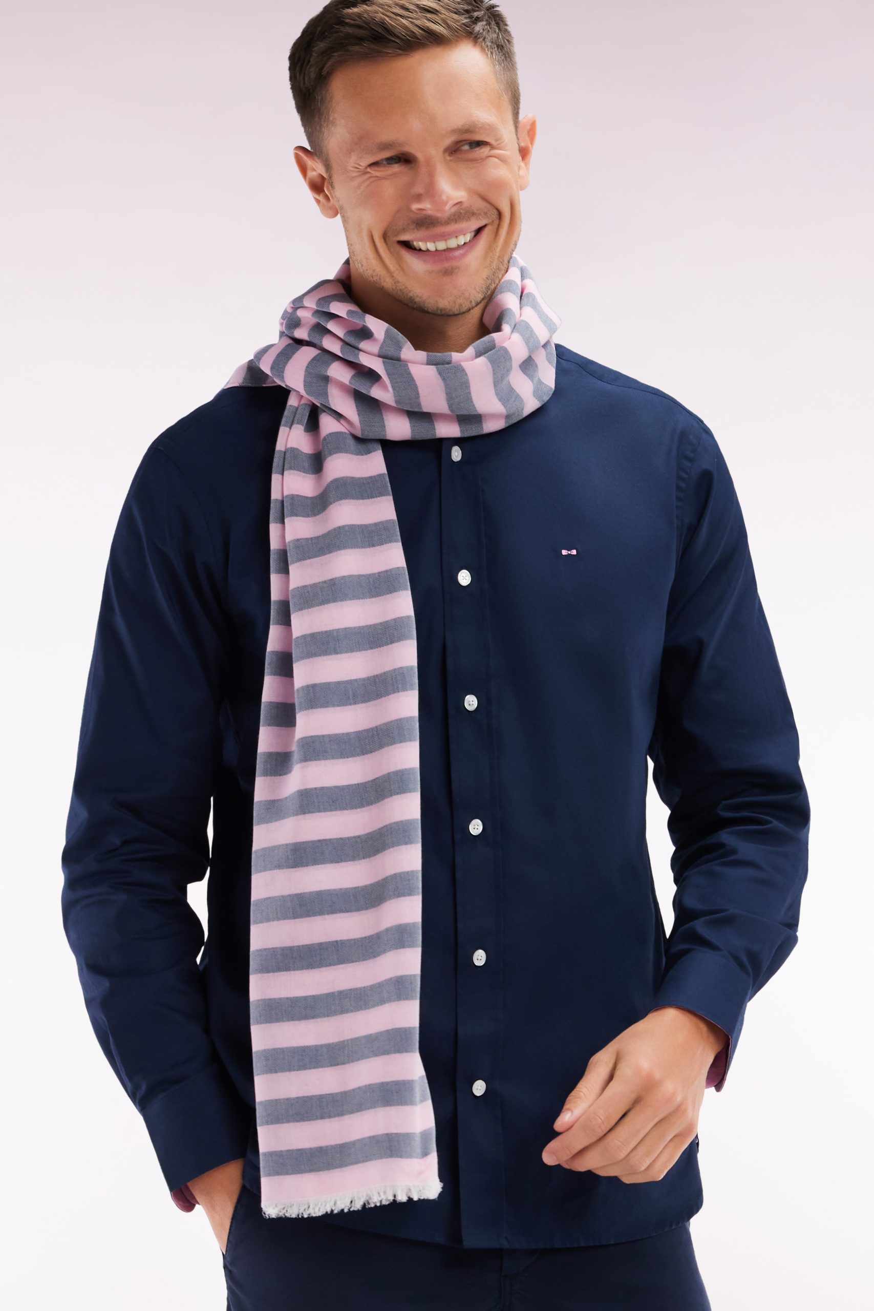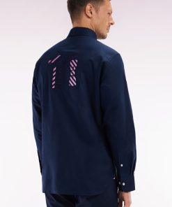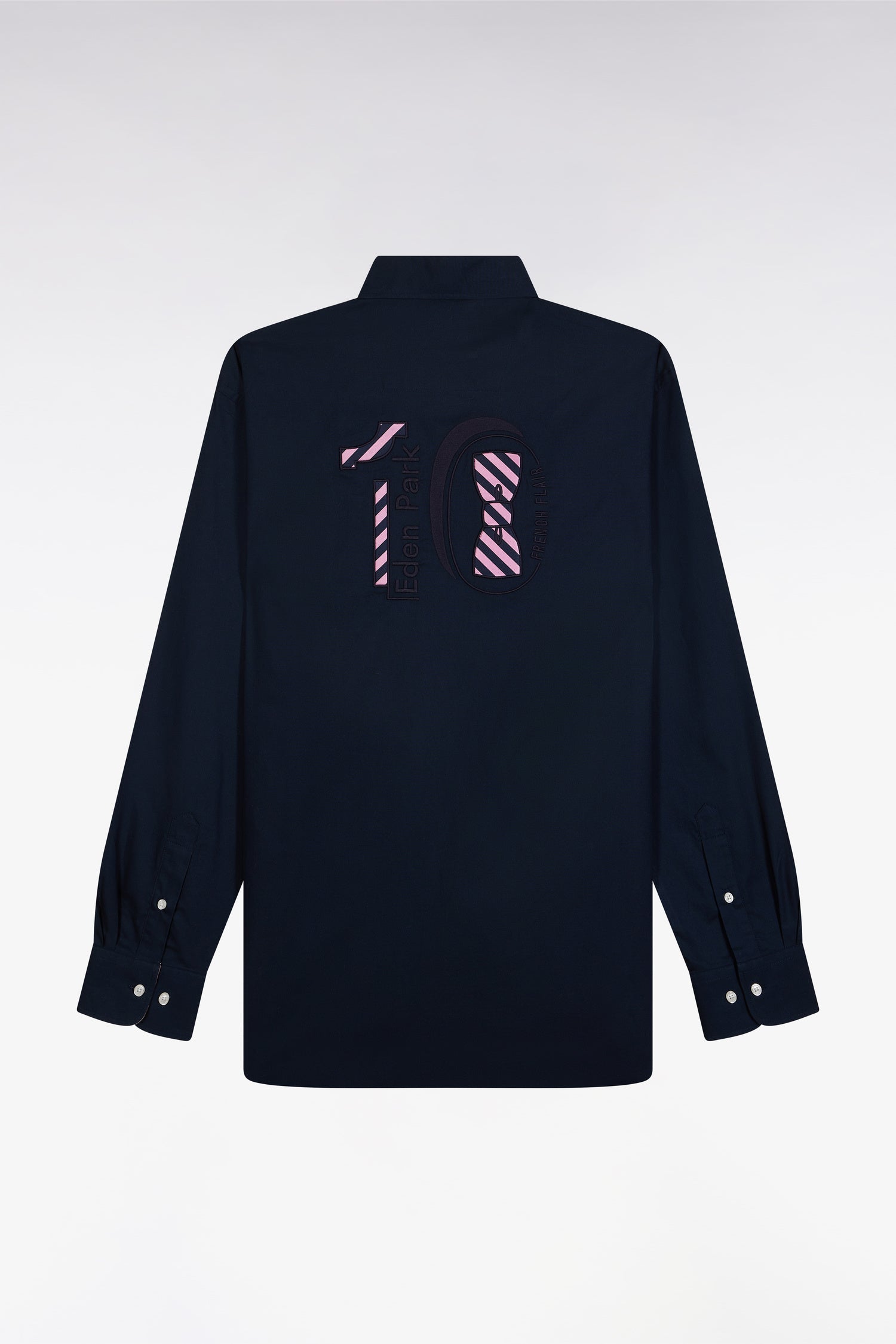 Cette chemise homme incarne l’esprit de notre Maison avec ses détails emblématiques. Confectionnée en coton pinpoint, elle se distingue par une broderie numéro 10 dans le dos et un nœud papillon sur la poitrine, symboles iconiques de l’élégance sportive. Le pied de col contrasté et les détails en tissu cravate rayé ajoutent une touche de raffinement. Disponible en noir rayé de rose ou en blanc rayé de ciel, elle célèbre nos couleurs emblématiques et s’intègre parfaitement à un vestiaire casual-chic ou plus formel.