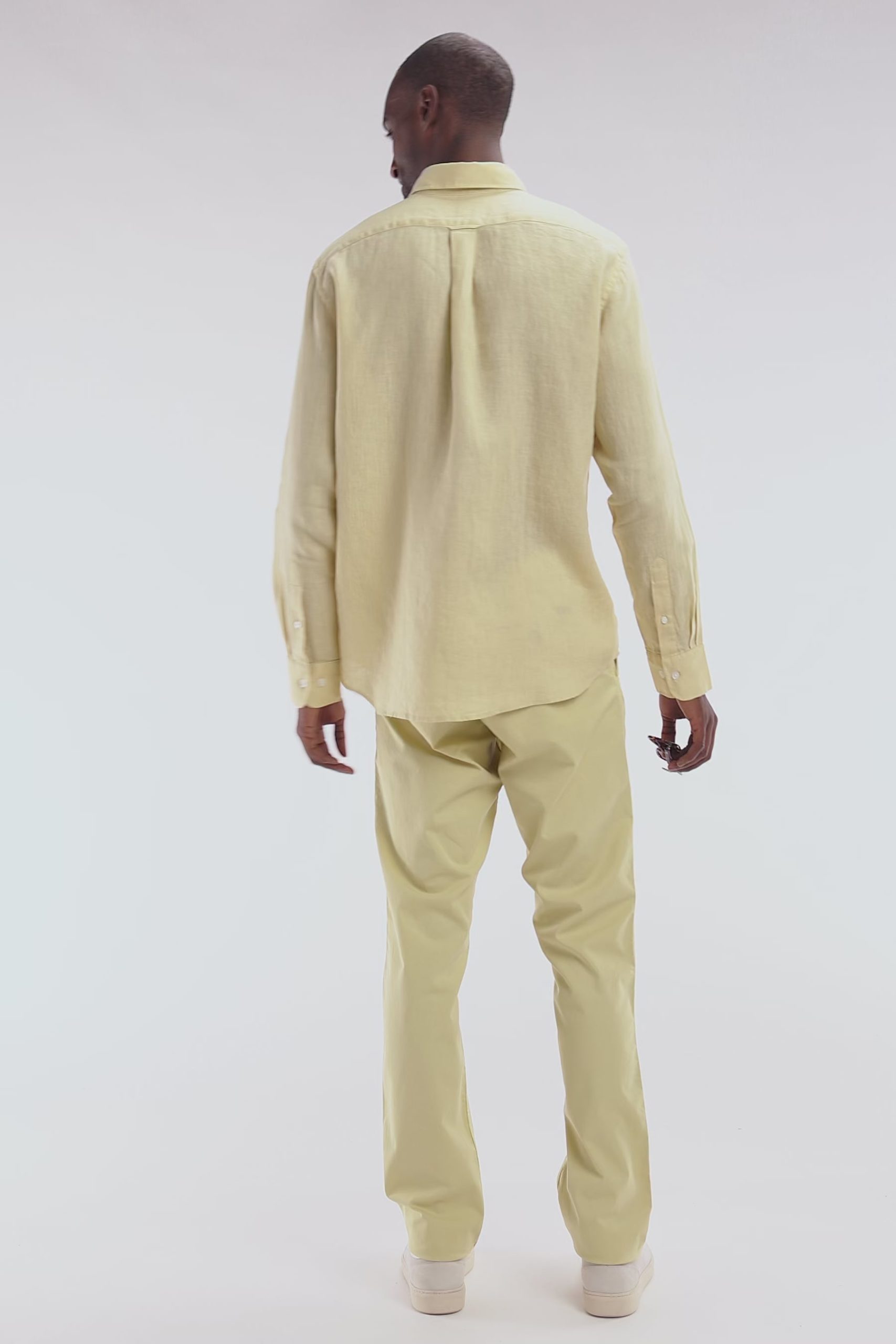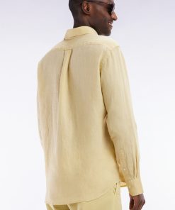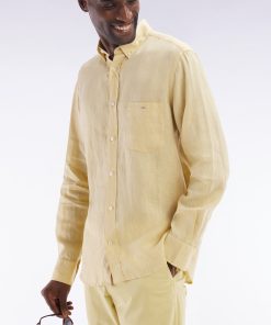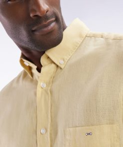 Eden Park Homme Men’s Chemise En Lin Ivoire Unie Coupe Droite