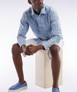 Le chambray permet d’apporter un effet de tissage en relief pour un aspect chiné, du plus bel effet sur cette chemise en coton grise légèrement délavée. Le choix d’un tissu italien haut de gamme vous assure confort et élégance. Cette chemise à la coupe slim ajustée se couvre d’un imprimé palmier qui apportera une touche exotique en toute élégance à vos silhouettes estivales, de la ville à la plage. Au dos, elle révèle un empiècement soigneusement travaillé.