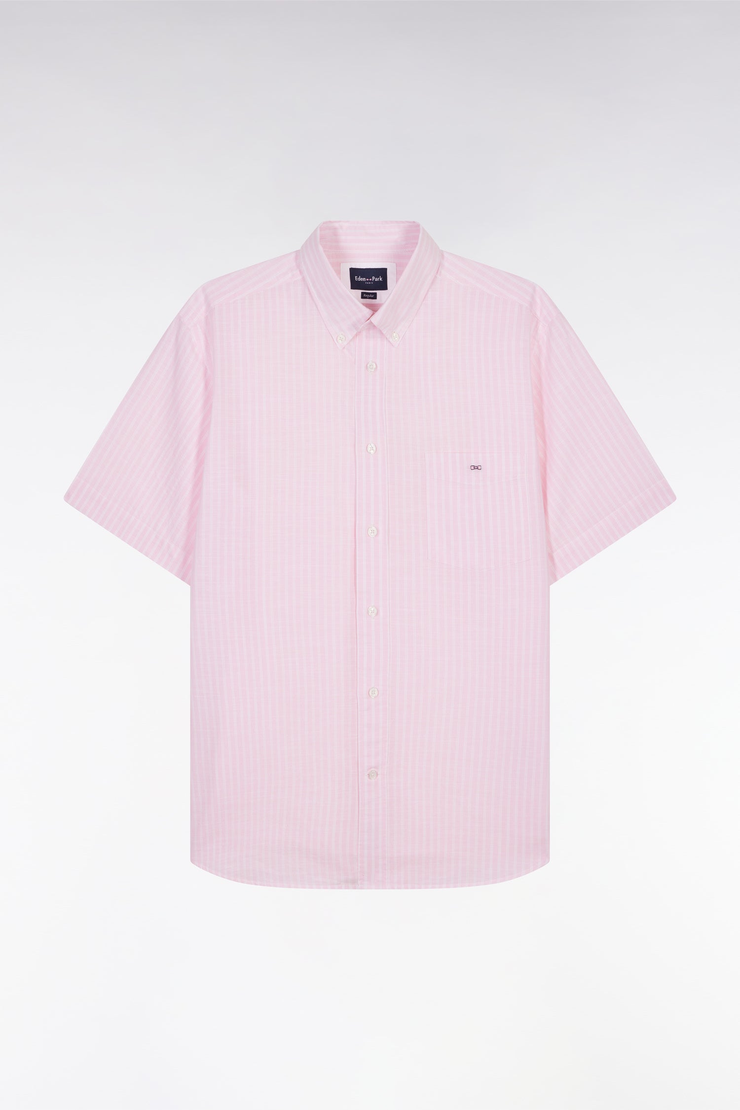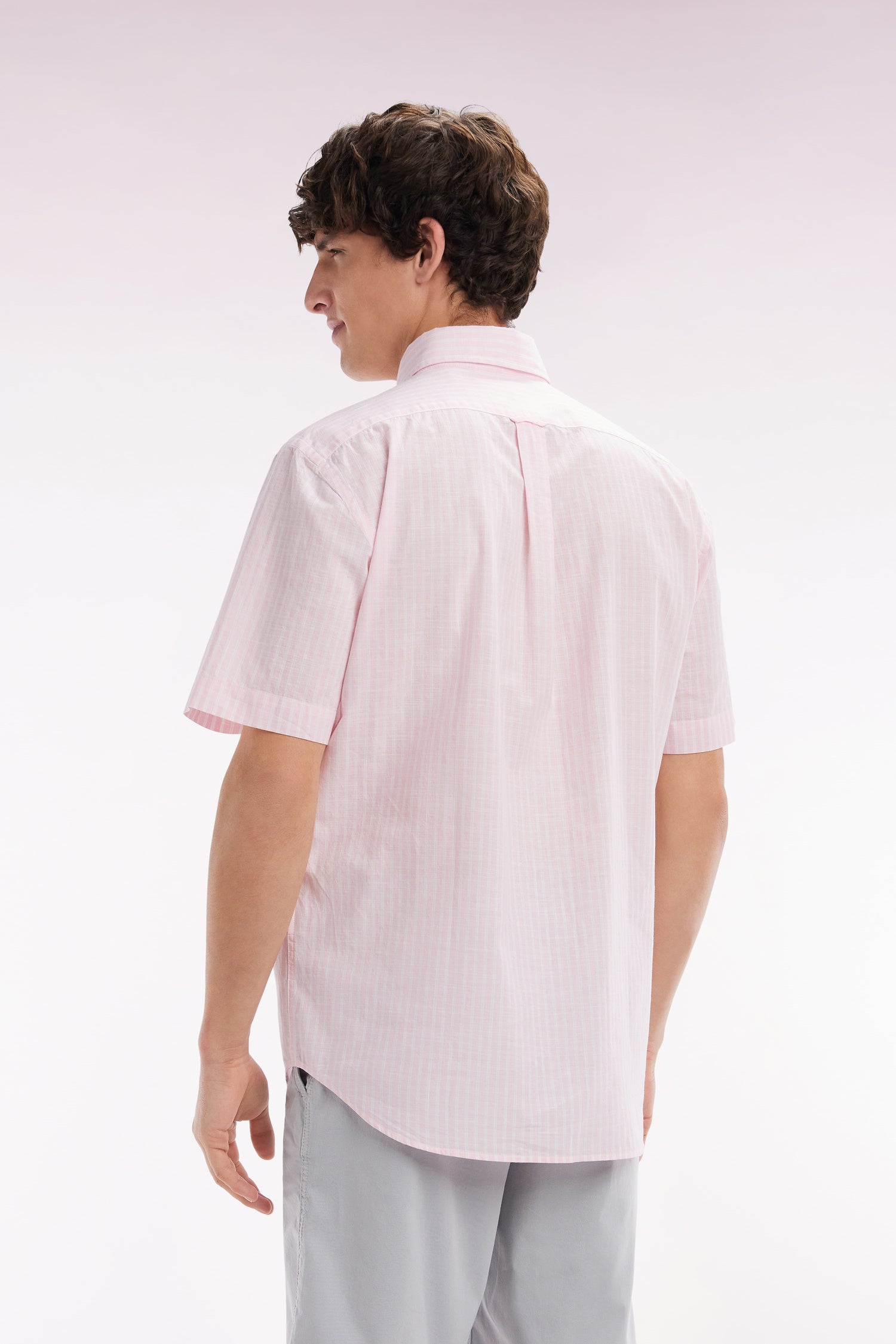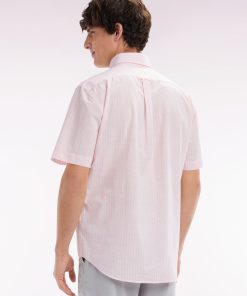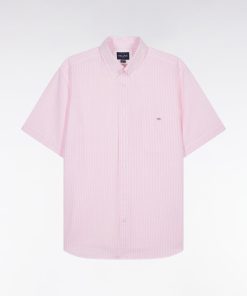 Eden Park Homme Men’s Chemise Rayée À Manches Courtes En Coton Rose Coupe Droite
