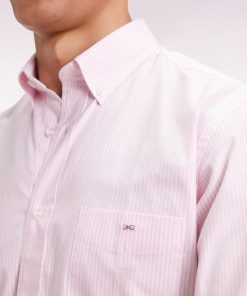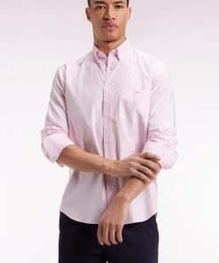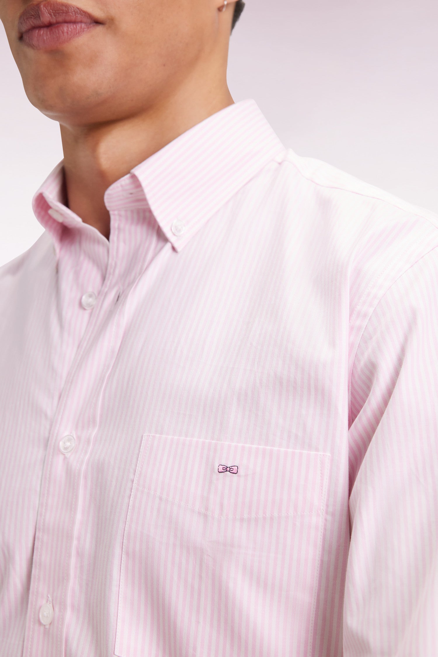 Eden Park Homme Men’s Chemise Rayée En Coton Rose Coupe Droite