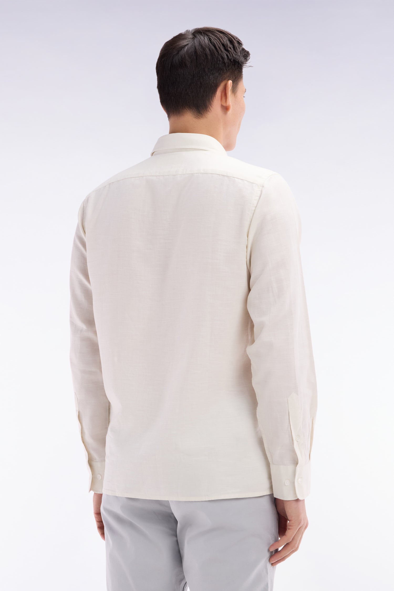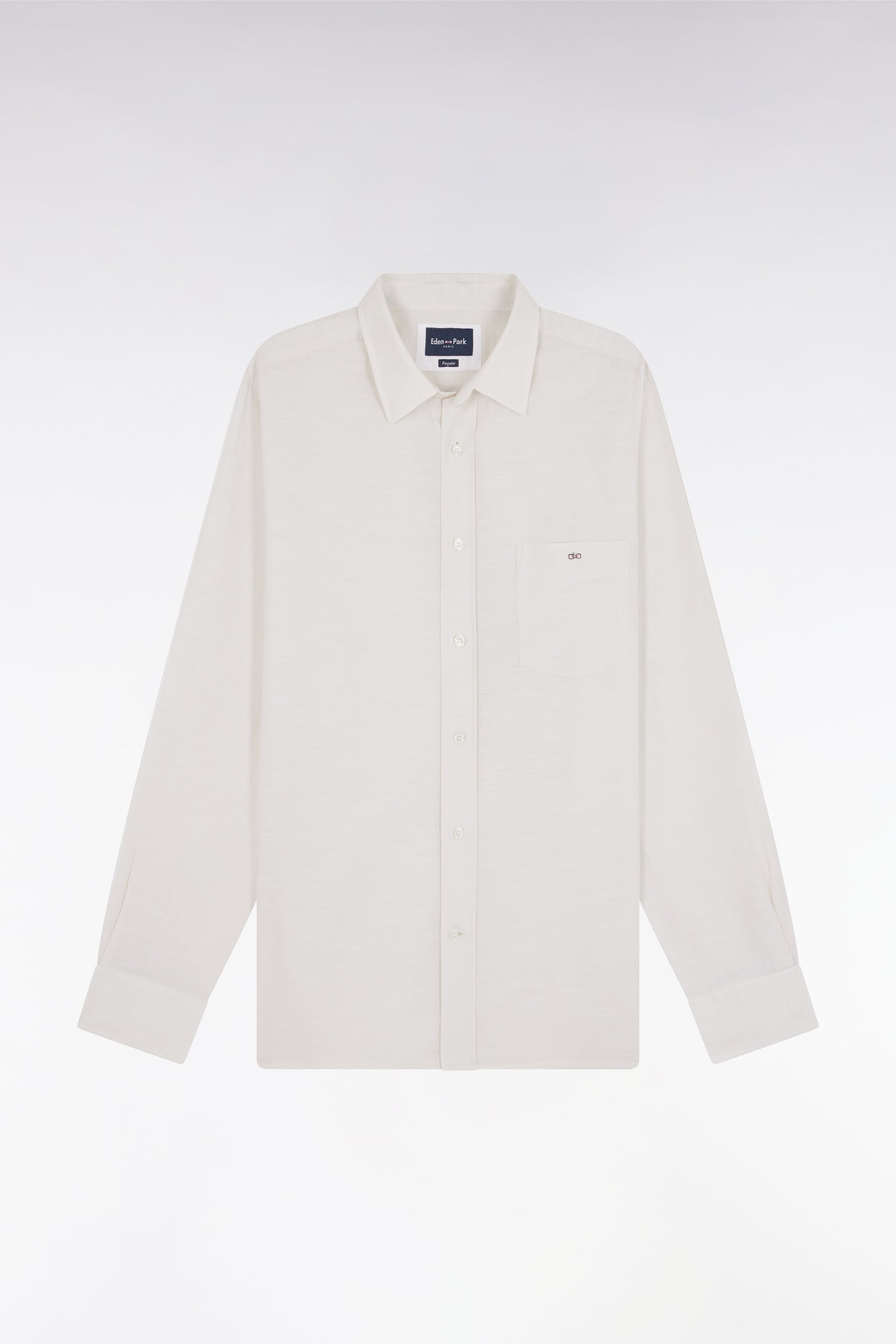 Confectionnée en tissu italien 100% coton, cette chemise coupe droite à pans droits allie élégance et simplicité. Son col à pointes libres, son empiècement dos et sa poche poitrine brodée du nœud papillon emblématique d’Eden Park en font un classique intemporel, décliné en plusieurs coloris au choix.