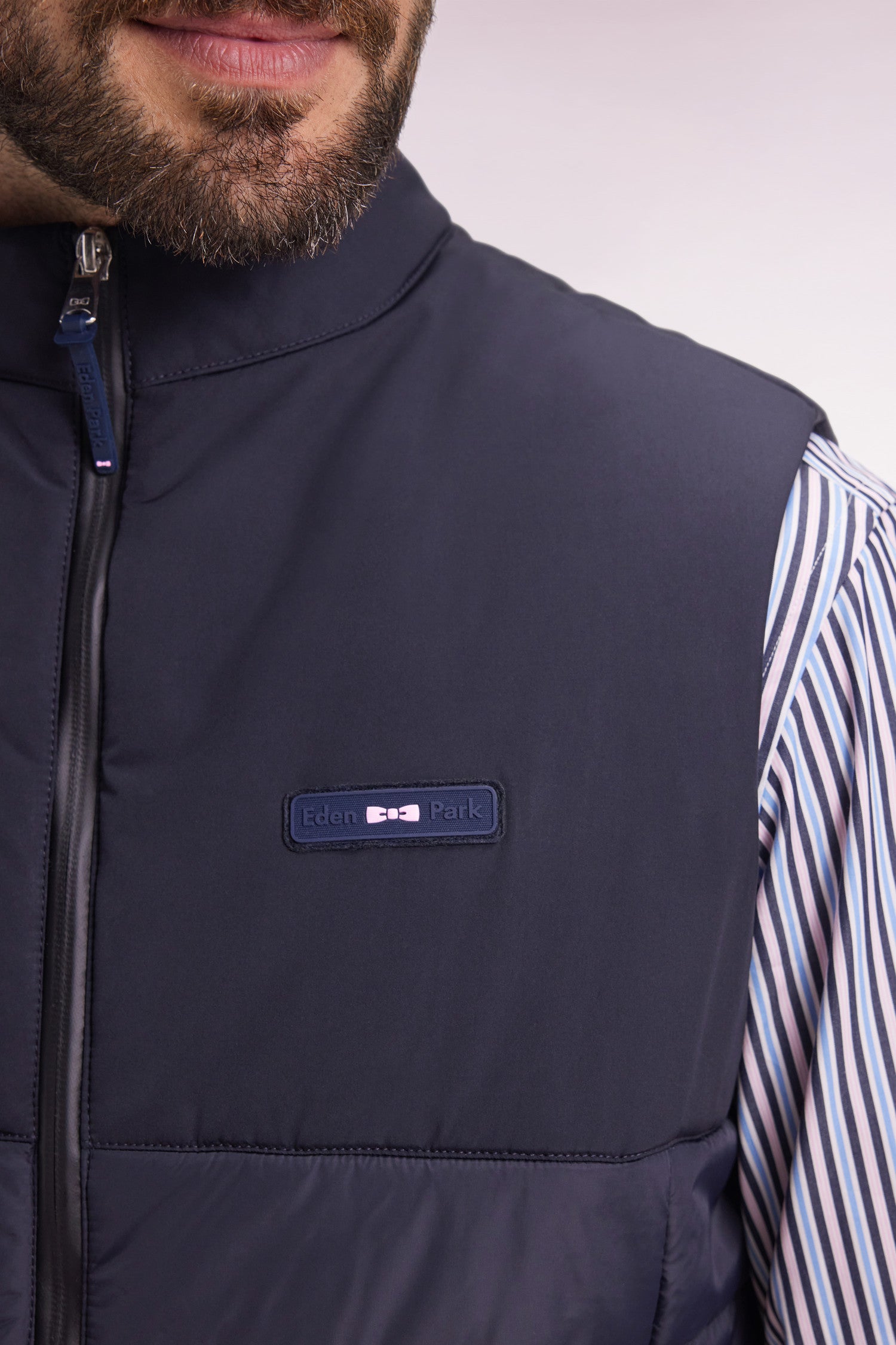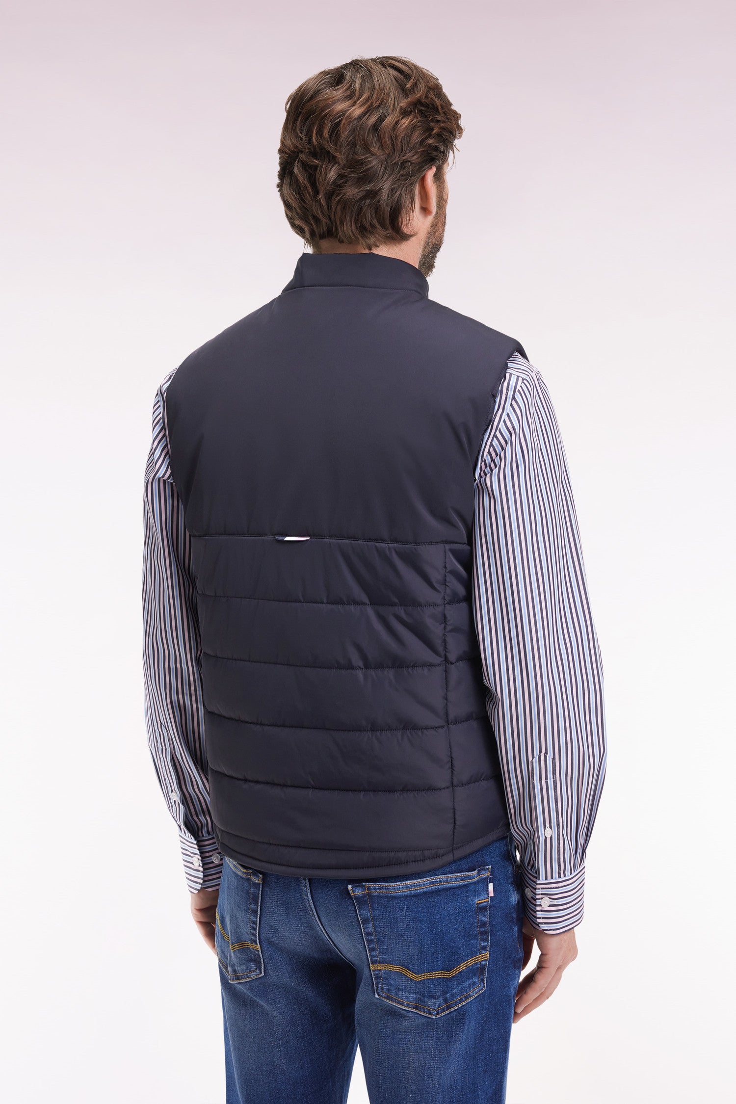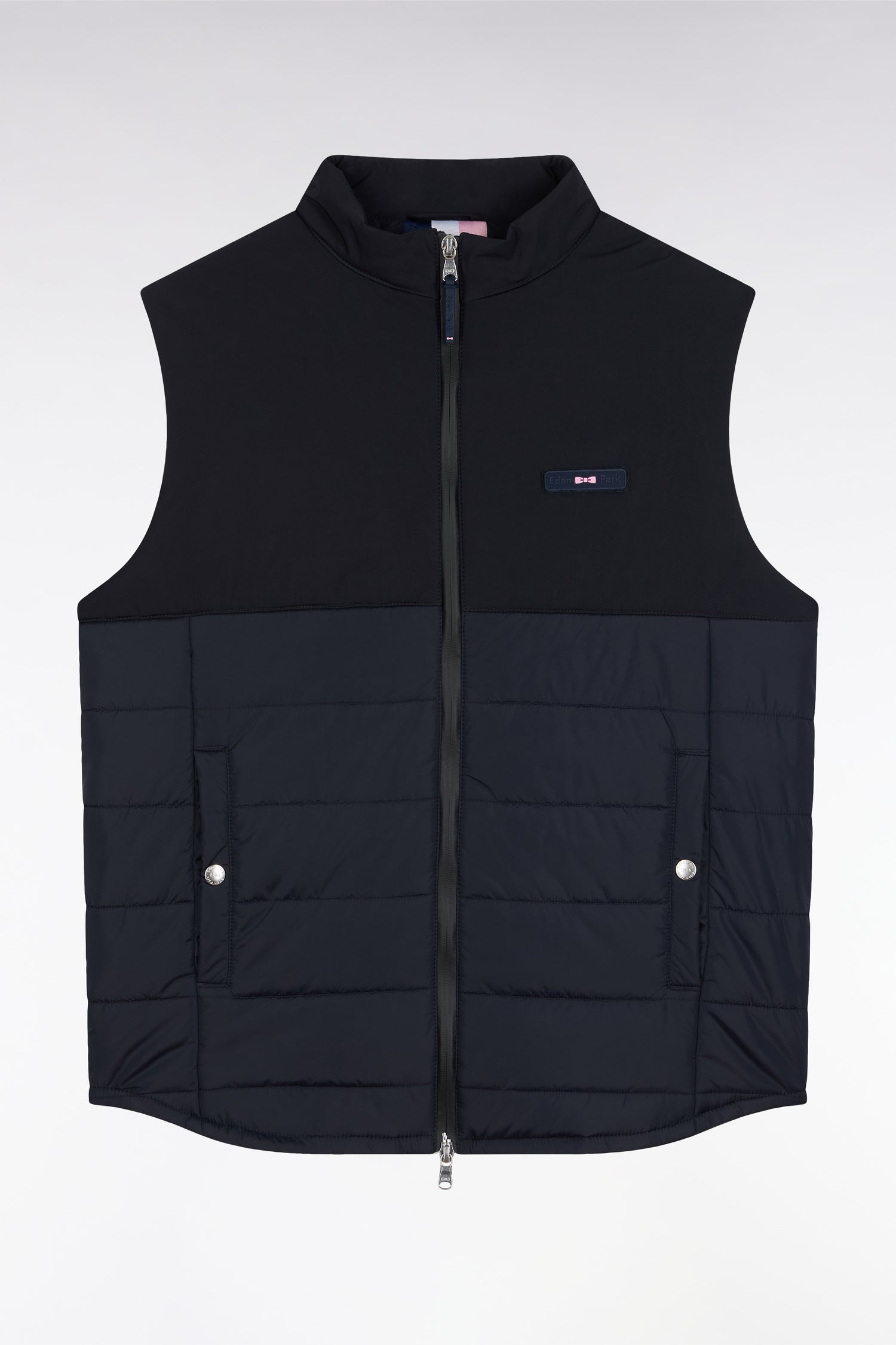 Chaque pièce de la collection affirme une élégance confidentielle, celle que les connaisseurs savent nommer. Cette doudoune sans manches joue l’équilibre parfait entre technicité et élégance. Sa construction bimatière, lisse et matte sur le haut, en nylon matelassé sur le bas, affirme une silhouette moderne et structurée. Le zip Aquagard à double curseur renforce la protection contre les éléments, tandis que les finitions soignées, comme le badge silicone sur la poitrine et les poches pressionnées, signent un essentiel sport chic, à porter seul ou sous un manteau au cœur de l’hiver