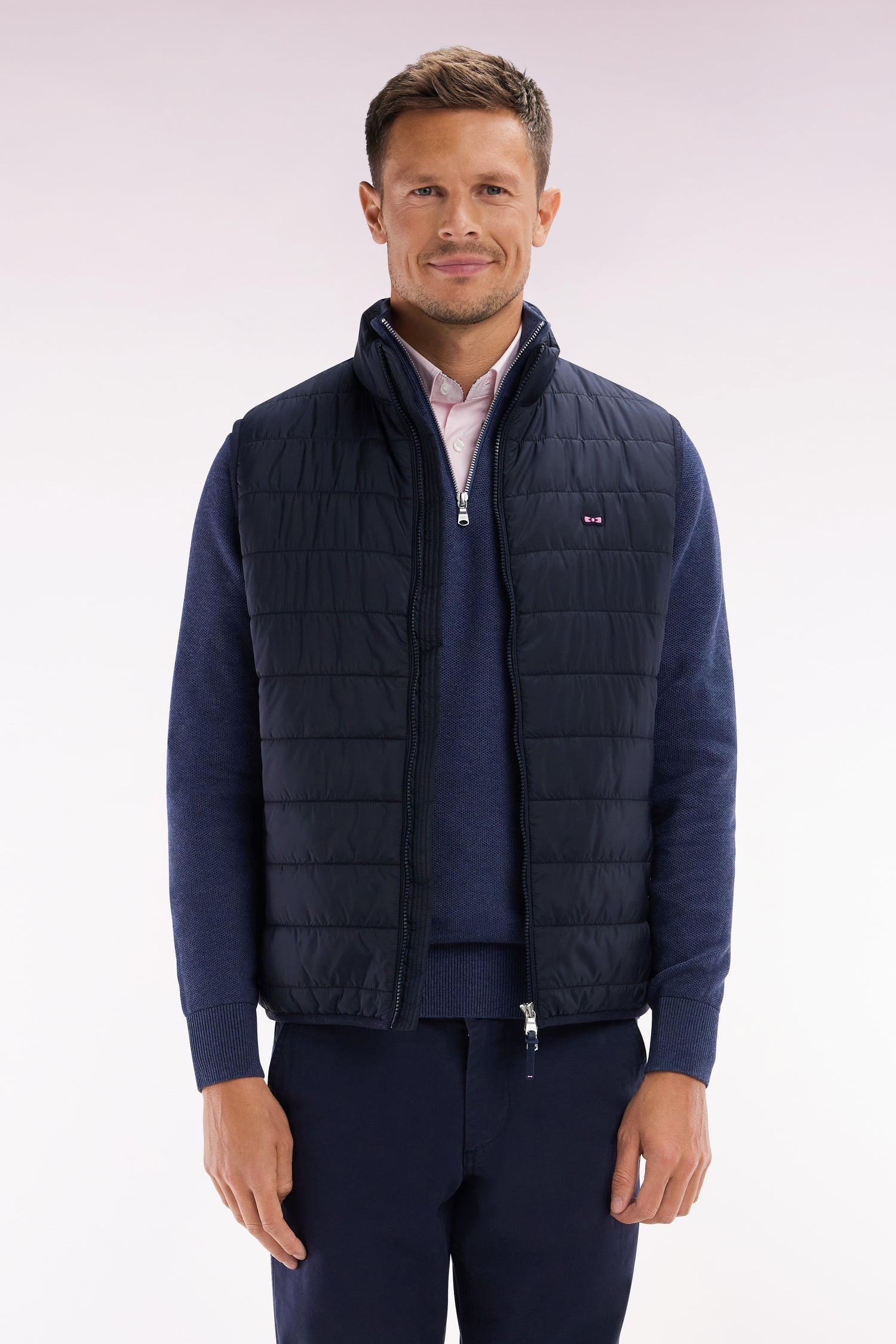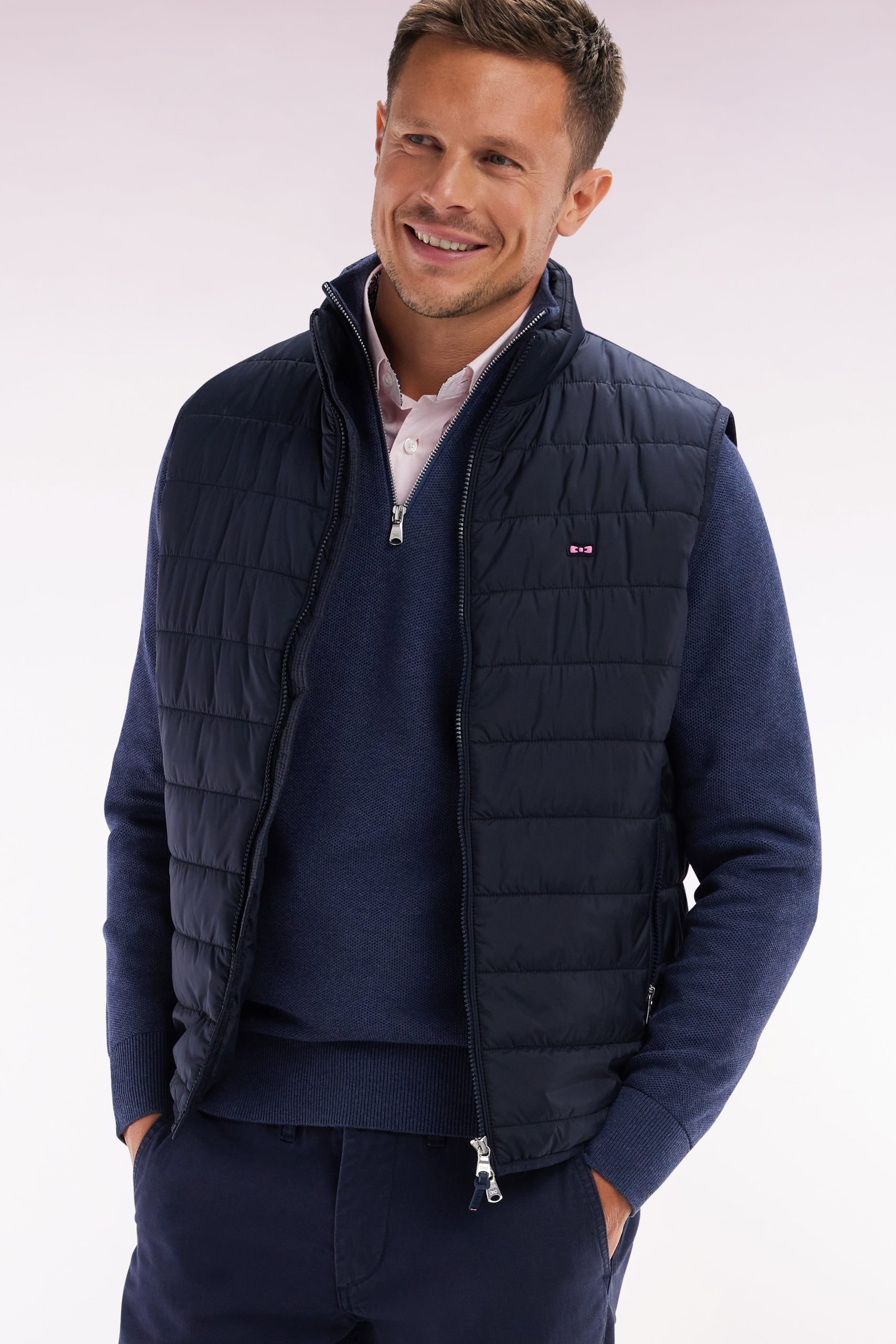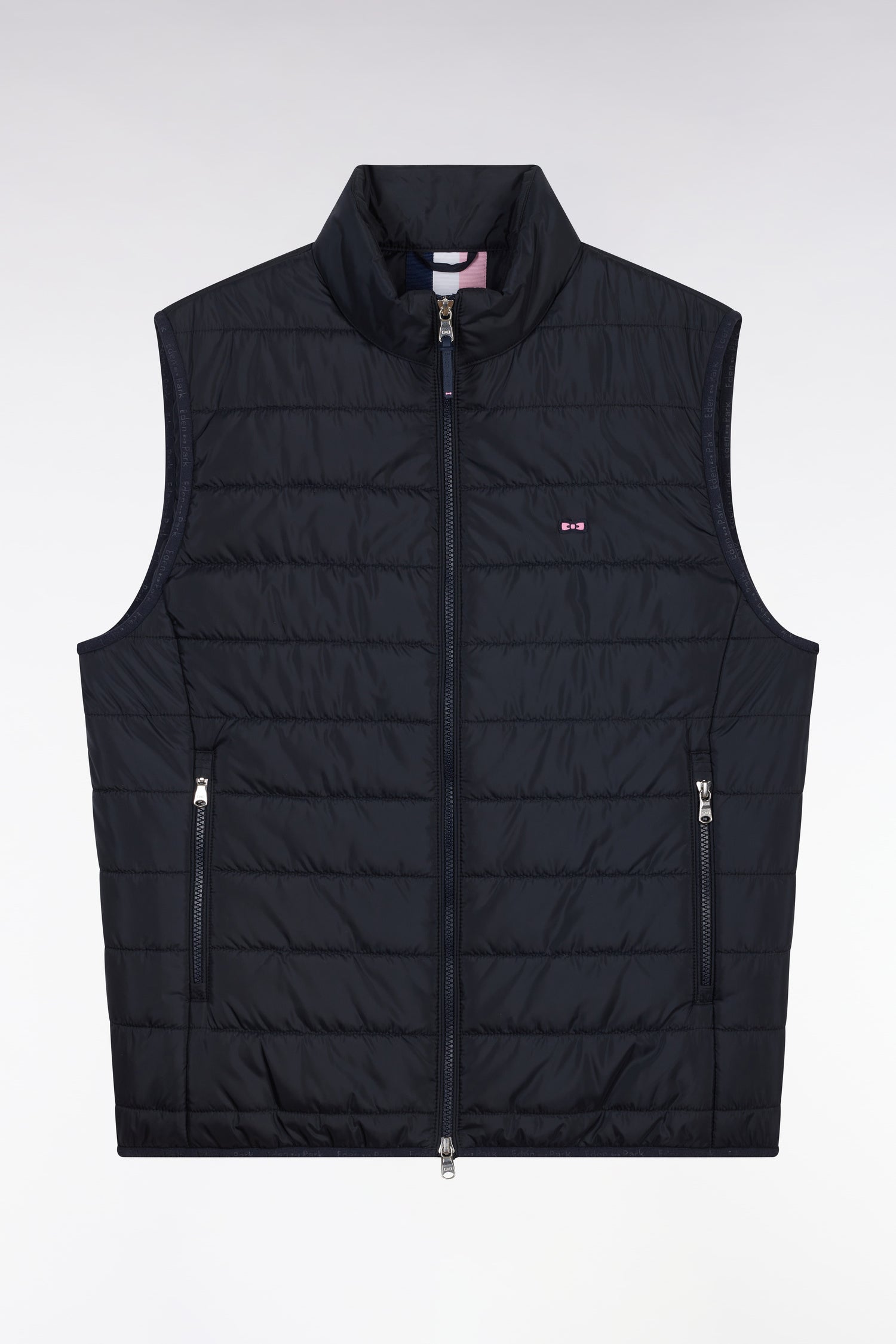 Cette doudoune sans manches, avec extérieur matelassé et intérieur doublé en nylon, allie confort et praticité. Son col montant, ses finitions élastiquées siglées et ses poches zippées offrent un style moderne. Dotée de curseurs et tirettes personnalisés, elle se distingue par un ruban ottoman tricolore à l’encolure et un nœud gomme rose sur feutre, signature de notre Maison française. Indispensable de l’intersaison, cette doudoune sans manches homme est un pilier du vestiaire Eden Park décliné en gris, marine ou beige sable.