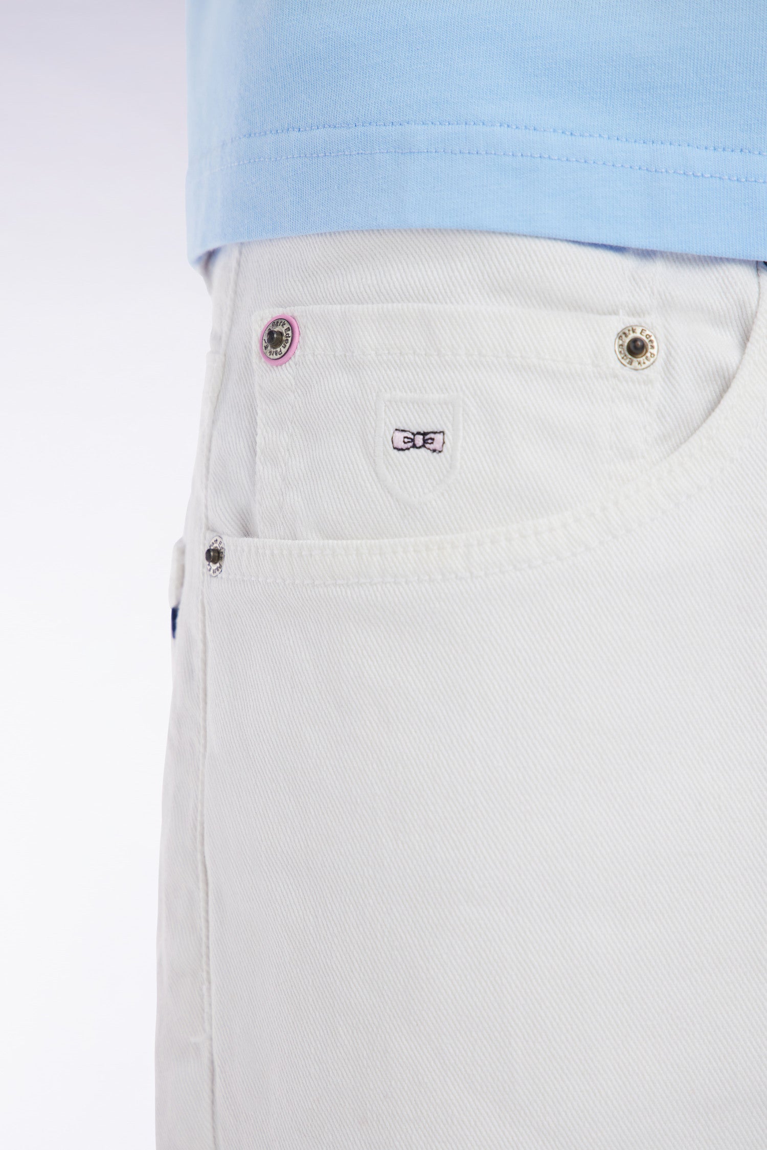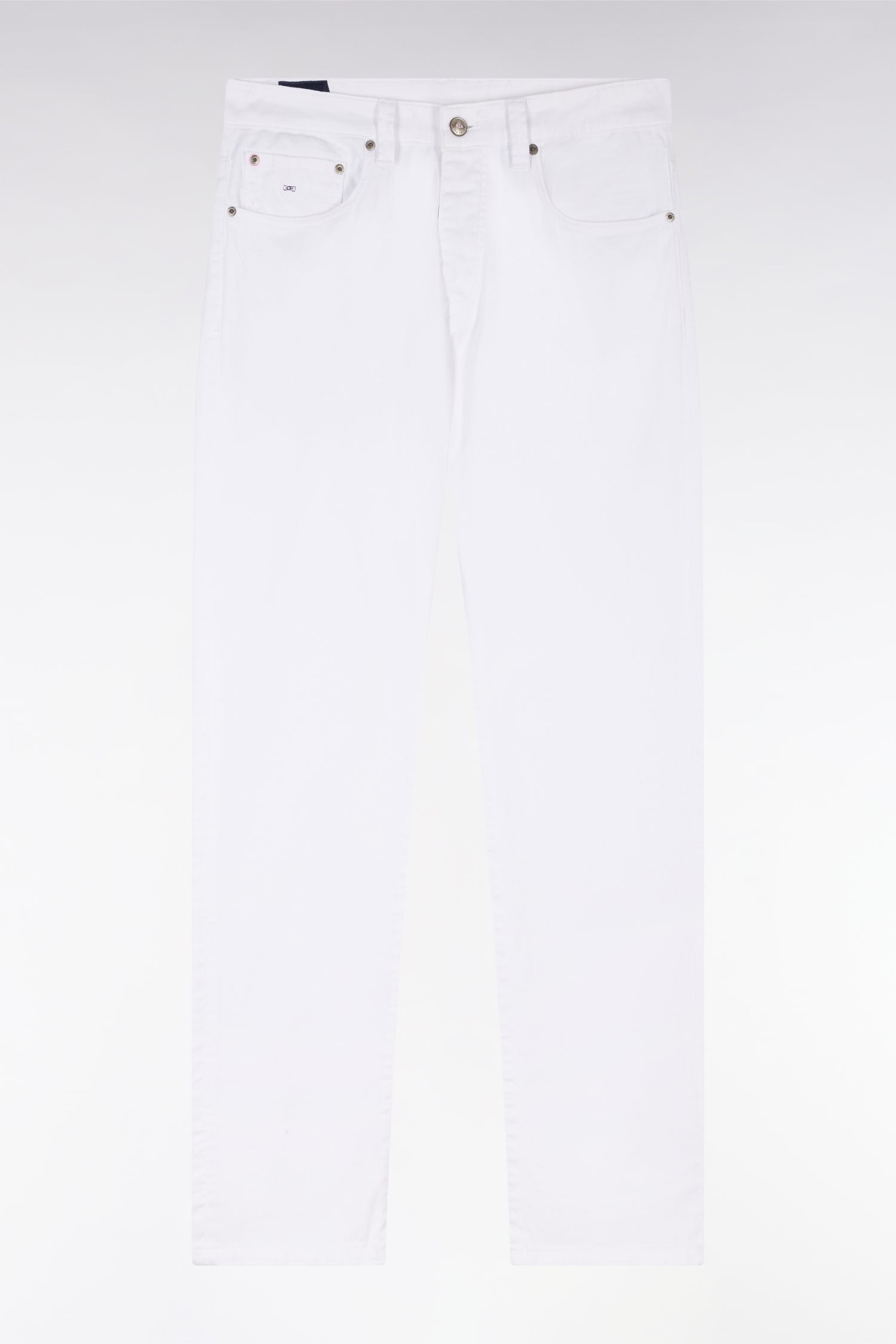 Ce jean 5 poches en denim stretch blanc à coupe droite est un véritable essentiel du vestiaire printanier et estival. Sa teinte lumineuse et son design épuré en font une pièce polyvalente qui s’adapte aussi bien aux journées décontractées qu’aux occasions plus sophistiquées. Portez-le avec un T-shirt pour une allure casual ou optez pour une chemise légère pour un style élégant et raffiné. Confortable et intemporel, ce jean offre une liberté de mouvement parfaite tout en sublimant la silhouette. Pour un style estival affirmé, associez-le à l’une de nos chemises imprimées au jeu de contrastes subtil et tendance.