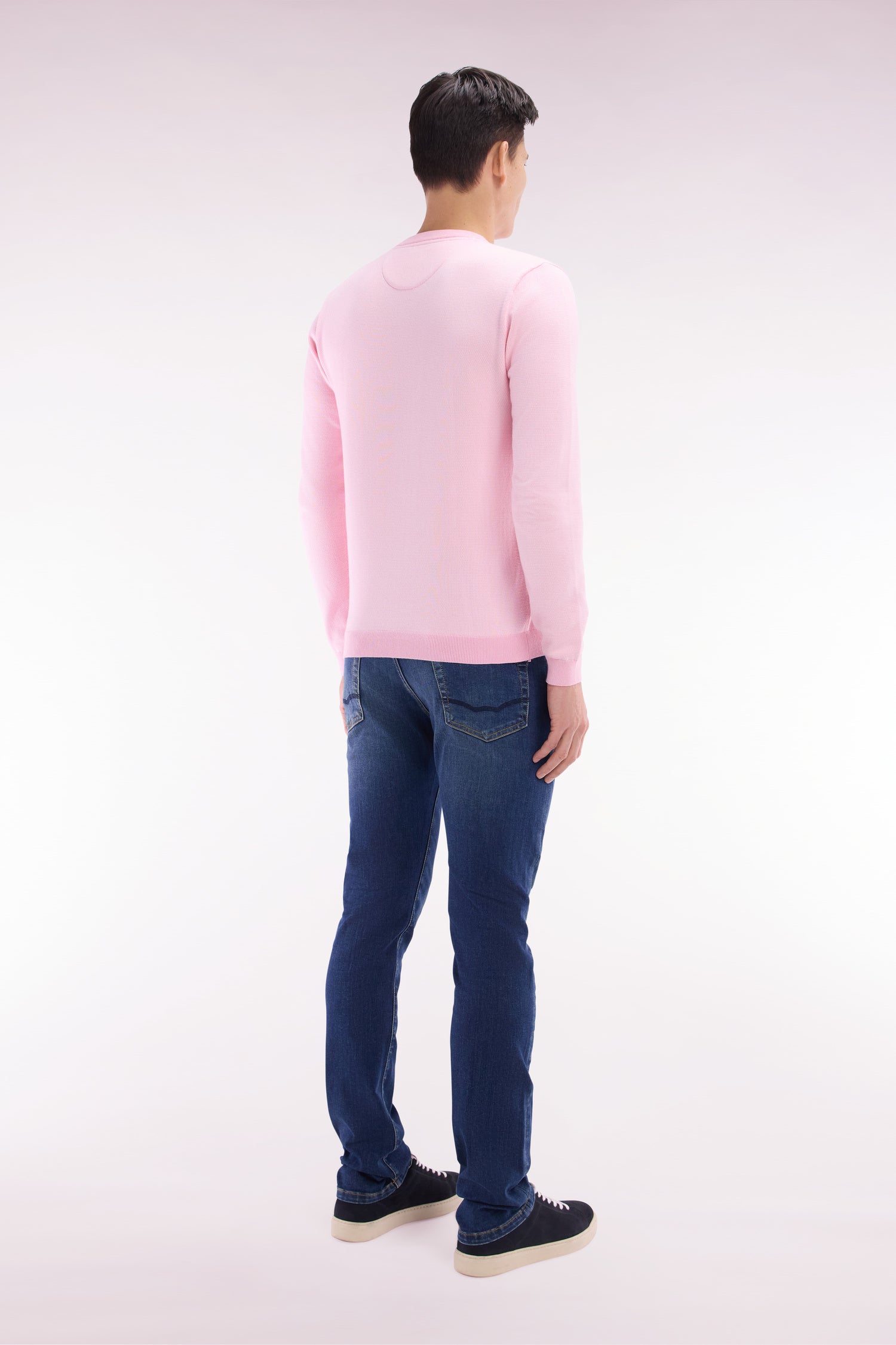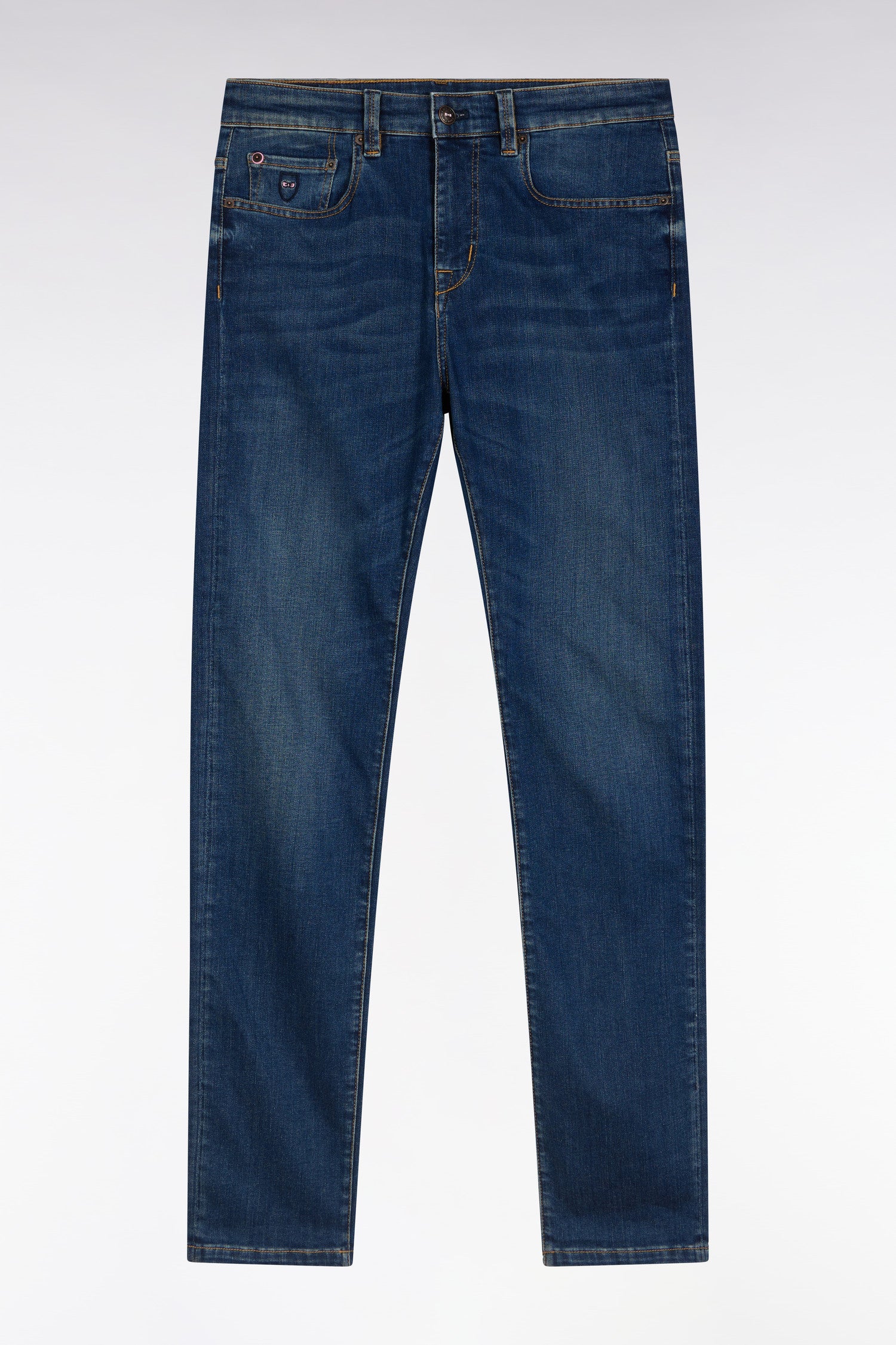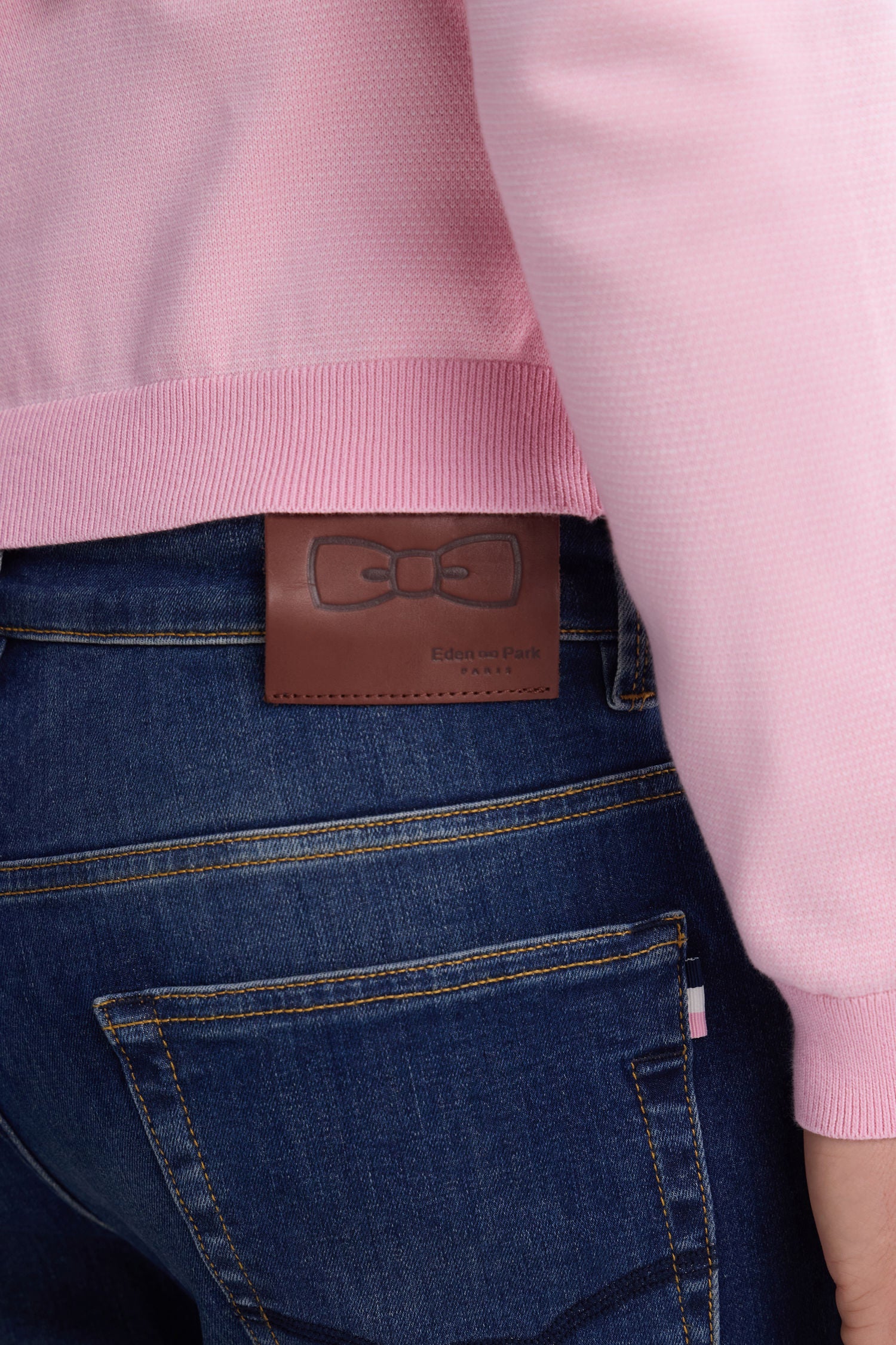 Pensé pour conjuguer style et confort, ce jean coupe slim en denim stretch, enrichi d’une touche de lycra, offre un porté impeccable et une silhouette moderne. Ses cinq poches, sa braguette zippée et ses détails emblématiques comme le nœud papillon brodé sur la poche ticket et le jacron en cuir apportent une touche élégante et reconnaissable. Ce jean versatile se porte aisément avec un t-shirt ou une chemise, en s’adaptant à toutes les occasions, et illustre parfaitement l’excellence des collections de notre Maison.