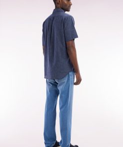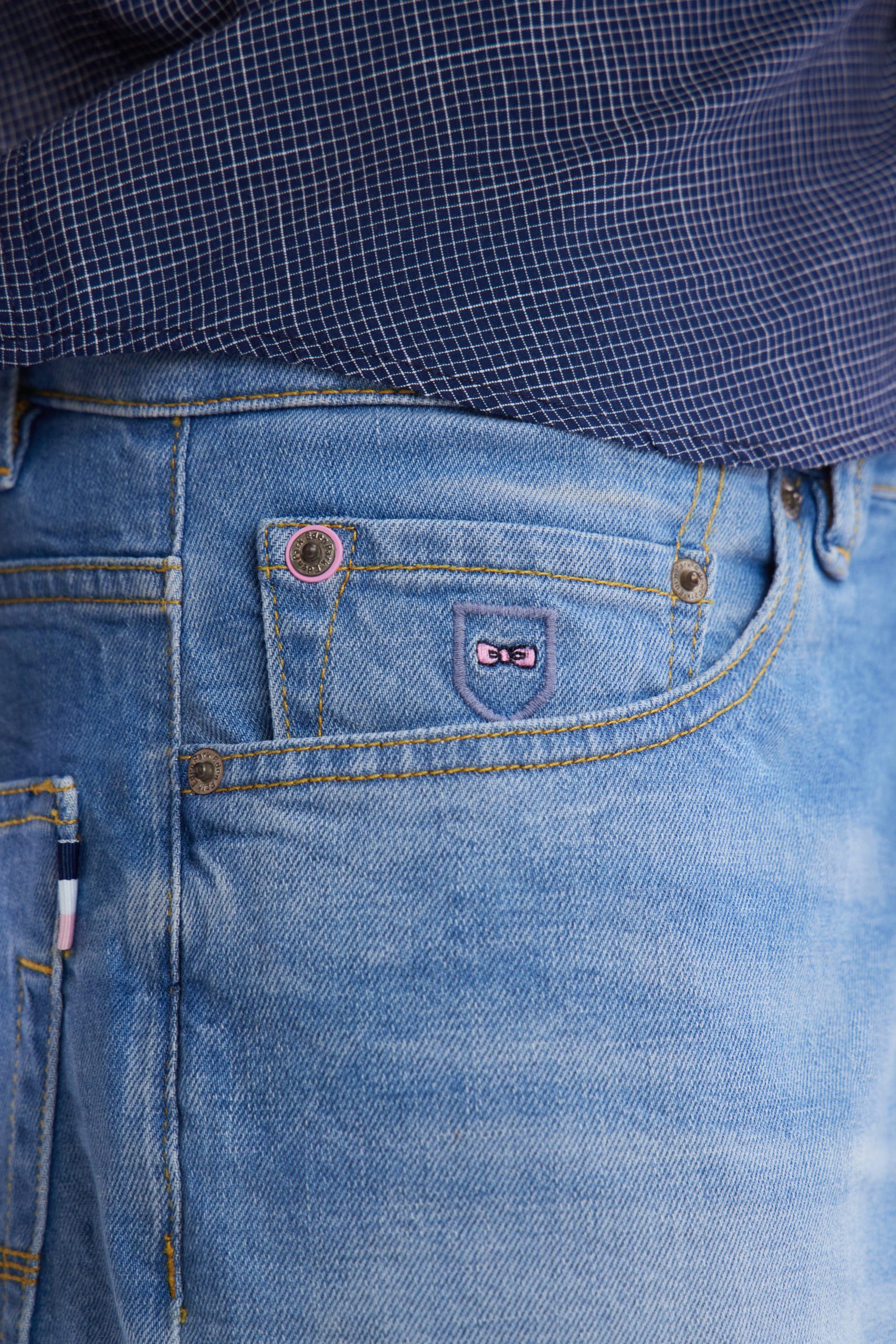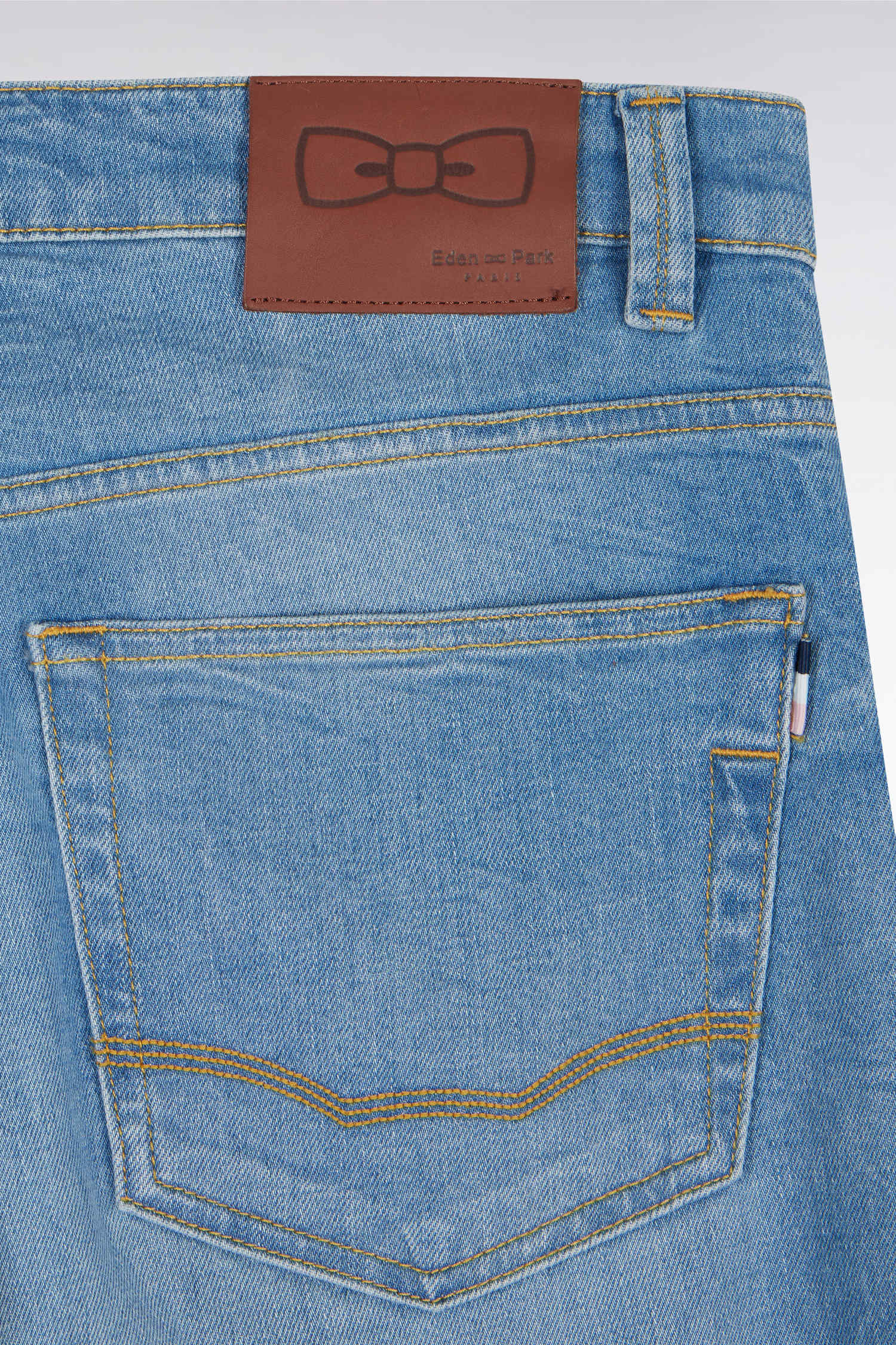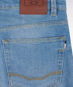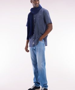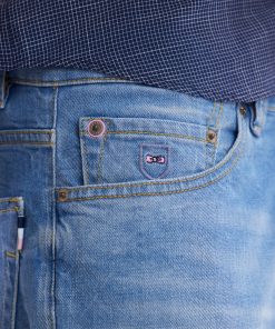 Ce jean homme 5 poches en denim stretch stone bleach medium, avec son effet de moustache subtil, offre une allure moderne et décontractée. Sa braguette à boutons personnalisés, son nœud brodé sur la poche ticket et le ruban ottoman tricolore à l’arrière reflètent l’attention aux détails typique de notre Maison française. Le jacron en cuir embossé ajoute une touche d’élégance. Ce jean droit facile à porter allie confort et style pour une silhouette contemporaine.