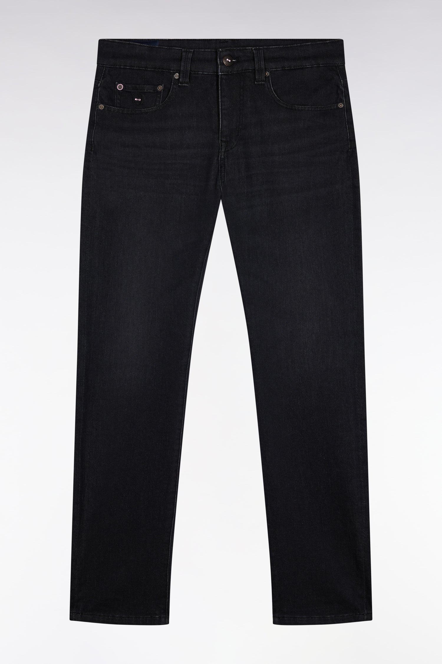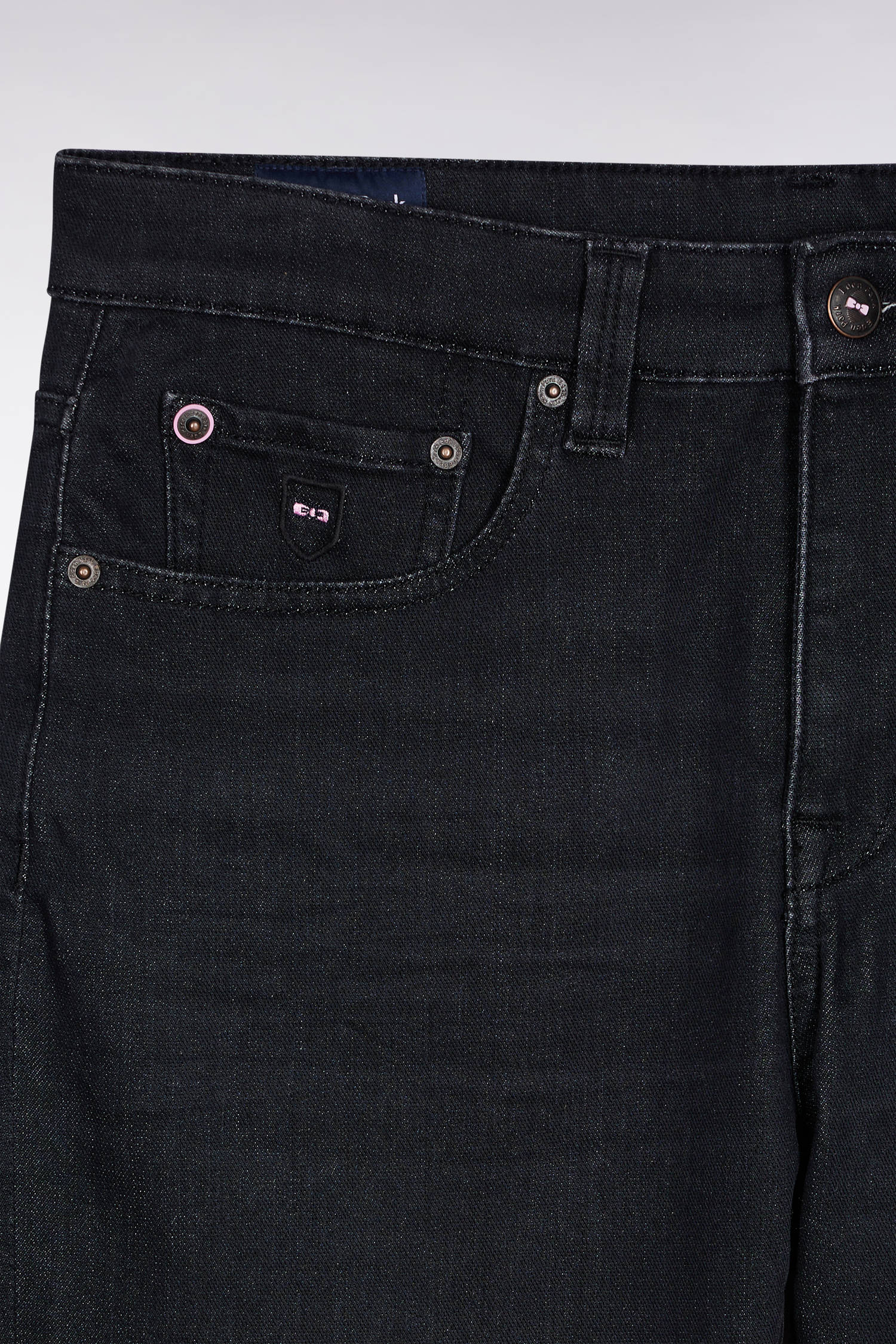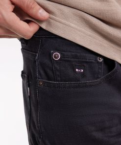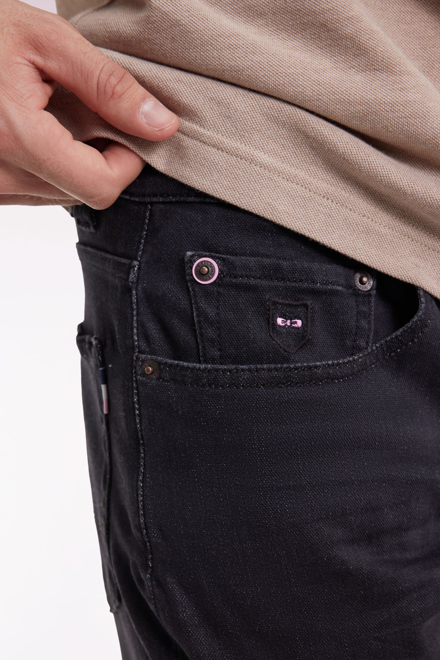 Ce jean 5 poches en denim stretch d’un noir subtilement délavé allie confort, souplesse et caractère. Sa coupe slim souligne une allure soignée. Rehaussé de finitions emblématiques figurant notre emblème nœud papillon, ce jean slim noir vous habille du matin jusqu’au soir en toutes saisons