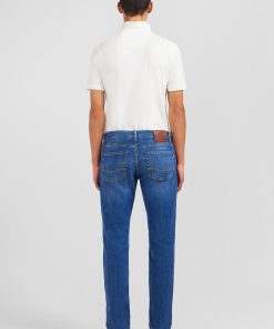 Ce jean en coton stretch possède 2 poches cavalières avant, une poche ticket avant, 2 poches plaquées arrière, une fermeture boutonnée et un jacron siglé Eden Park à l’arrière