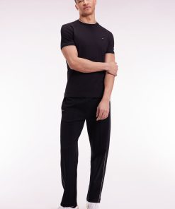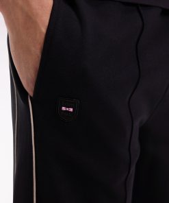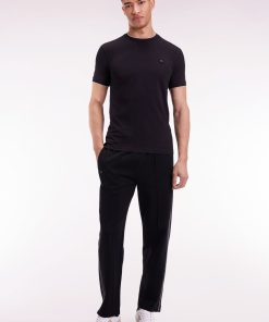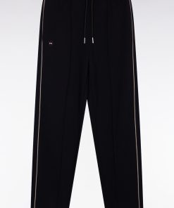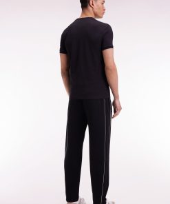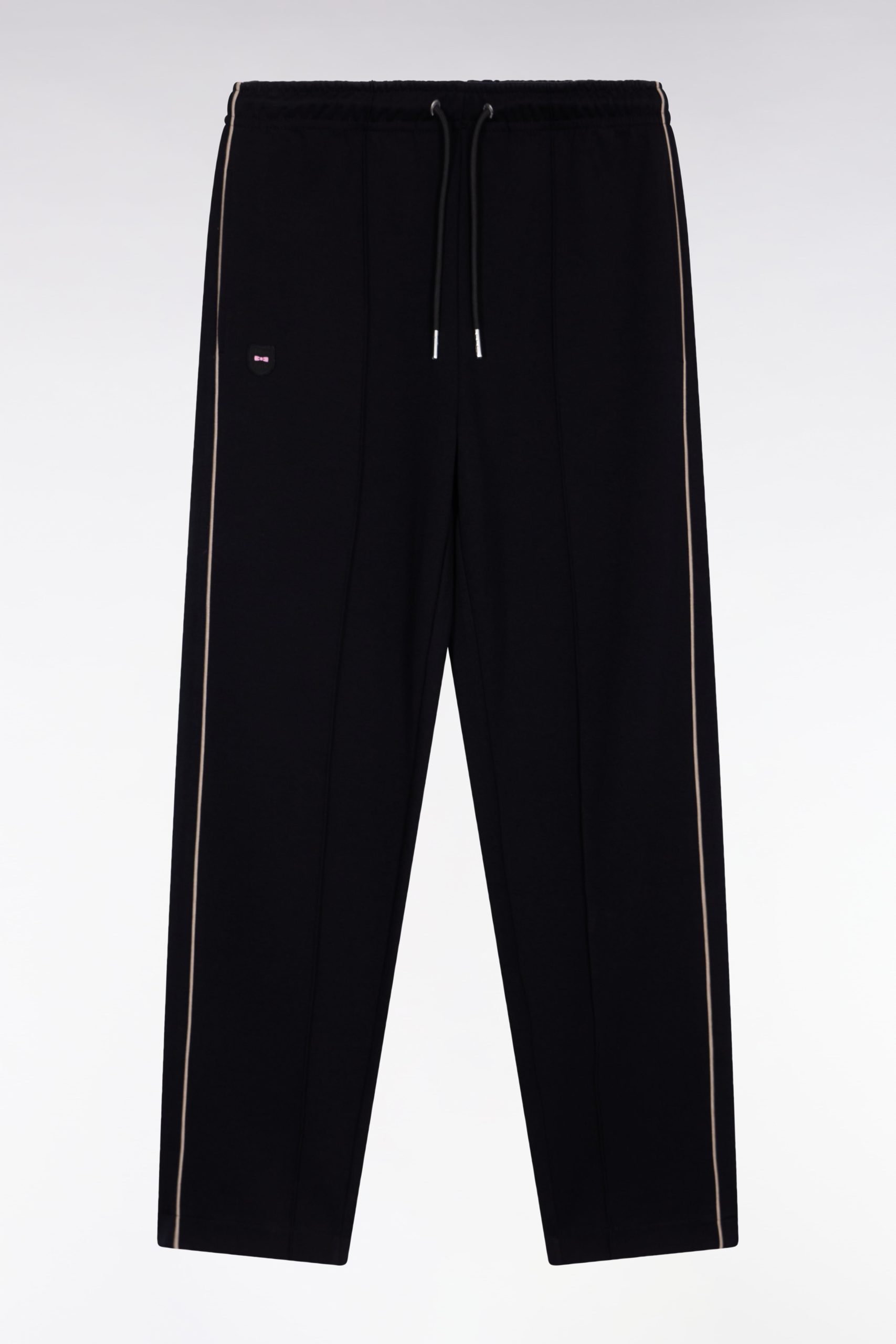 Eden Park Homme Men’s Jogging En Molleton Gratté Noir À Passepoil Et Plis Avant Coupe Droite