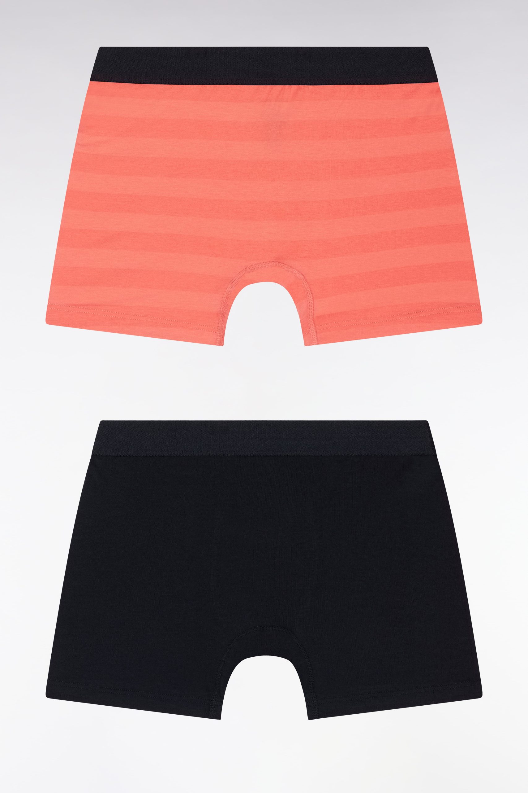 Apportez une touche graphique à vos sous-vêtements avec ce lot de deux boxers en coton stretch, l’un bleu marine minimaliste et l’autre cerclé de nos rayures contrastées dans le coloris de votre choix. Sa ceinture élastique siglée et son design moderne en font un choix confortable pour toutes les occasions.