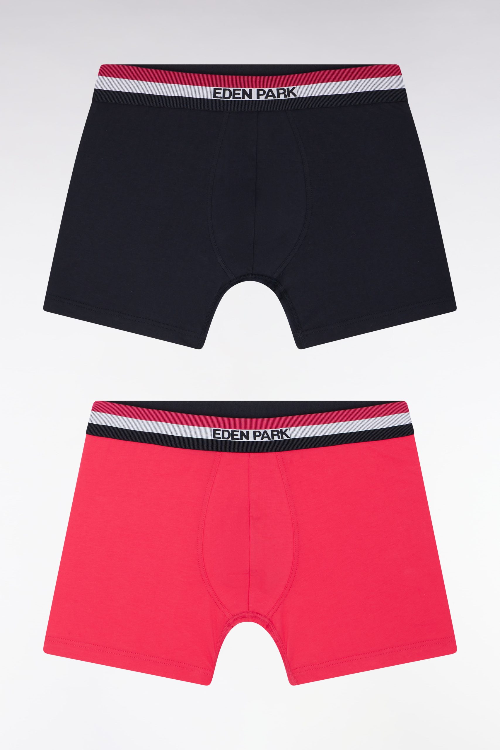 Ce lot de deux boxers, l’un marine et l’autre rose, bleu ou fuchsia combine confort et polyvalence. Conçus en coton stretch, ils offrent une coupe ajustée et une ceinture siglée à finitions rayée pour un maintien impeccable au quotidien et un style à toute épreuve.