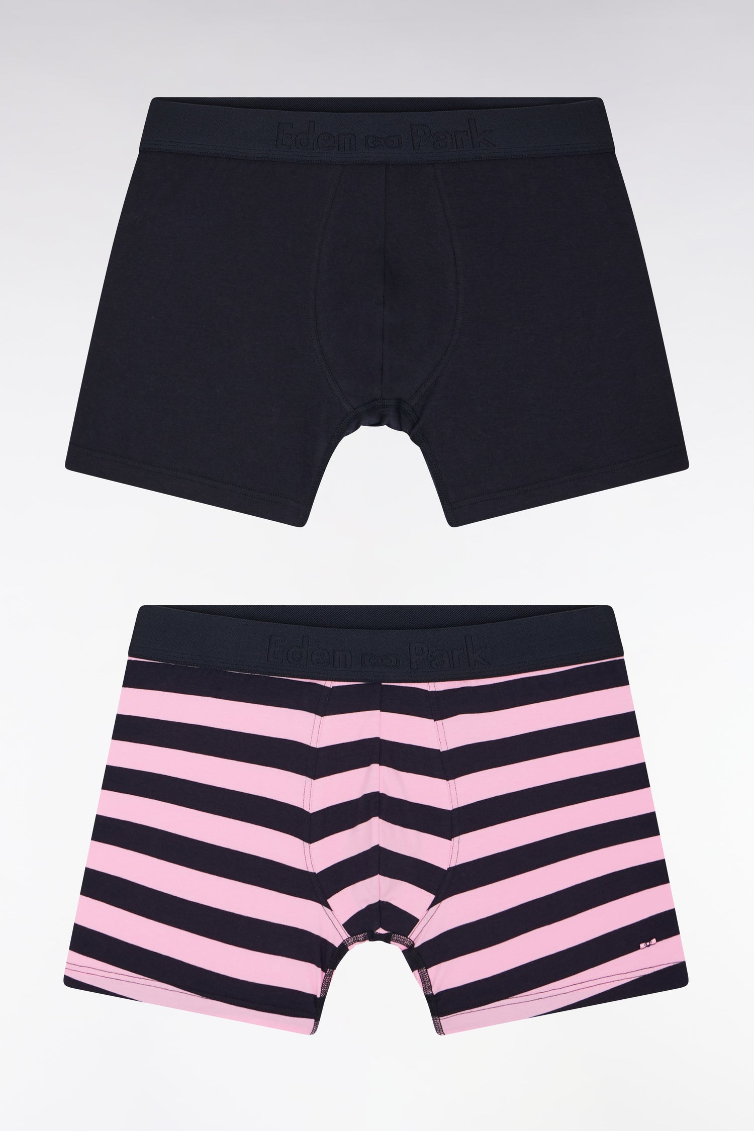 Eden Park Homme Men’s Lot De Deux Boxers Unis Et Cerclés En Jersey De Coton Stretch Marine E