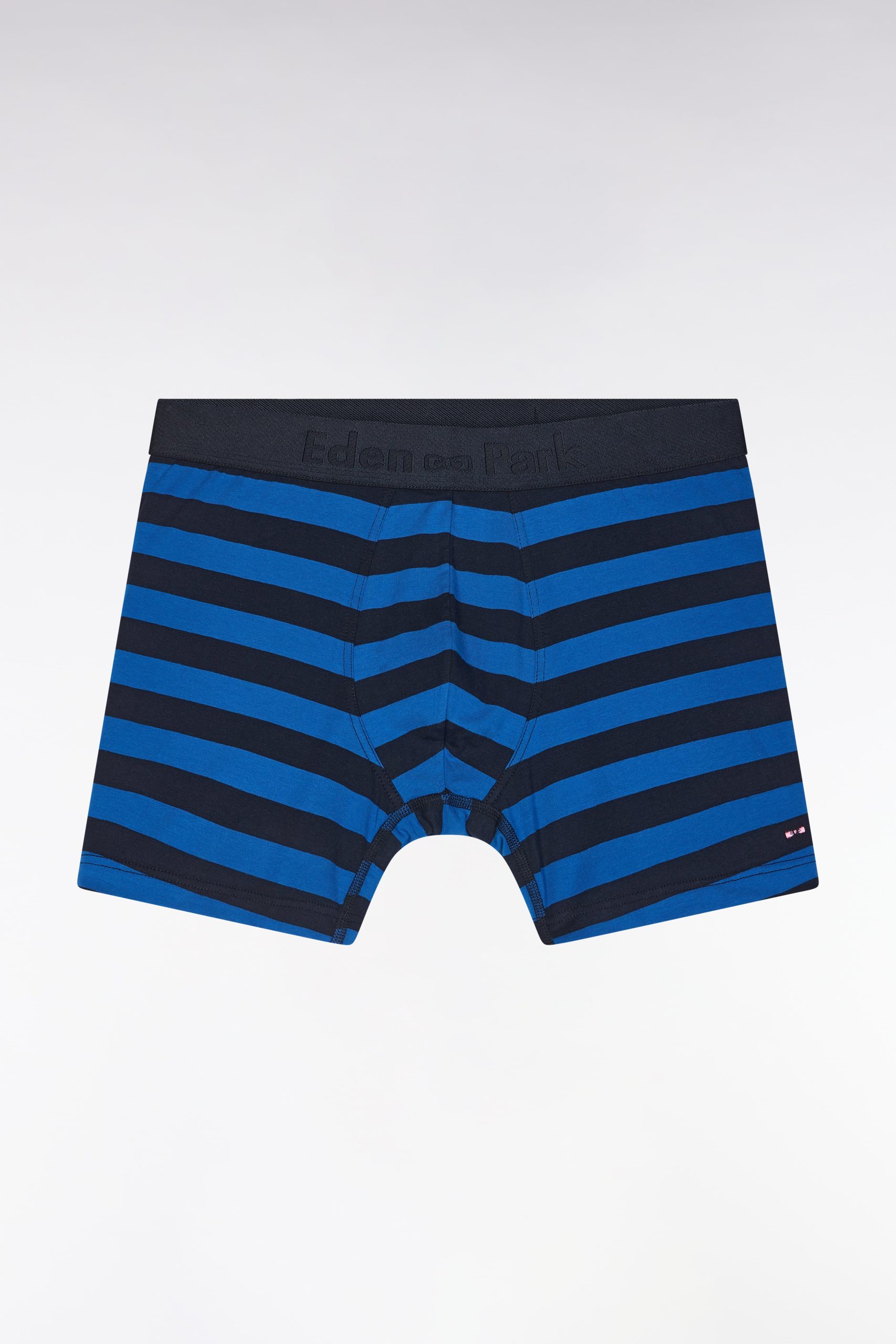 Ce lot de deux boxers allie confort et style avec un modèle uni marine, incontournable du vestiaire masculin, et un second boxer à rayures cerclées, décliné dans des variations de couleurs selon le lot choisi. Confectionnés en coton stretch doux, ces boxers offrent une coupe ajustée et une ceinture élastiquée siglée Eden Park, pour un maintien parfait toute la journée.