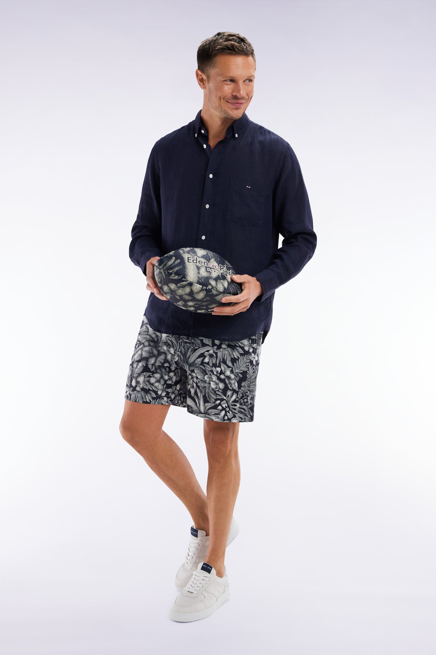 Plongez dans l’exotisme de notre collection plage avec ce maillot de bain marine orné d’un imprimé jungle blanc. À la fois audacieux et tendance, il évoque des paysages tropicaux lointains tout en insufflant une allure tendance à un look de plage. Parfait pour capturer l’esprit de l’été avec élégance.