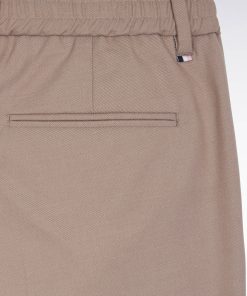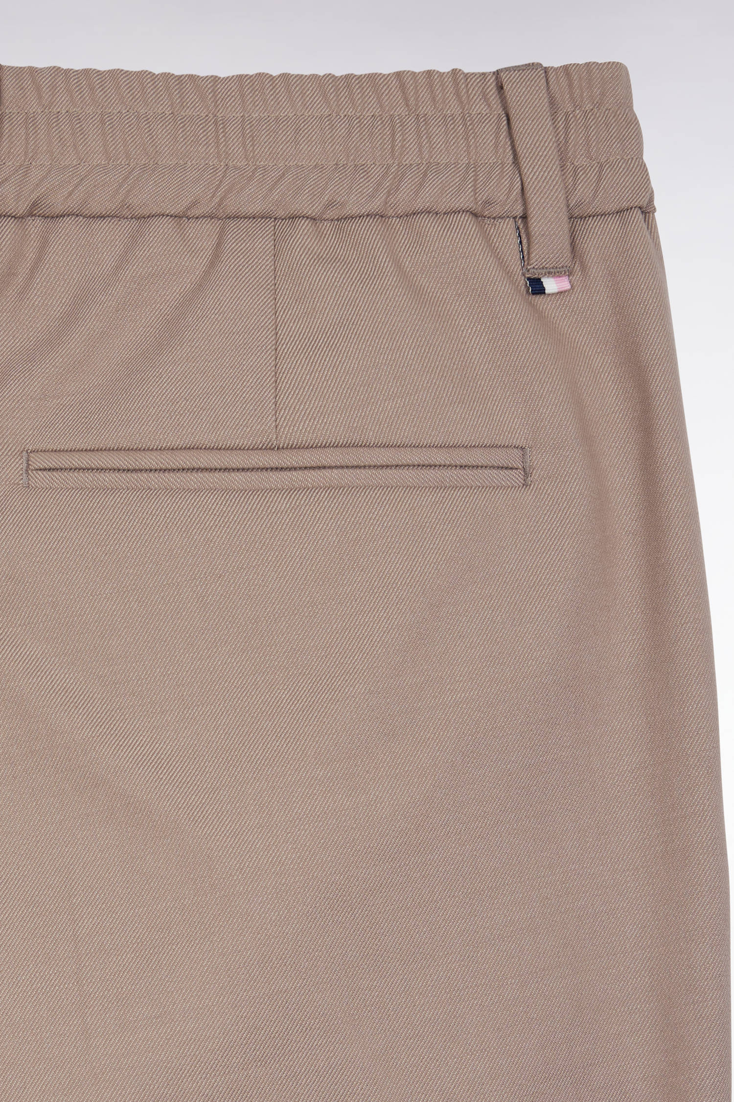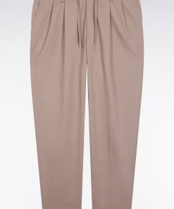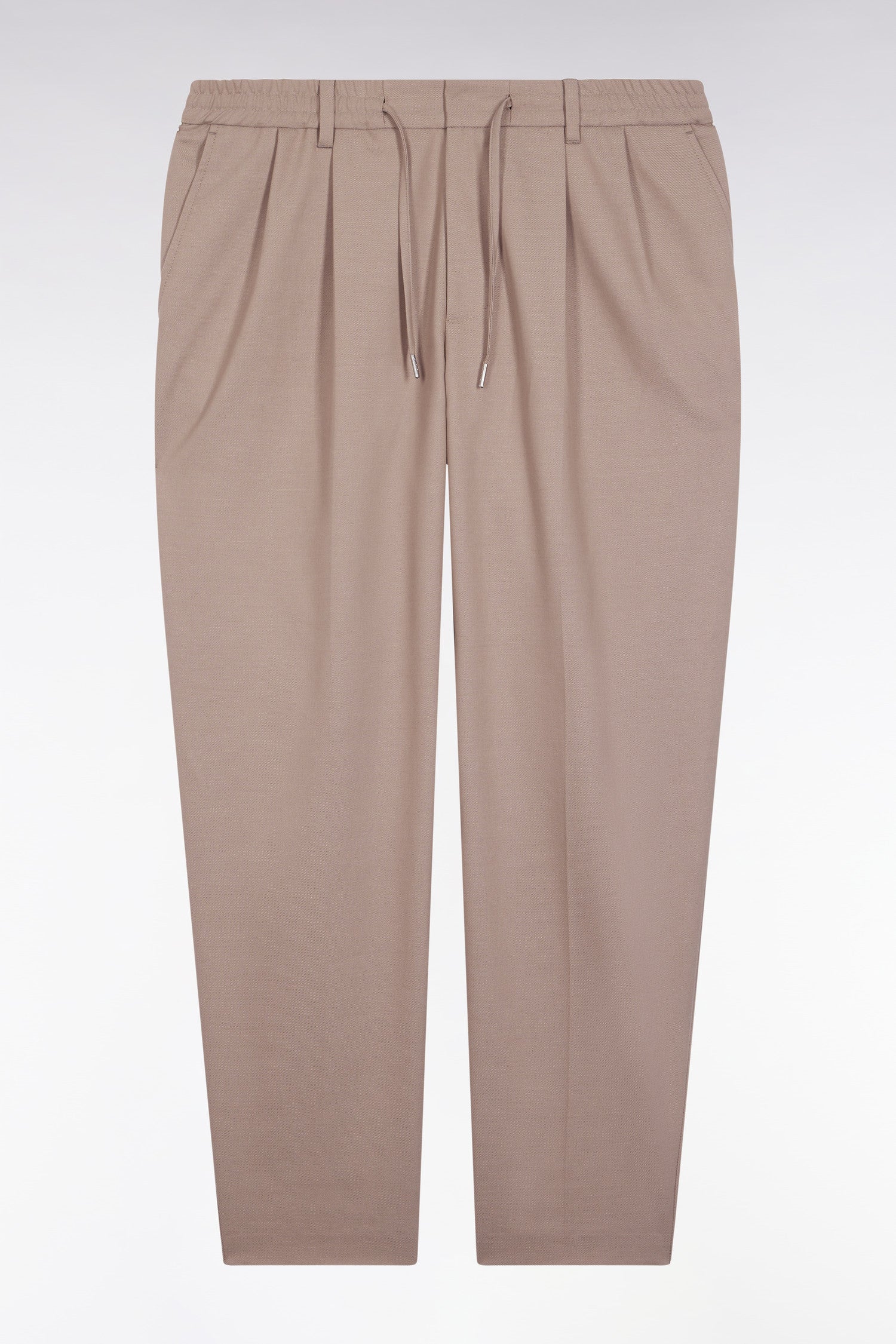 Ce pantalon à pinces revisite l’esprit tailoring dans une version plus décontractée. Sa taille élastiquée à cordon de serrage et ses plis marqués à l’avant assurent confort et fluidité, tandis que sa coupe légèrement fuselée conserve une élégance naturelle