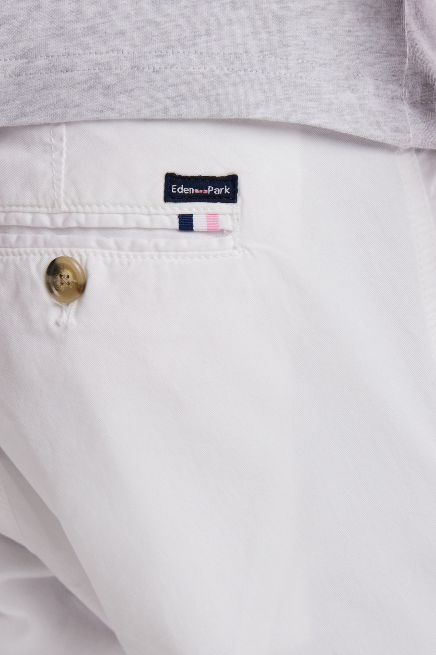 Eden Park Homme Men’s Pantalon Chino Sans Plis En Coton Stretch Blanc Coupe Droite