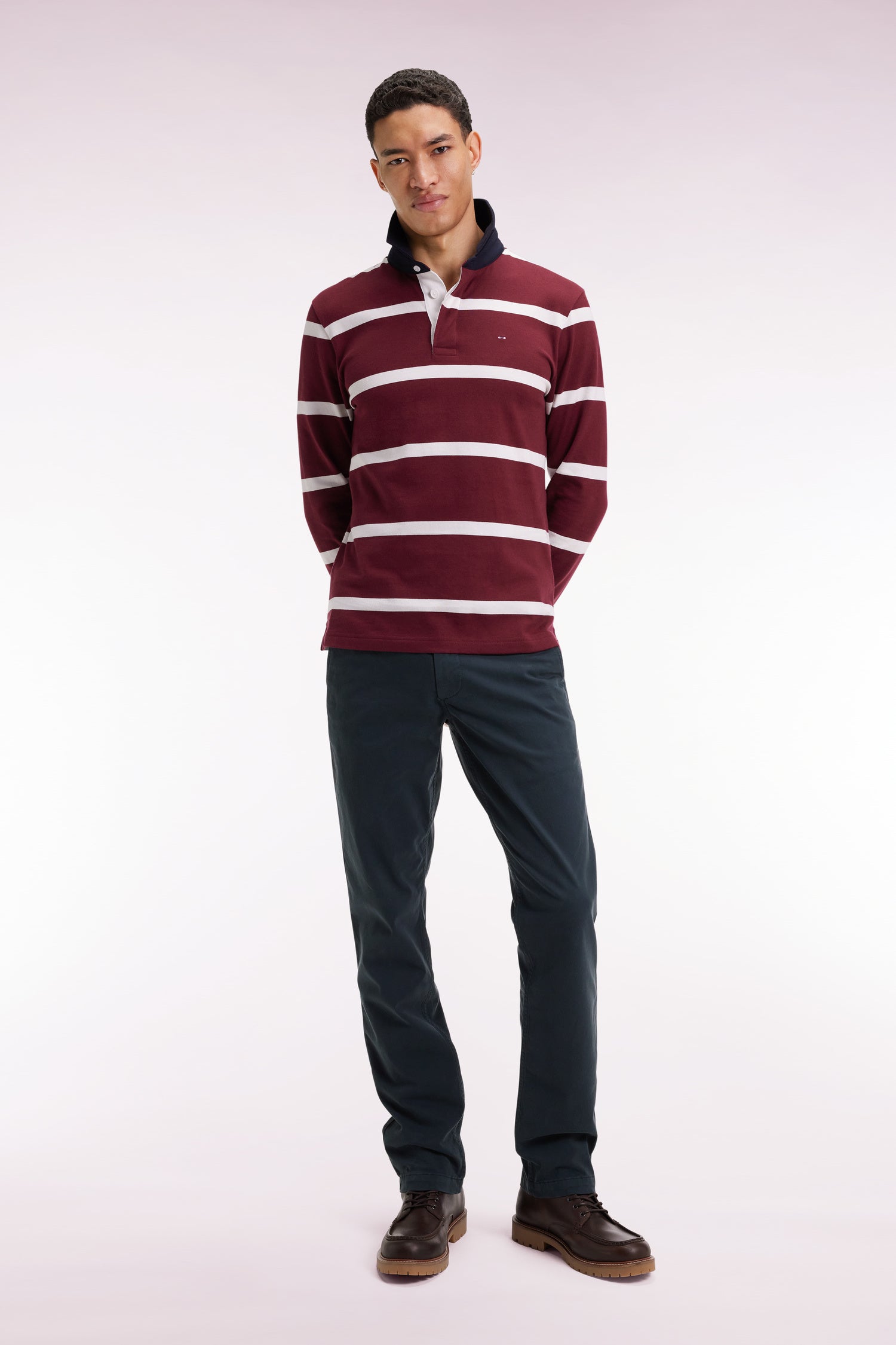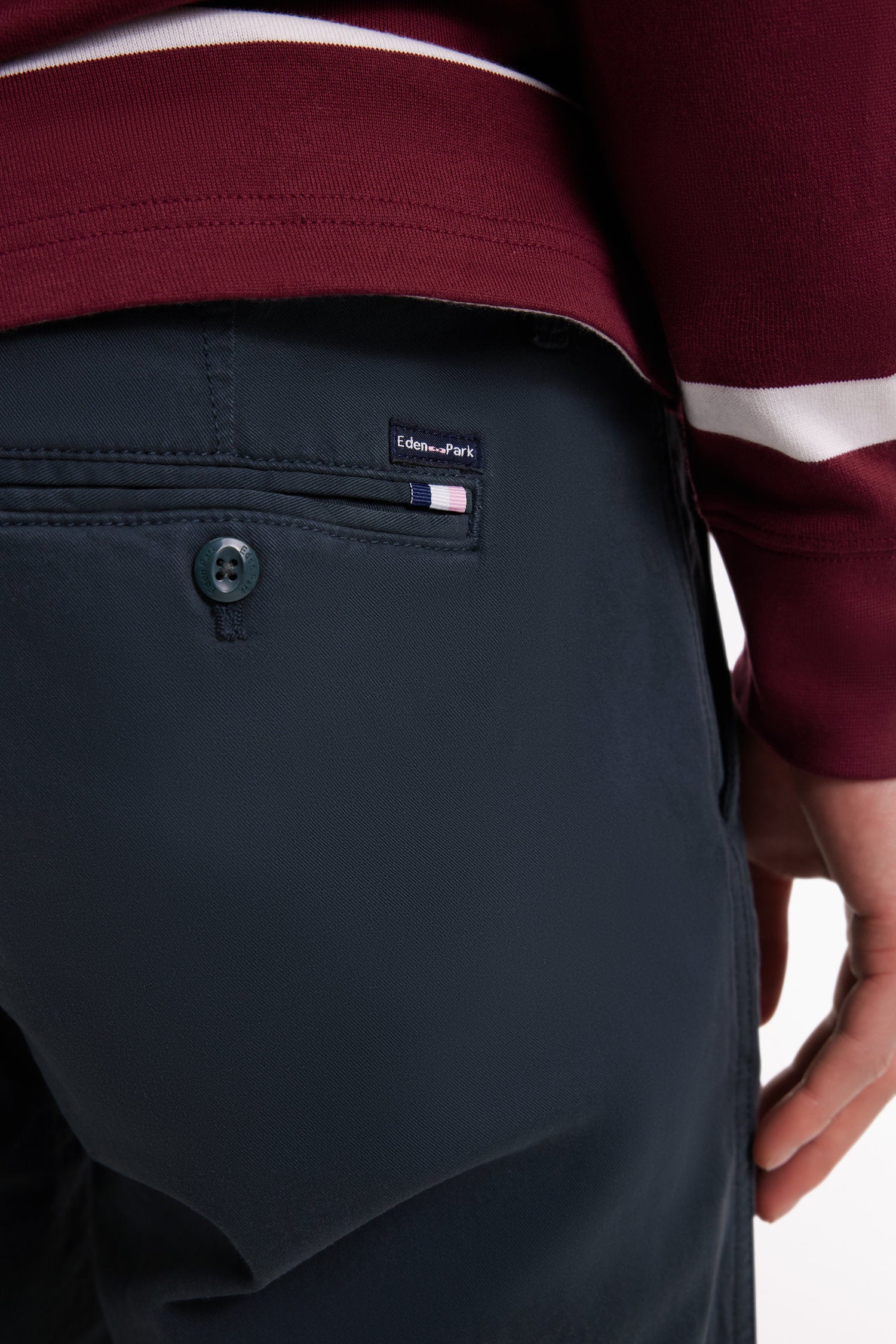 Pensé pour conjuguer style et aisance, ce chino en coton stretch offre une silhouette structurée sans jamais compromettre le confort. Sa coupe droite sans pli, épurée et polyvalente, en fait un allié du quotidien aussi