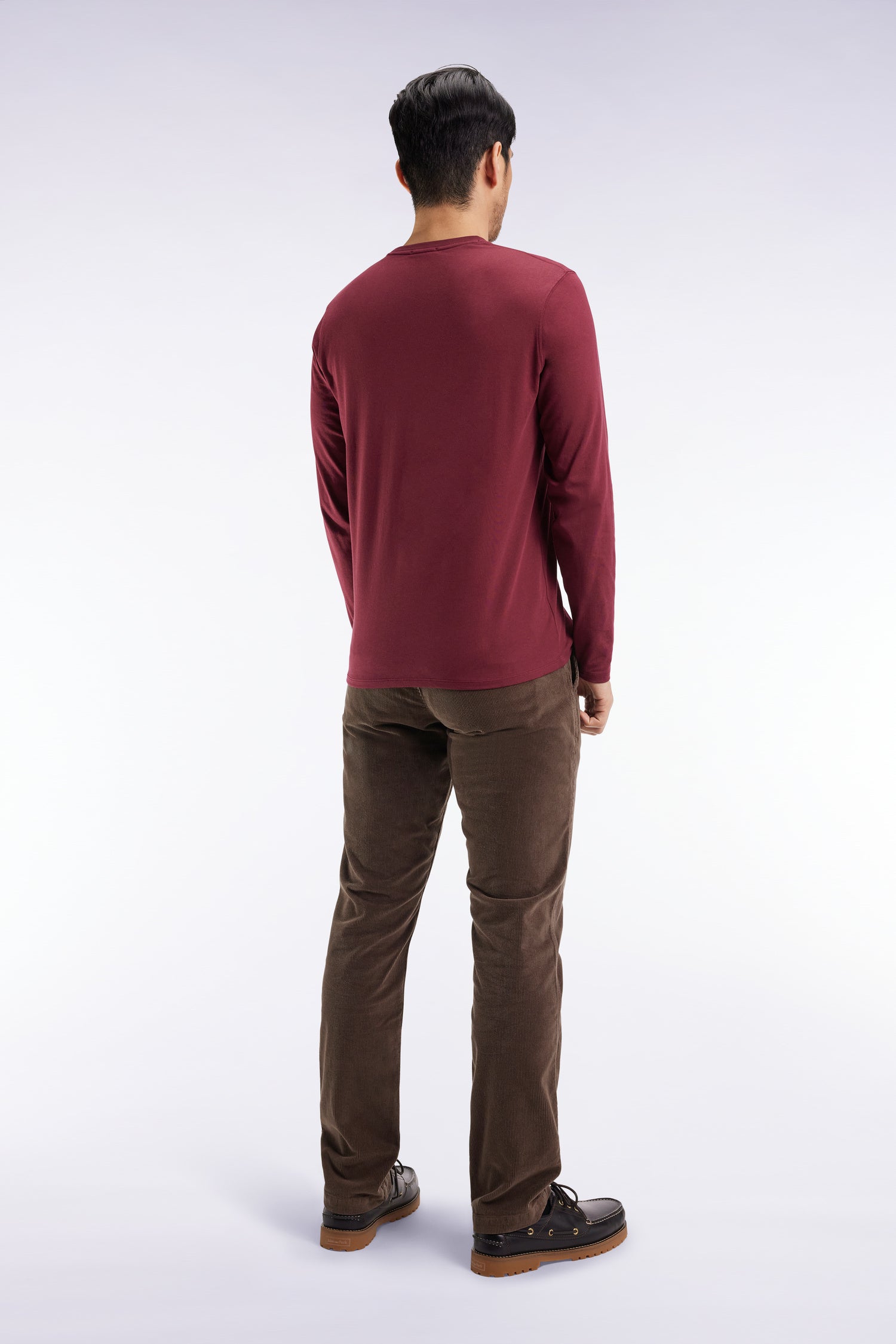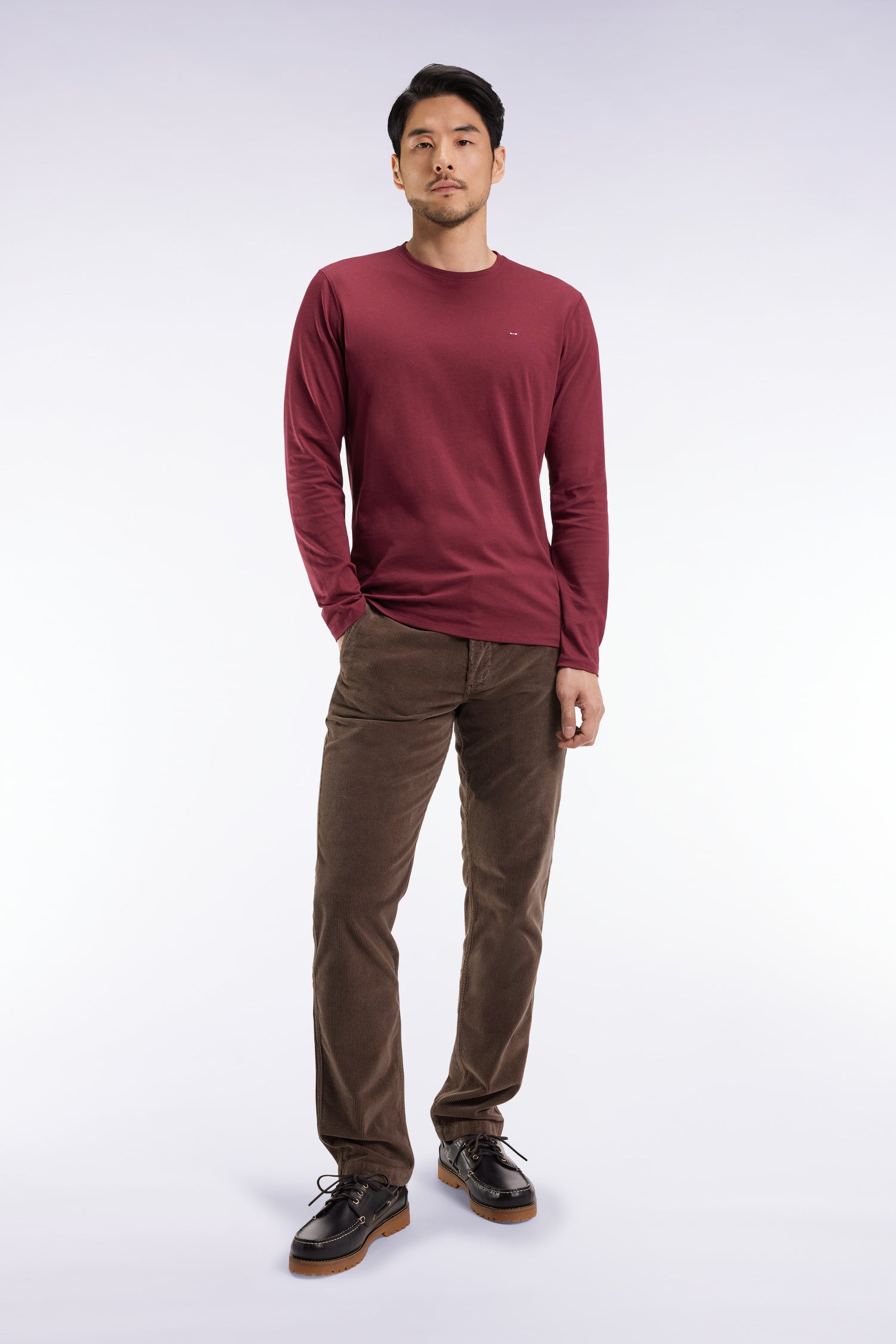 Texture riche et confort maîtrisé : ce chino masculin en velours conjugue l’allure classique d’un pantalon droit à la douceur chaleureuse du velours stretch. Sa coupe sans pli dessine une silhouette nette, tandis que sa matière velours subtilement côtelée lui confère un style affirmé et facile à vivre. Décliné dans plusieurs coloris de saison, ce chino en velours côtelé s’associe aussi