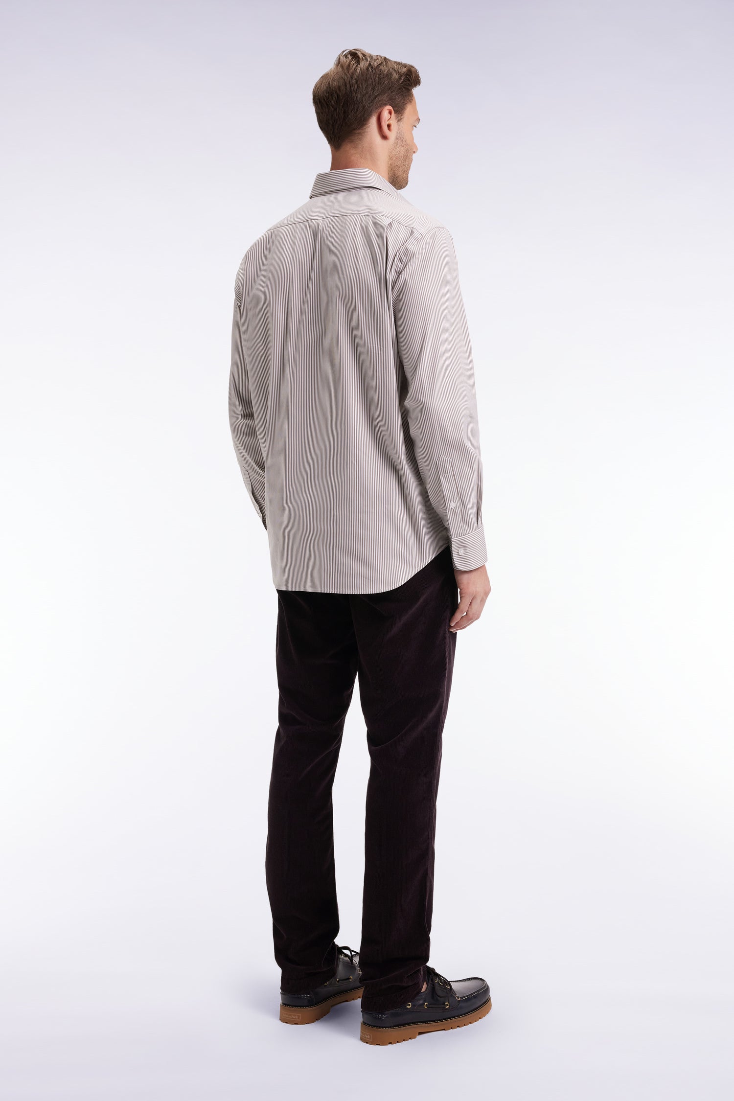Texture riche et confort maîtrisé : ce chino masculin en velours conjugue l’allure classique d’un pantalon droit à la douceur chaleureuse du velours stretch. Sa coupe sans pli dessine une silhouette nette, tandis que sa matière velours subtilement côtelée lui confère un style affirmé et facile à vivre. Décliné dans plusieurs coloris de saison, ce chino en velours côtelé s’associe aussi