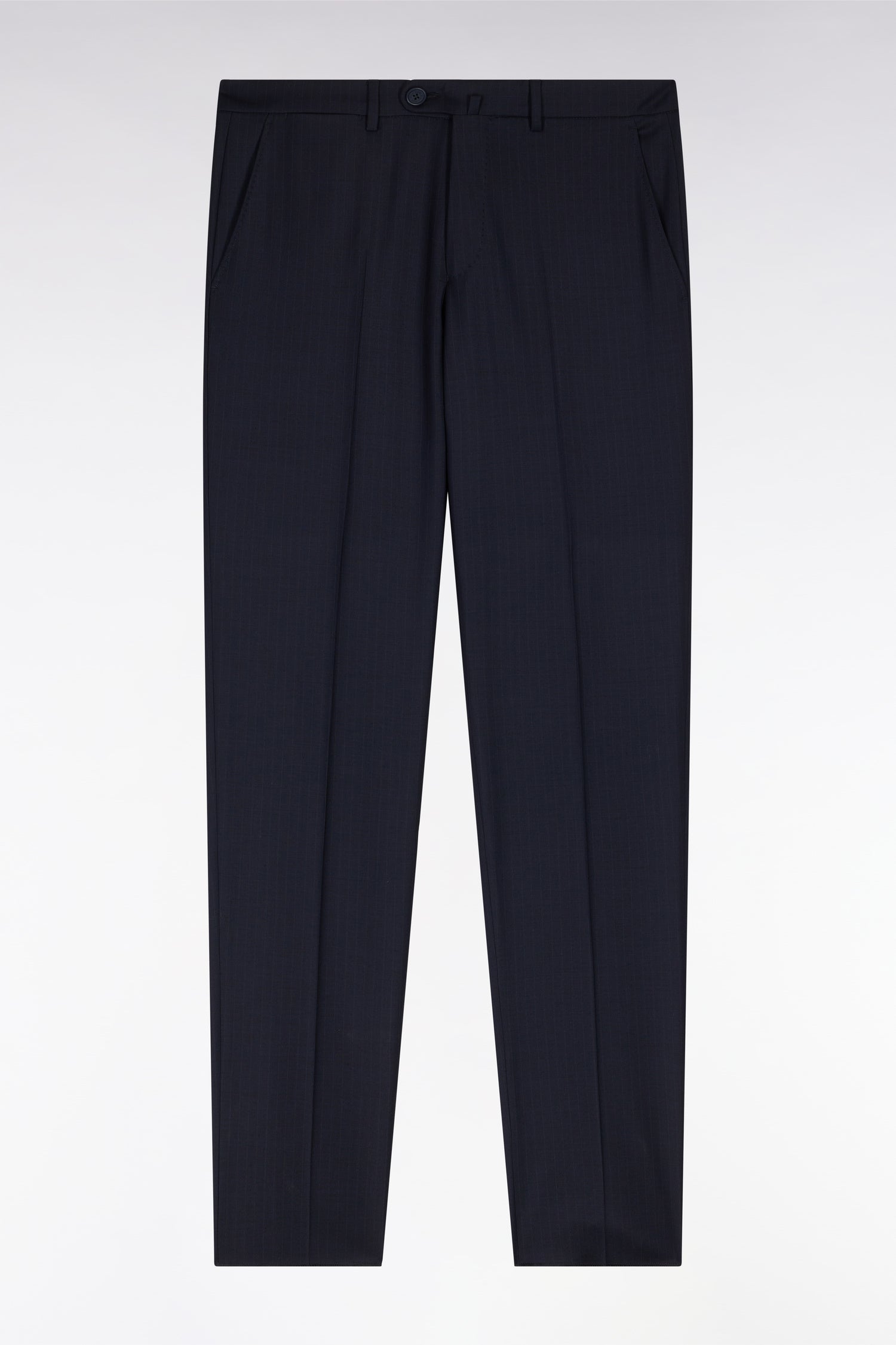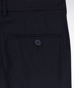 Eden Park Homme Men’s Pantalon En Laine Stretch Mélangée Marine À Rayures Fines