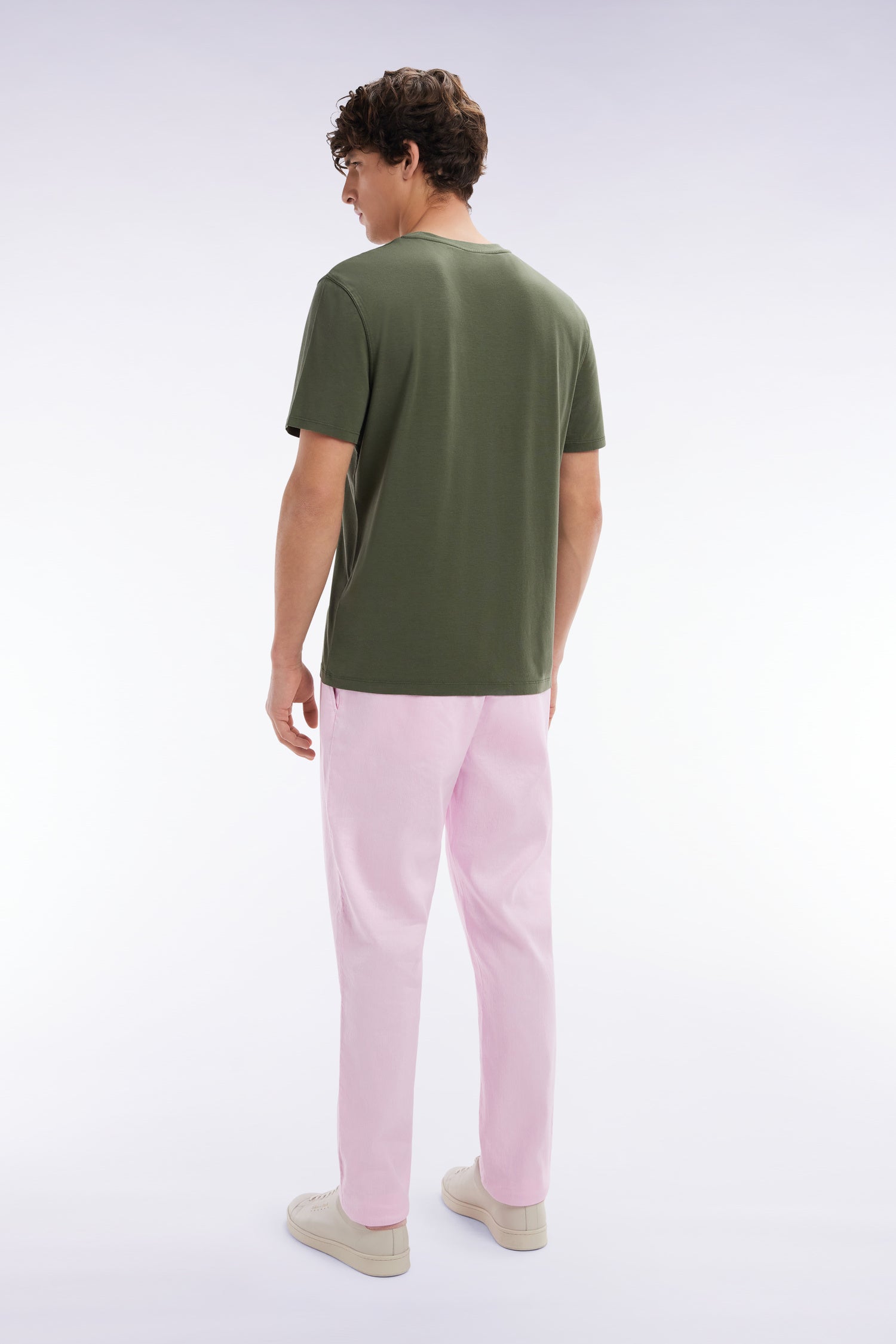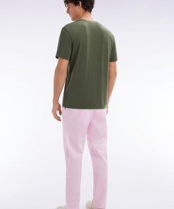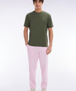 Eden Park Homme Men’s Pantalon Fluide À Taille Élastique En Lin Et Coton Stretch Rose
