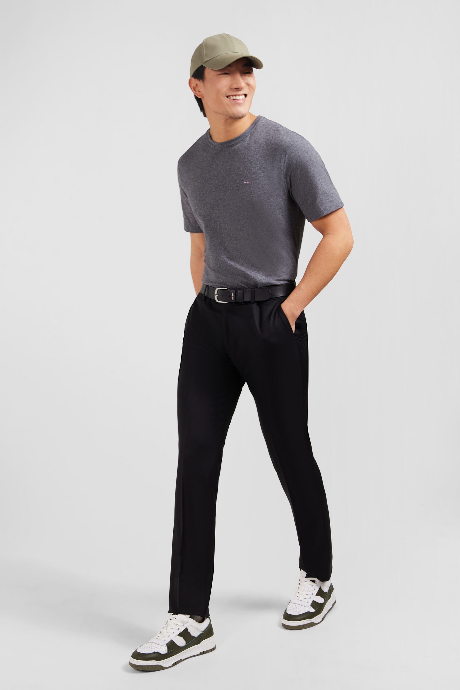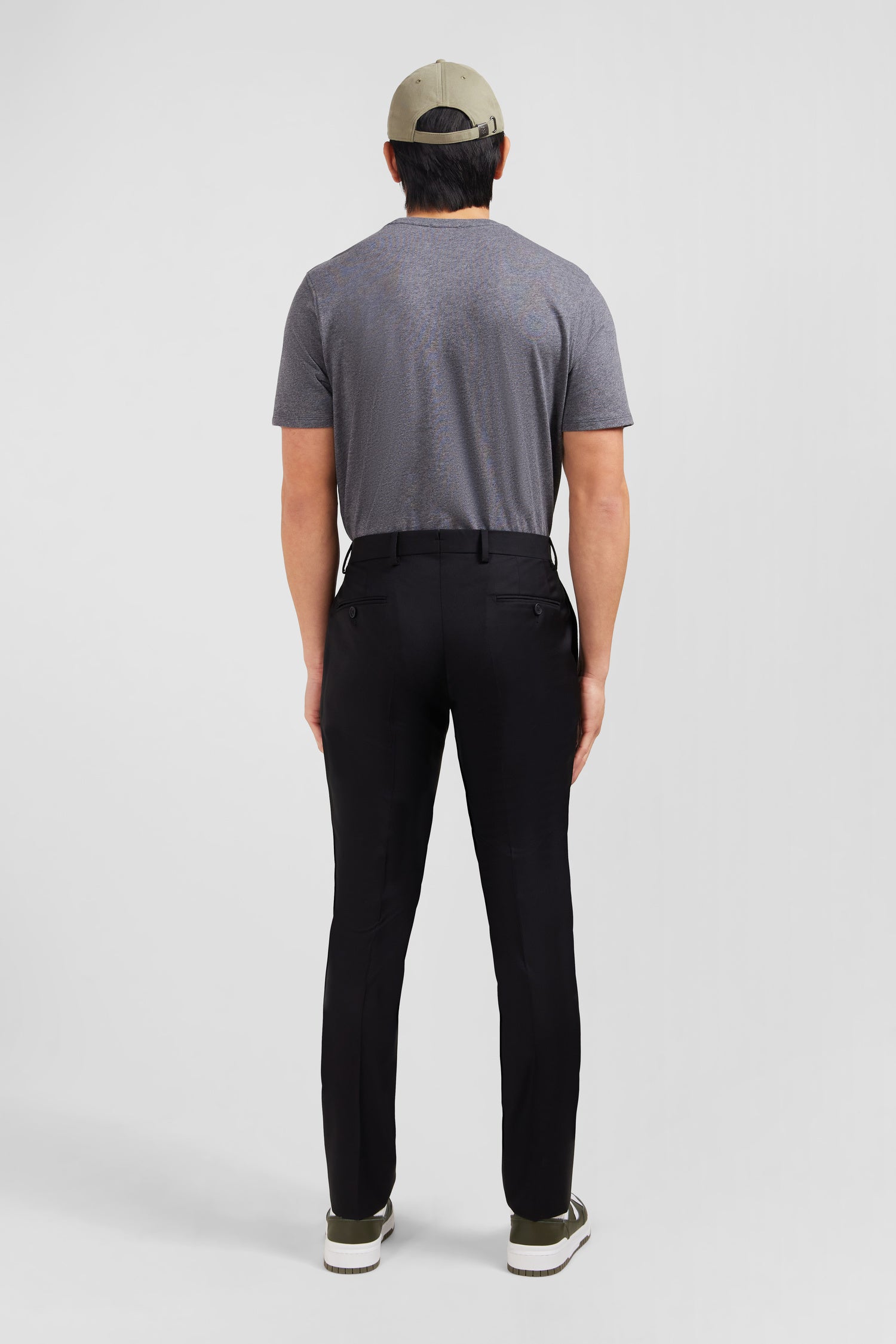 Conçu en laine fine, ce pantalon est élégant à souhait avec sa coupe ajustée et ses jambes à plis cassés. Il dispose d’une taille ajustable grâce à sa patte boutonnée et des passants pour ceinture. Fonctionnel, le pantalon possède des poches italiennes, une poche ticket prise dans la couture sous la taille, ainsi que deux poches passepoilées et boutonnées au dos.