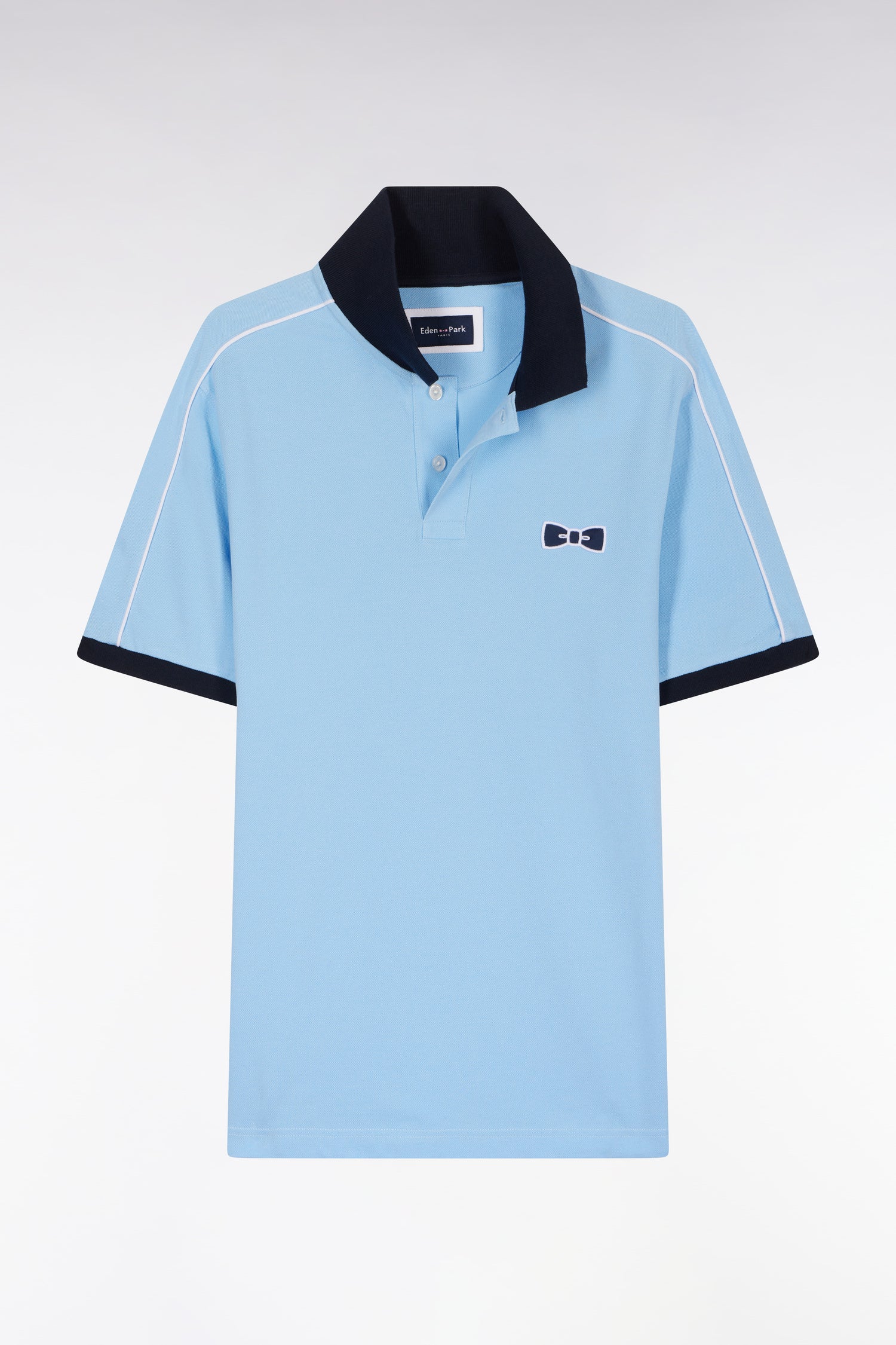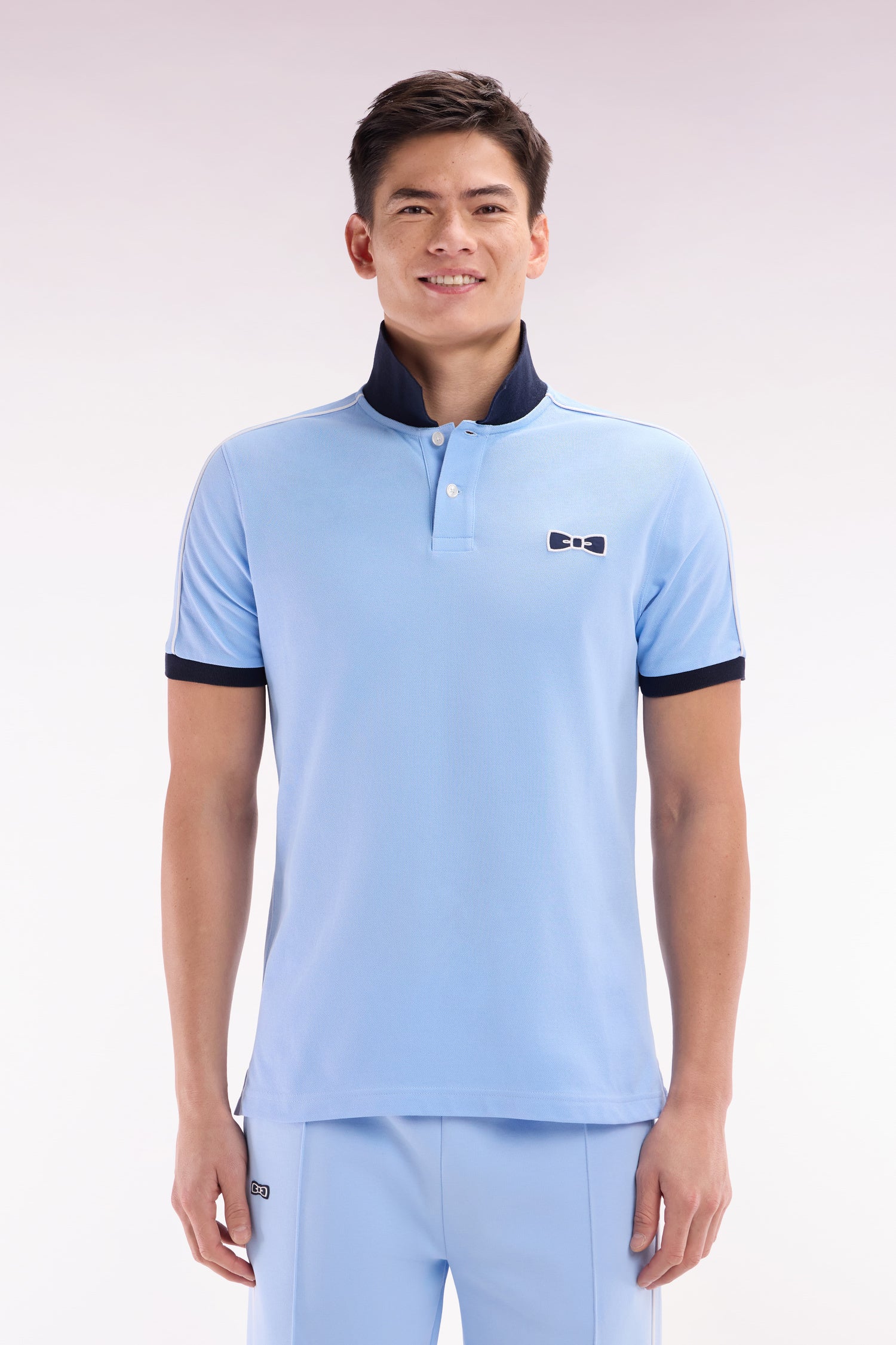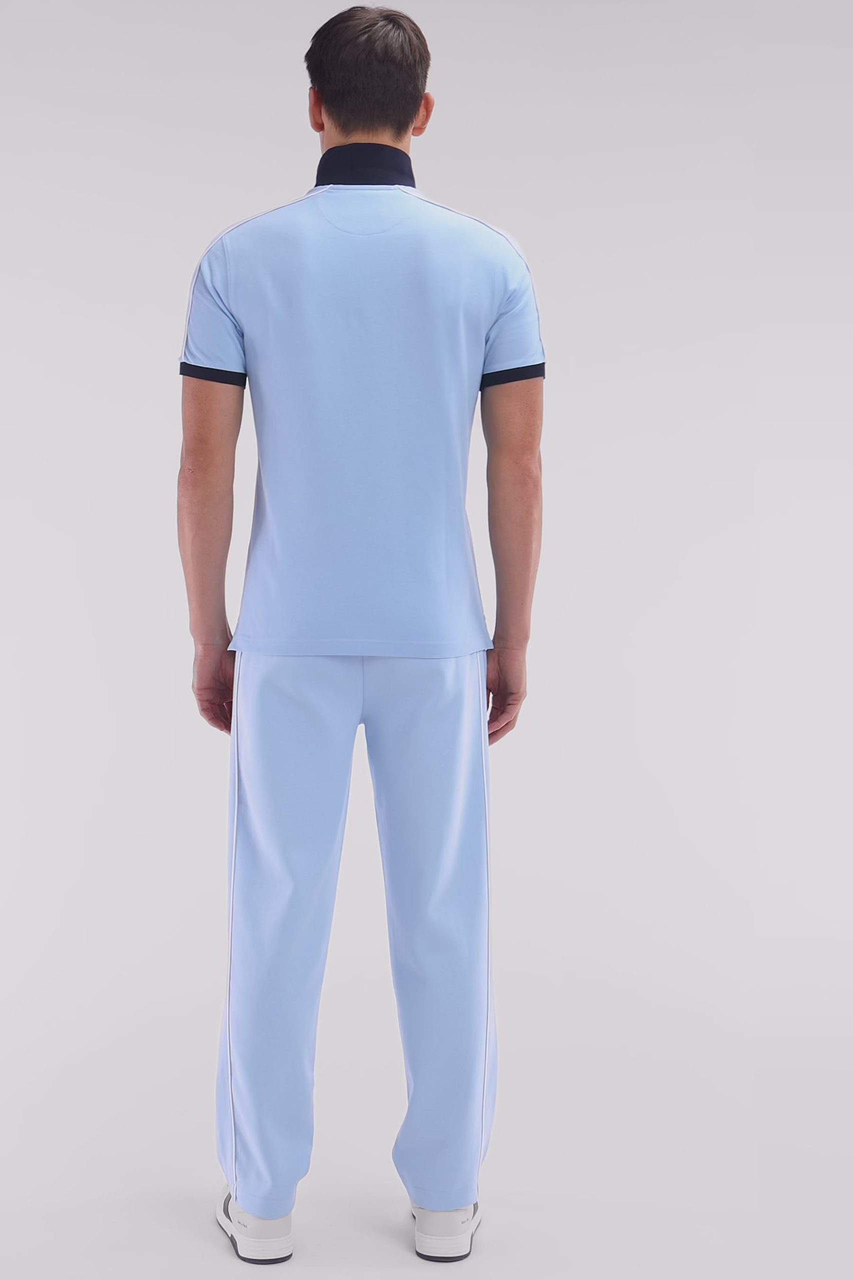 Ce polo homme en piqué de coton, disponible en coloris ciel avec col polo et bordures de manches bleu marine ou en marine avec col rose, se distingue par un passepoil discret contrasté, le long de la ligne d’épaules. Un détail chic et sportif pour un style affirmé et une carrure élégamment mise en valeur.
