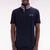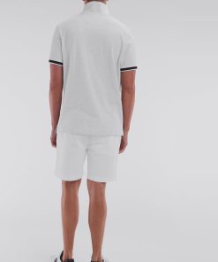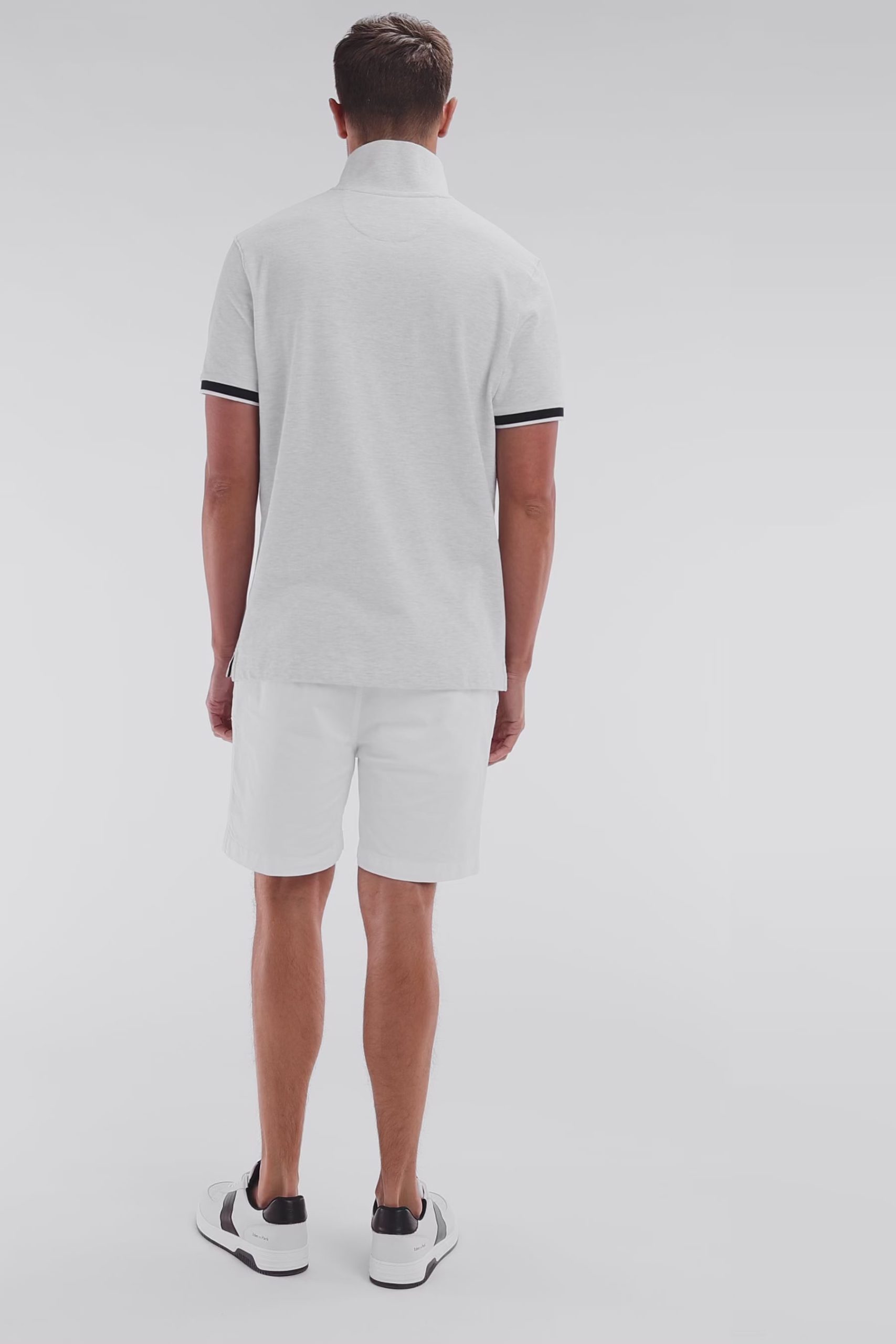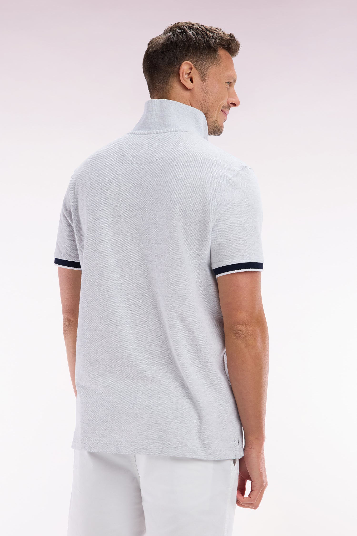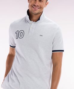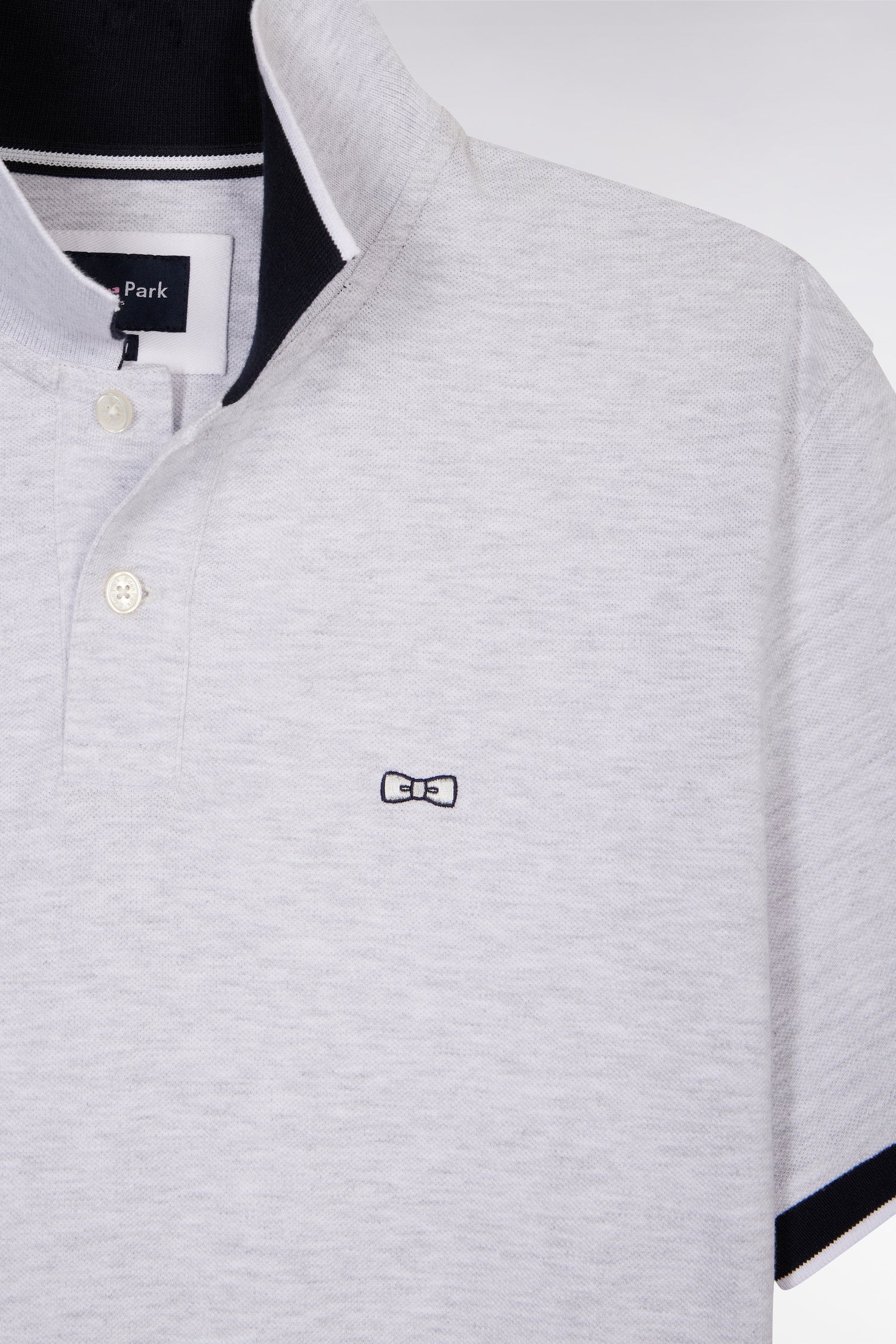Ce polo à la coupe décontractée, proposé dans des coloris pop comme le bleu ciel, jaune et rose, ainsi qu’en gris intemporel, se distingue par sa broderie nœud papillon ton sur ton avec un contour bleu marine pour un effet plus prononcé. Ce détail fait écho aux bordures de manches en bord-côtes et au col polo bleu marine. La broderie numéro 10, hommage au maillot de rugby porté par Frank Mesnel, le fondateur de notre Maison, en fait une pièce emblématique et tendance.