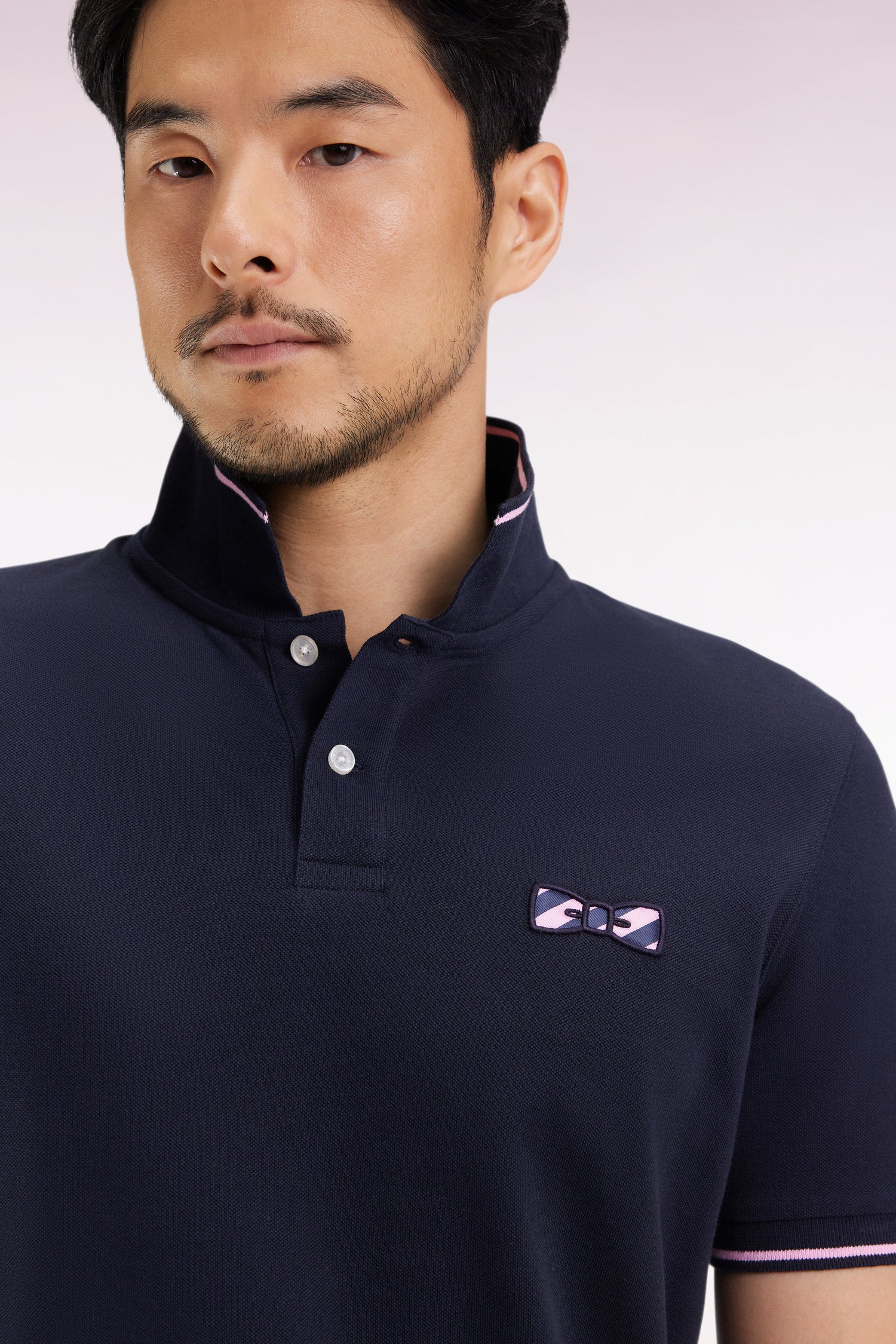 Col et bordures de manches contrastés, élégamment soulignés d’une rayure, apportent une touche athlétique à ce polo homme coupe droite. Pour plus d’originalité, ce modèle arbore une large broderie nœud papillon rehaussée de rayures rugby. Doté des mêmes finitions soignées que nos polos iconiques, ce polo en coton proposé dans trois duos de couleurs vous surprendra par sa versatilité et son confort