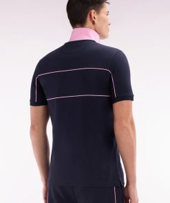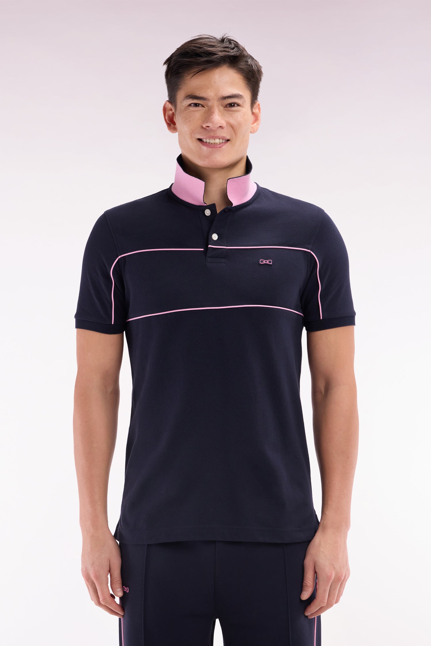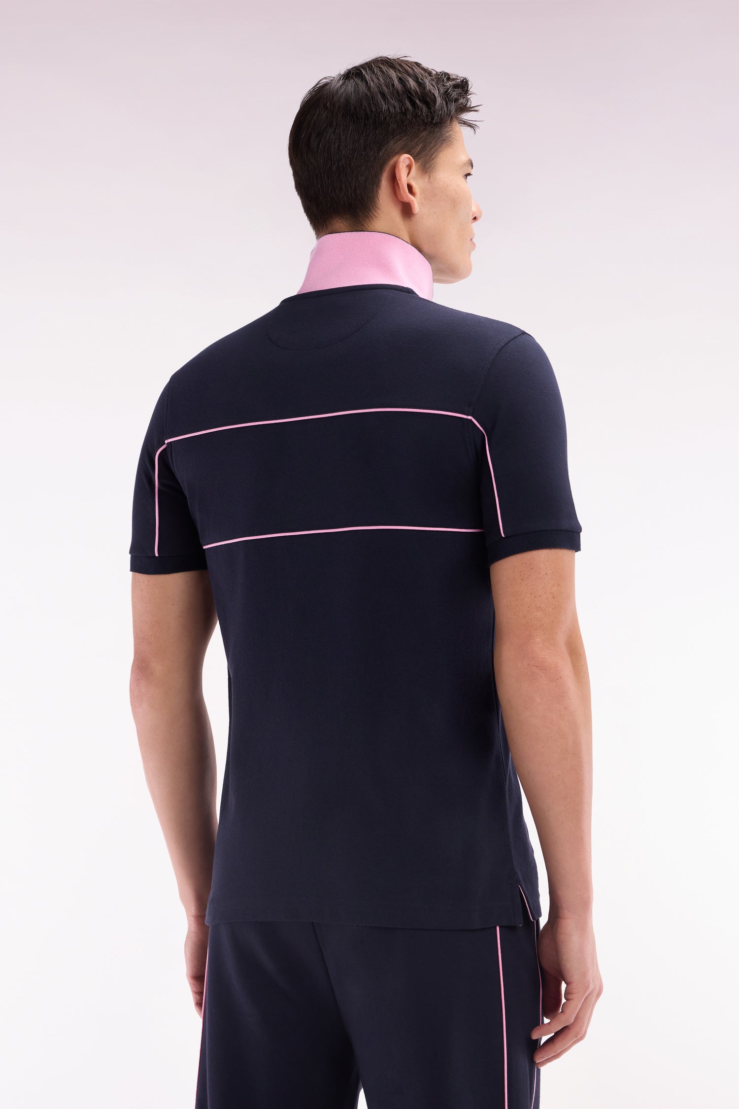 Le coupé-cousu est un savoir-faire emblématique de notre Maison. Ce polo en piqué de coton, disponible en ciel ou marine, se distingue par ce détail mis en valeur par des passepoils contrastés. Avec un badge emblème en gomme sur la poitrine, un col et des manches en bord-côtes tricotés à plat, ce polo présente un sous-col et une bande de propreté contrastés pour une touche sport-chic.
