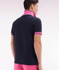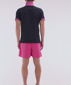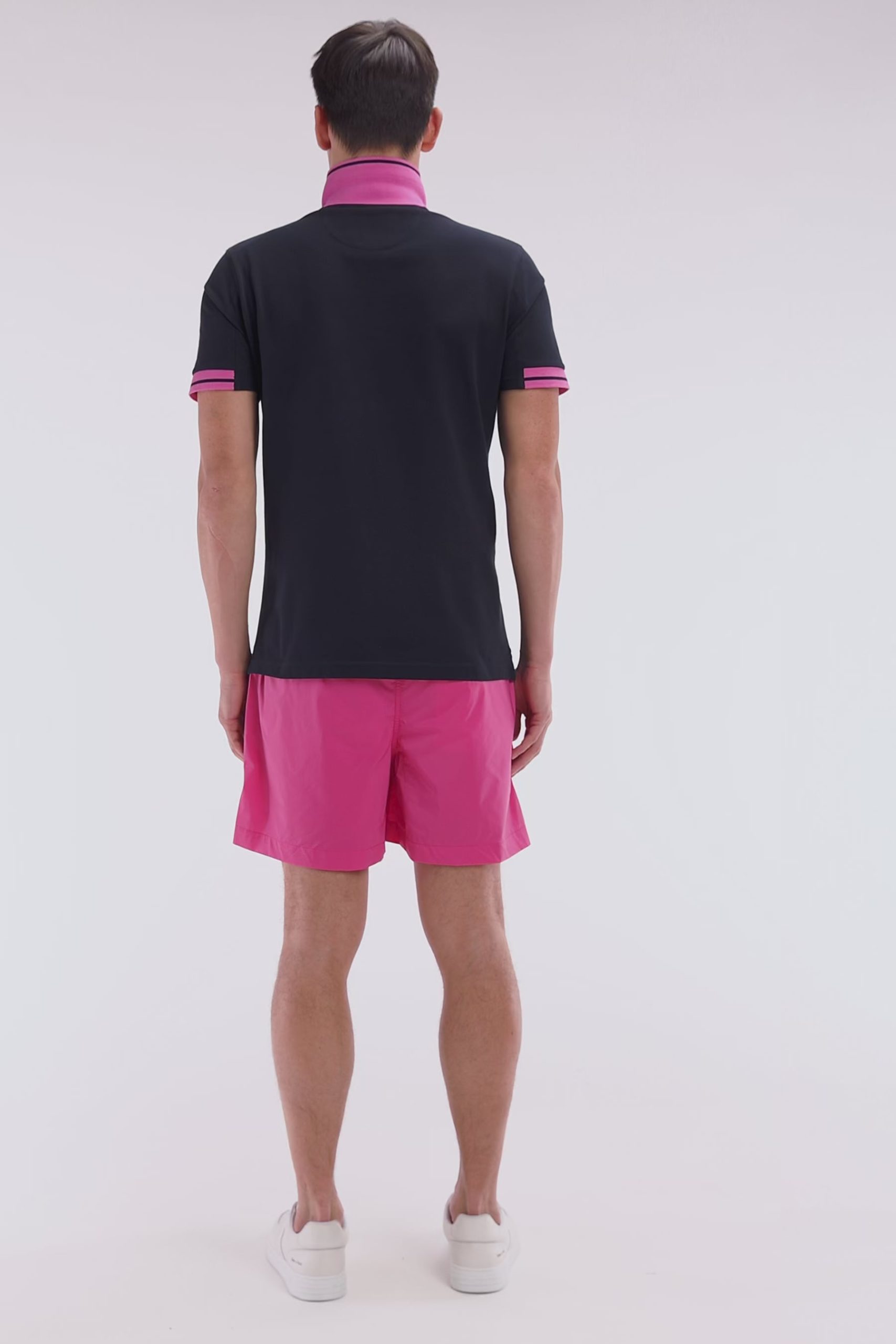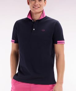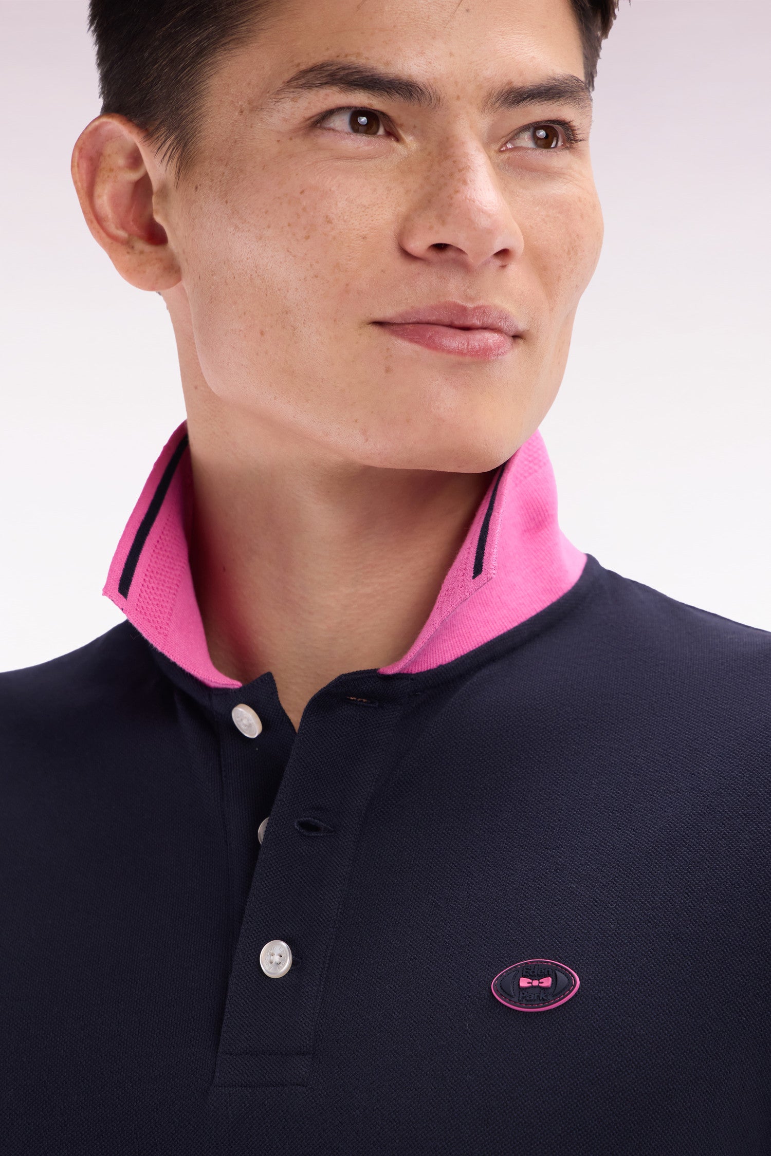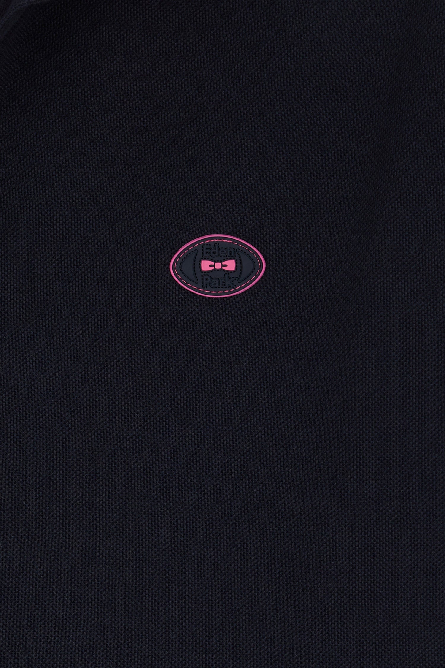 Ce polo en piqué de coton, issu de la collection Beach Rugby, se distingue par son corps uni et ses touches de couleurs sur le col et les bordures des manches. Disponible en bleu, jaune, rose ou rouge, il présente des manches contrastées avec un effet texturé. Des rayures contrastées agrémentent le col et les manches, tandis qu’un badge en silicône en forme de ballon de rugby, assorti d’un nœud papillon coloré, vient compléter cette pièce ludique et estivale.