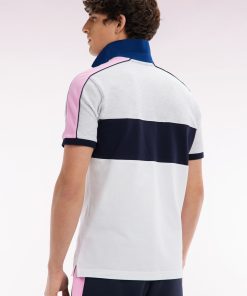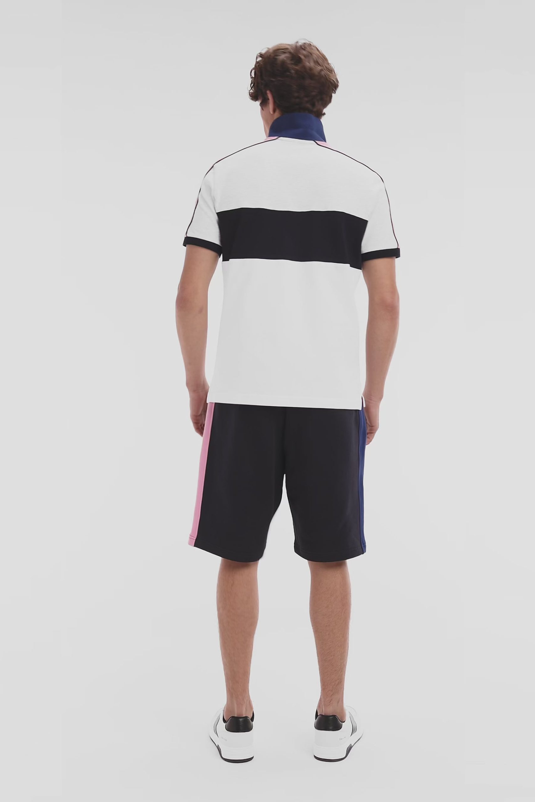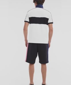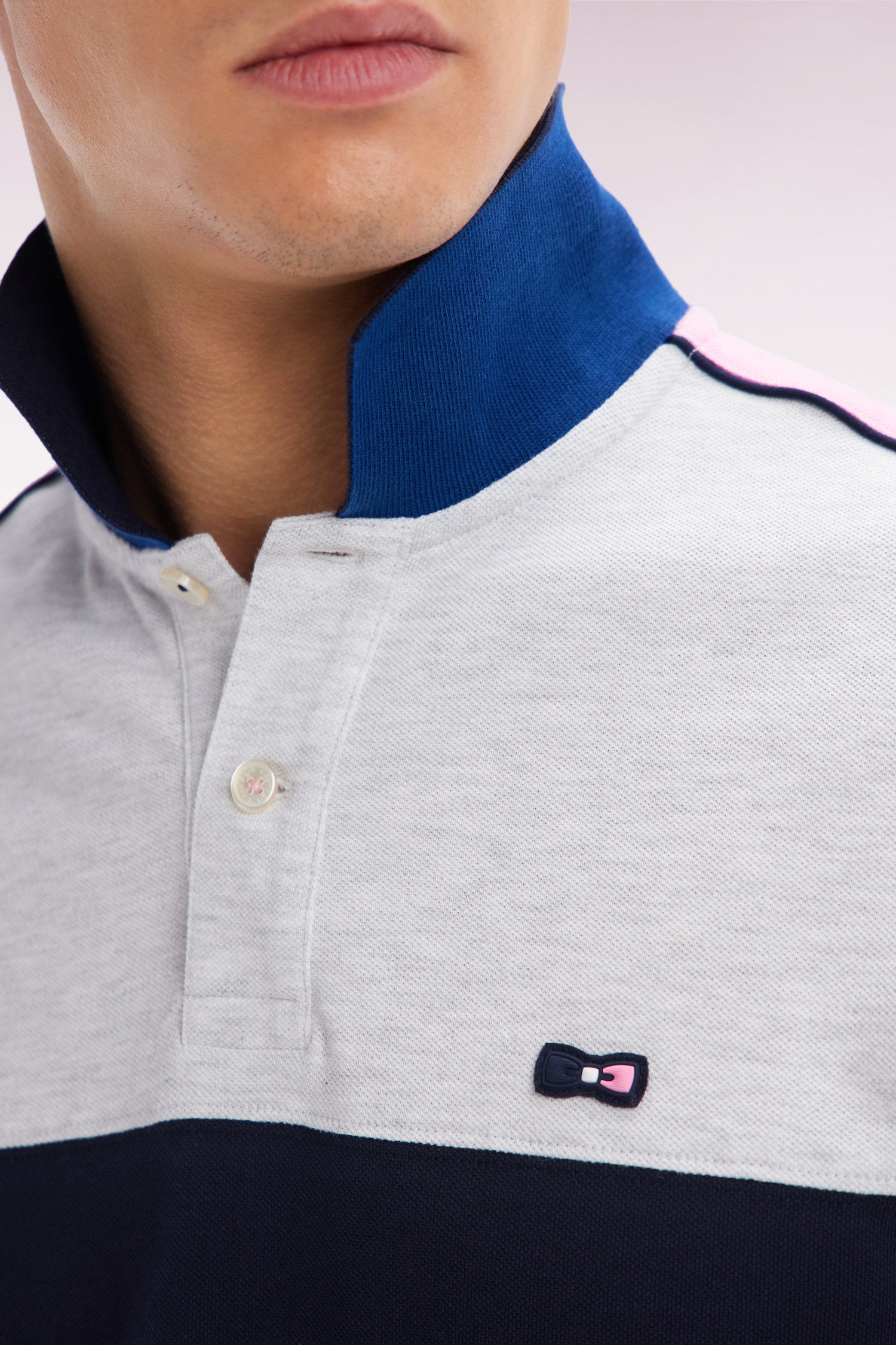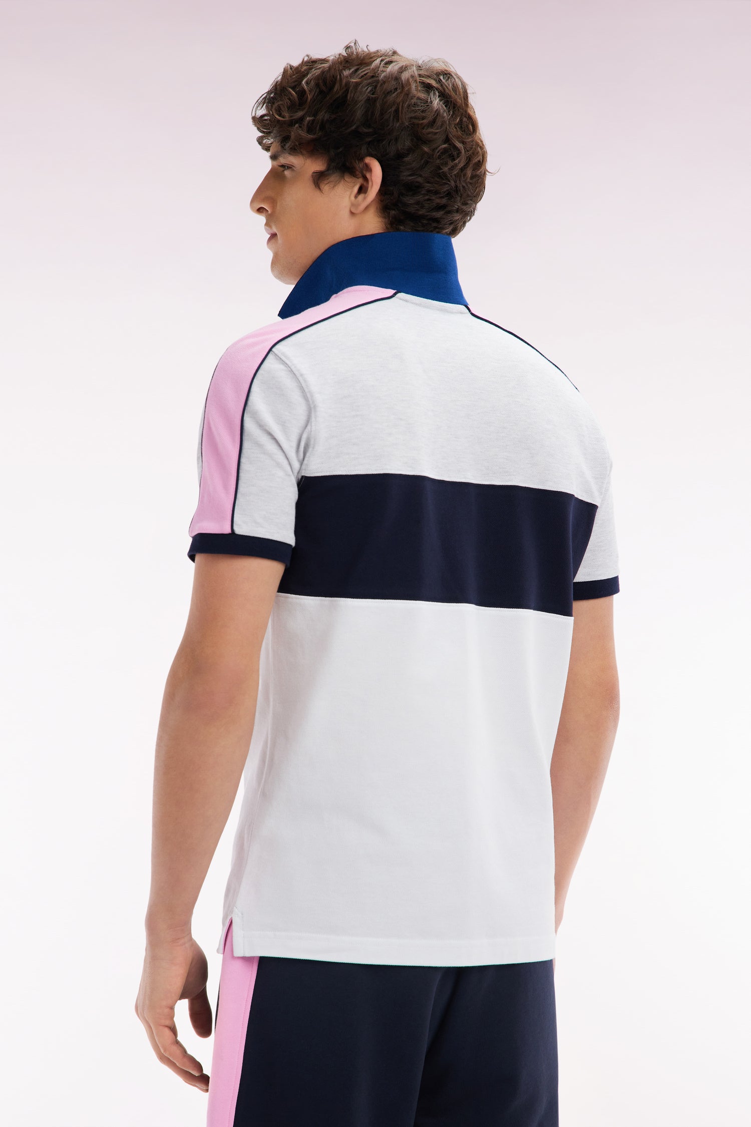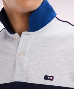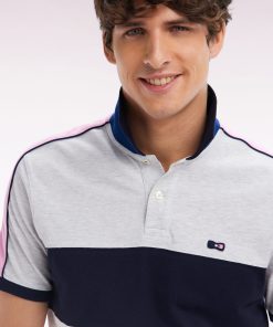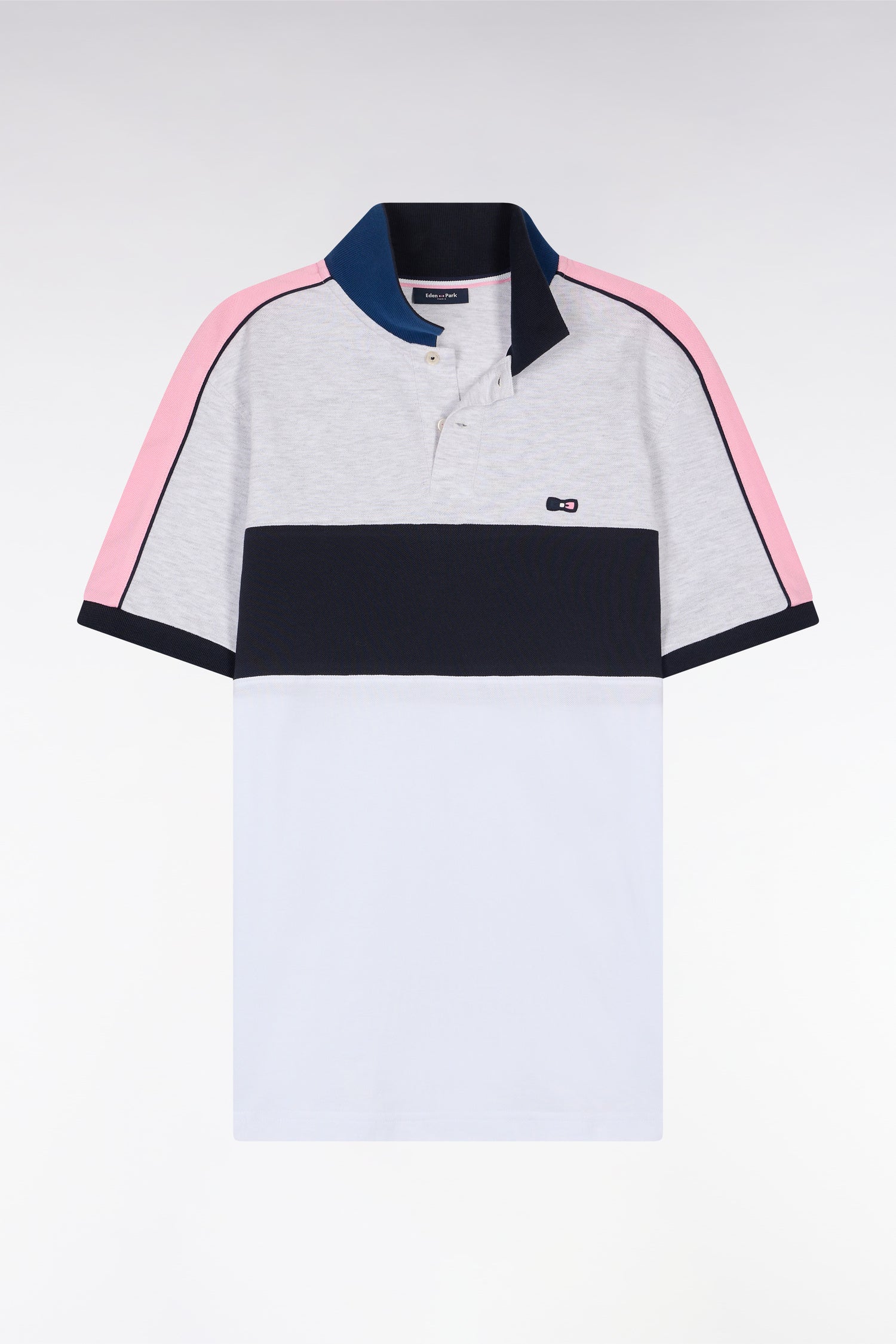 Eden Park Homme Men’s Polo À Manches Courtes En Coton Tricolore Blanc Marine Et Gris Coupe D