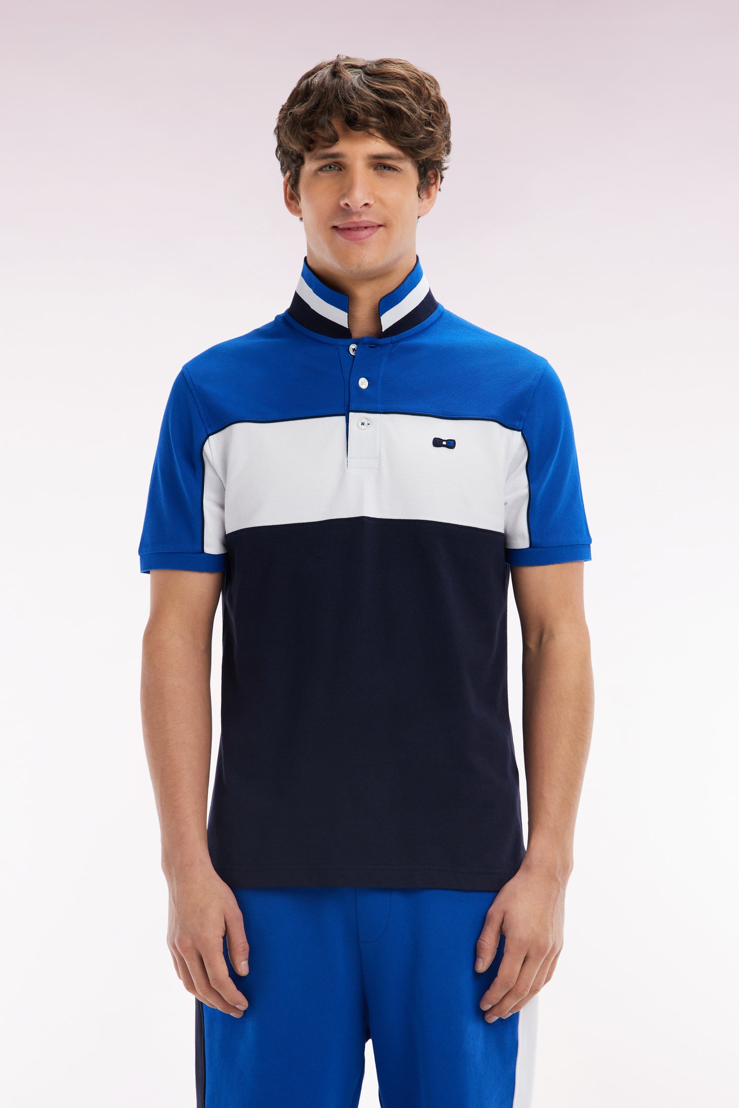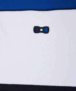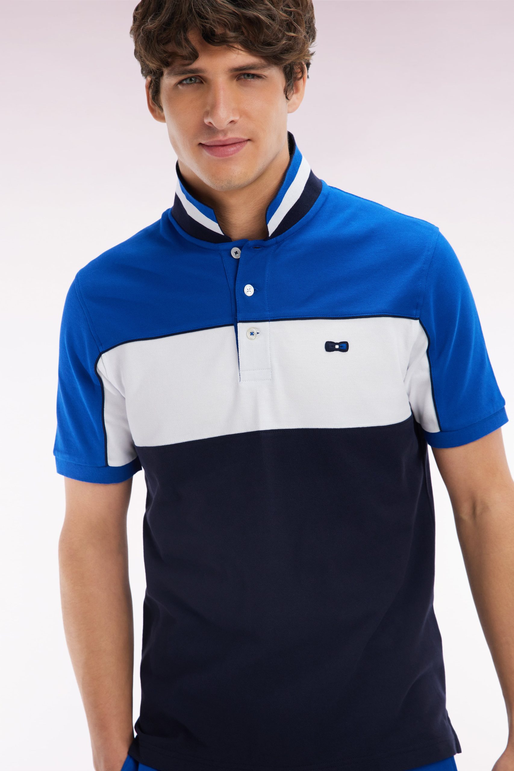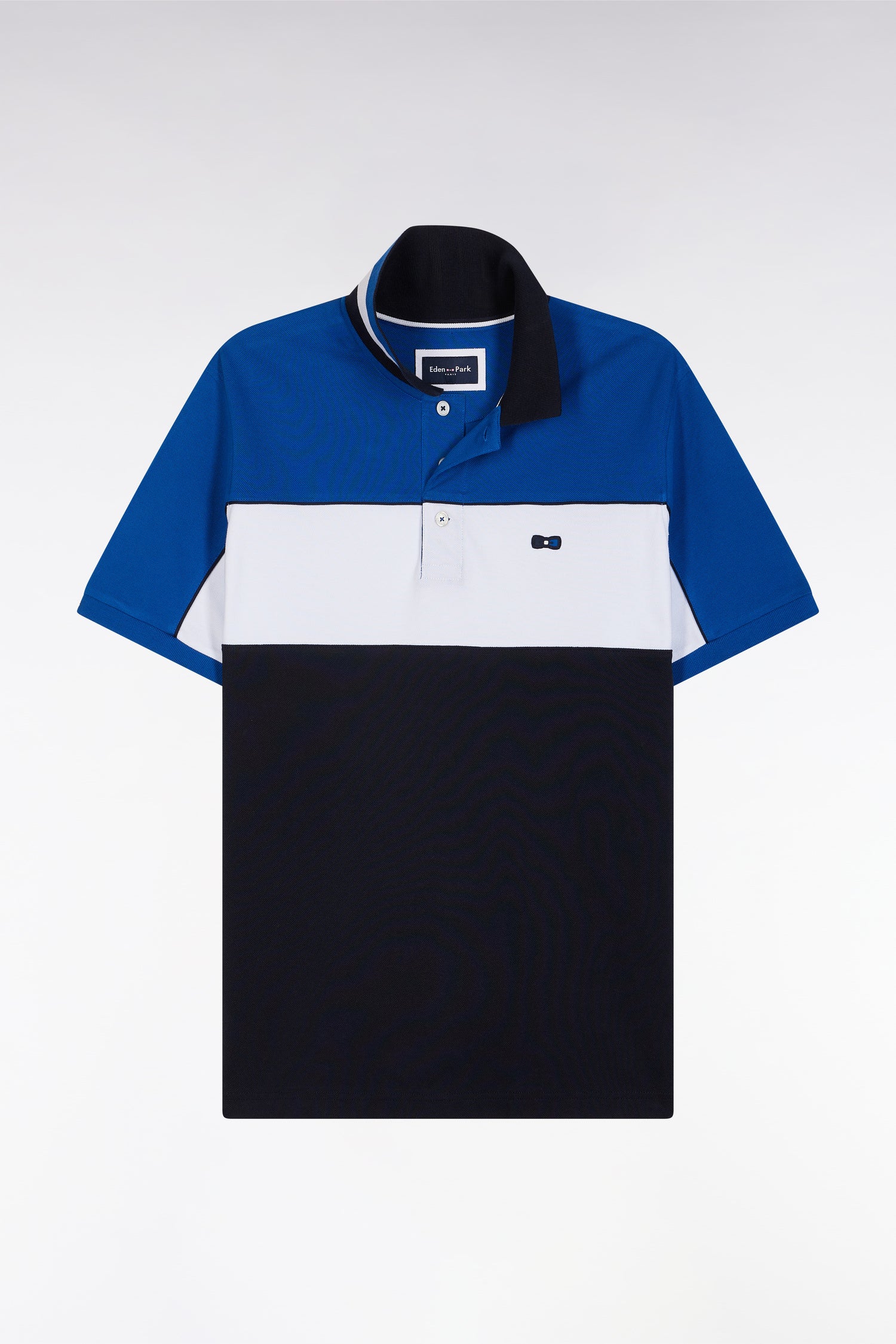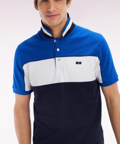 Eden Park Homme Men’s Polo À Manches Courtes En Coton Tricolore Bleu Dessous De Col Rayé Cou
