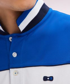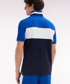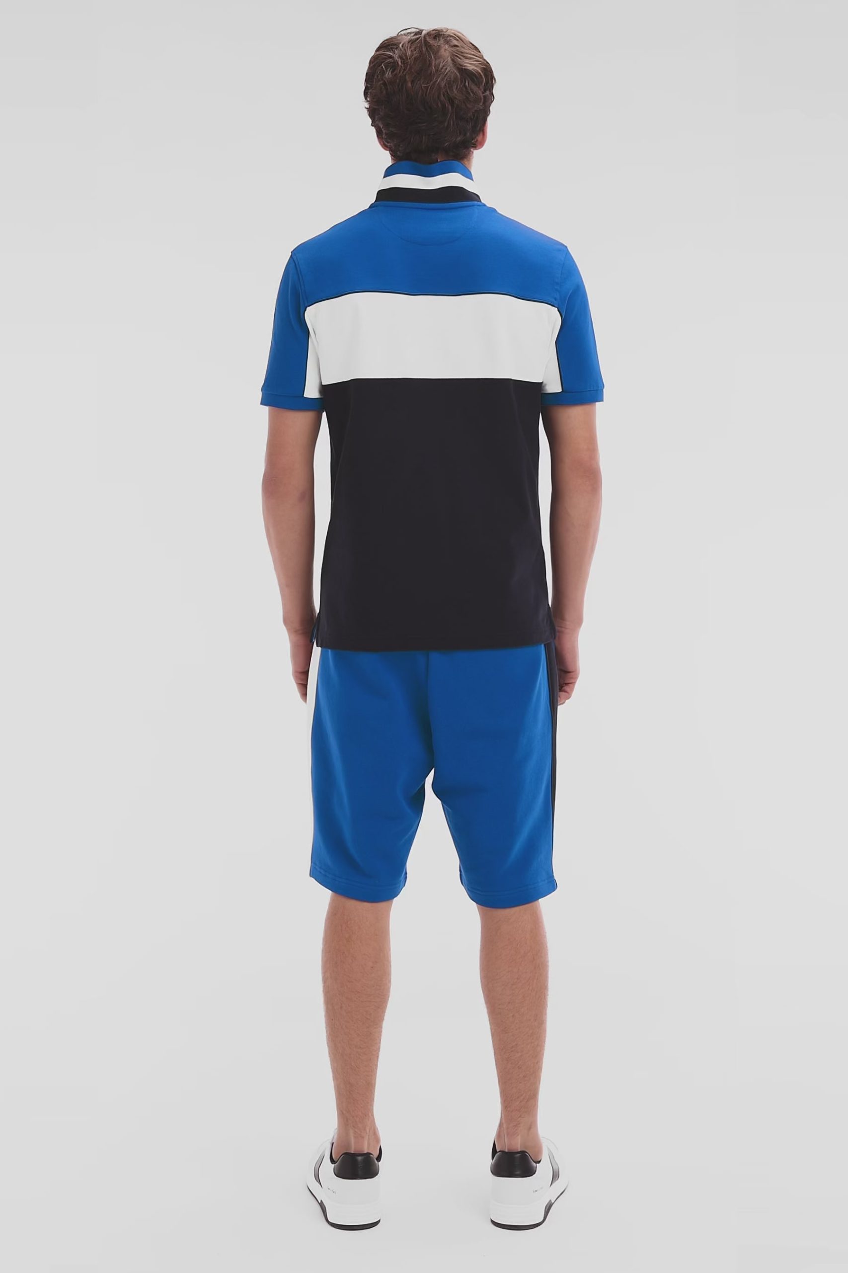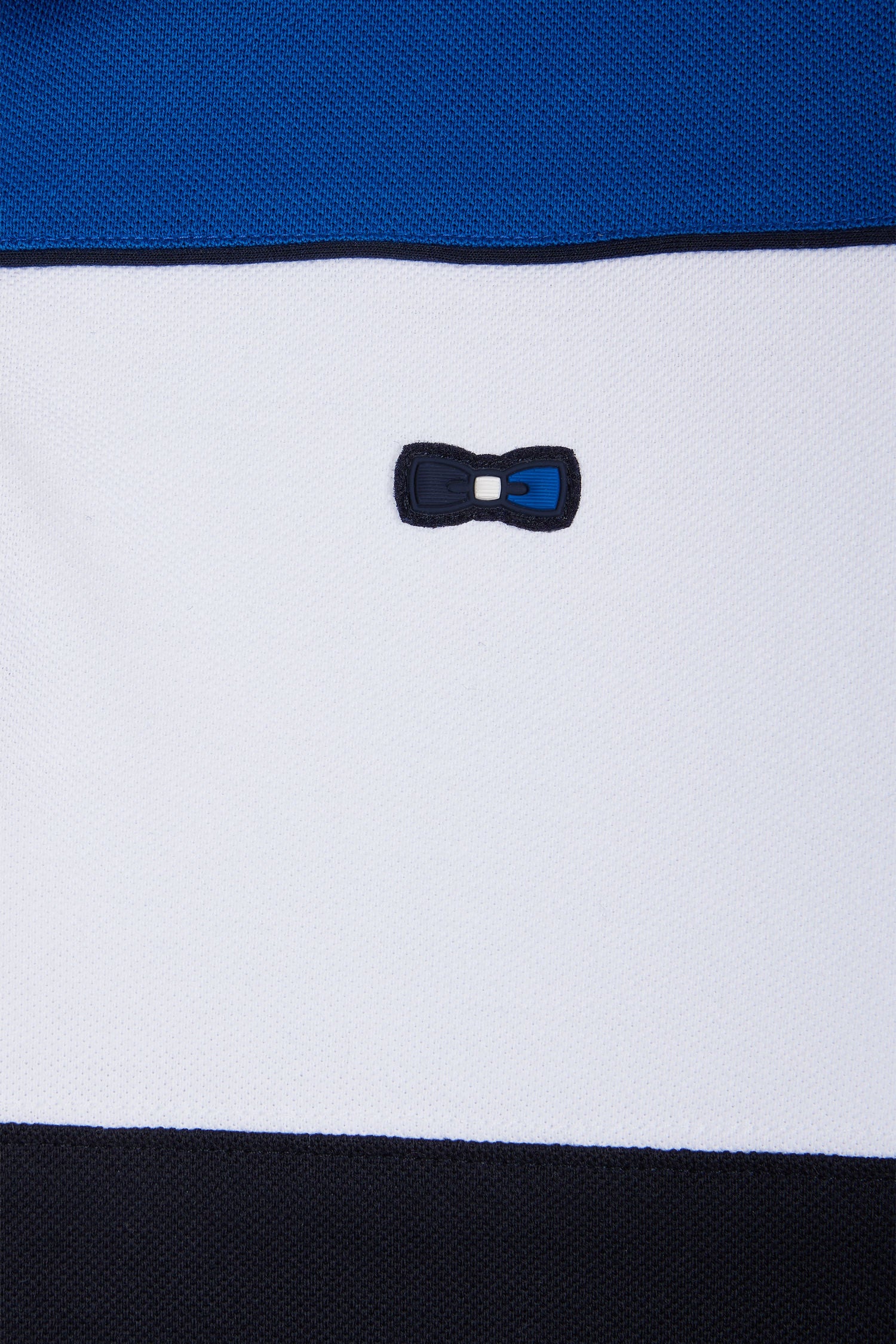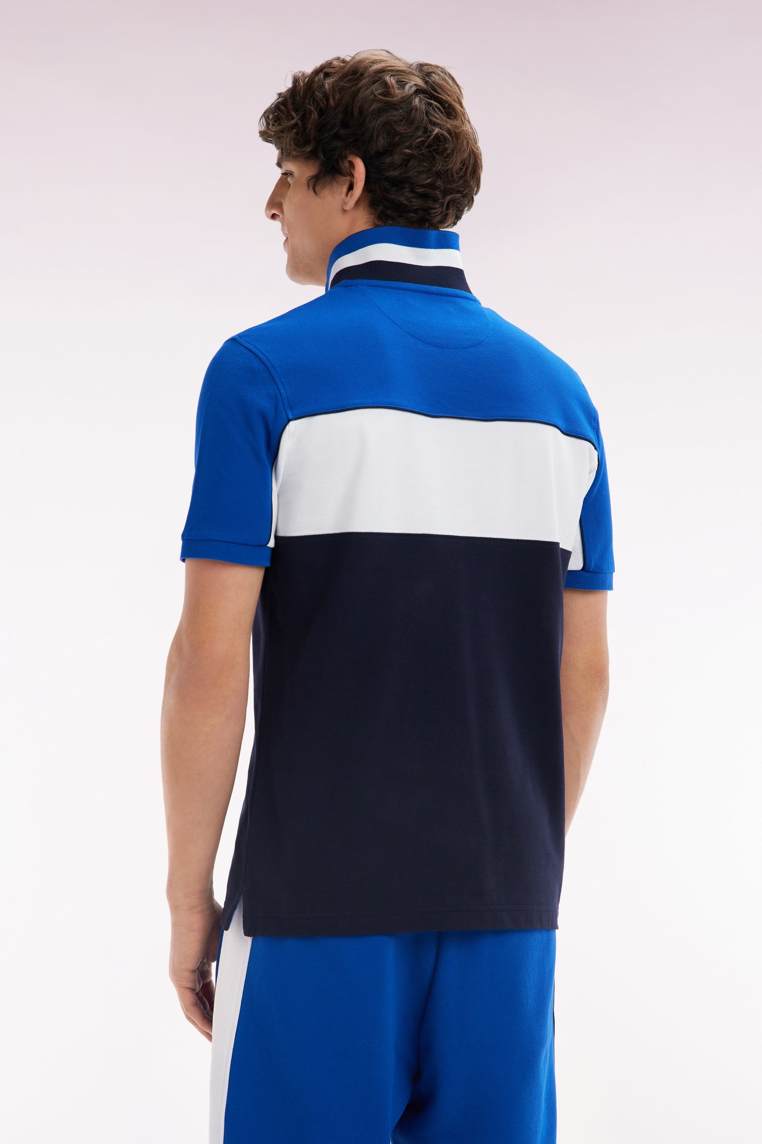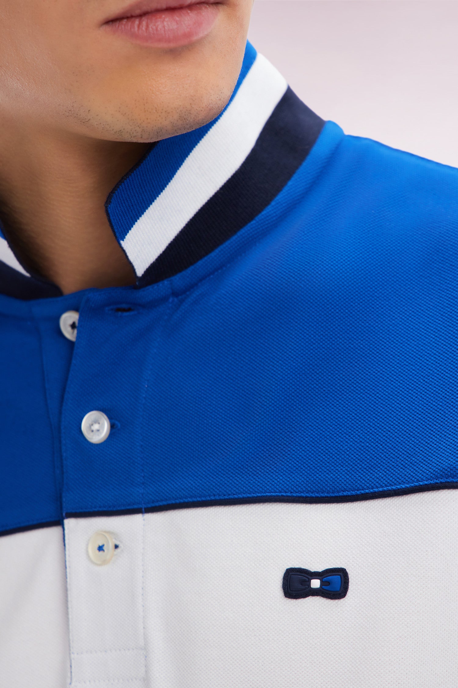 Eden Park Homme Men’s Polo À Manches Courtes En Coton Tricolore Bleu Dessous De Col Rayé Cou