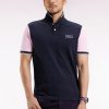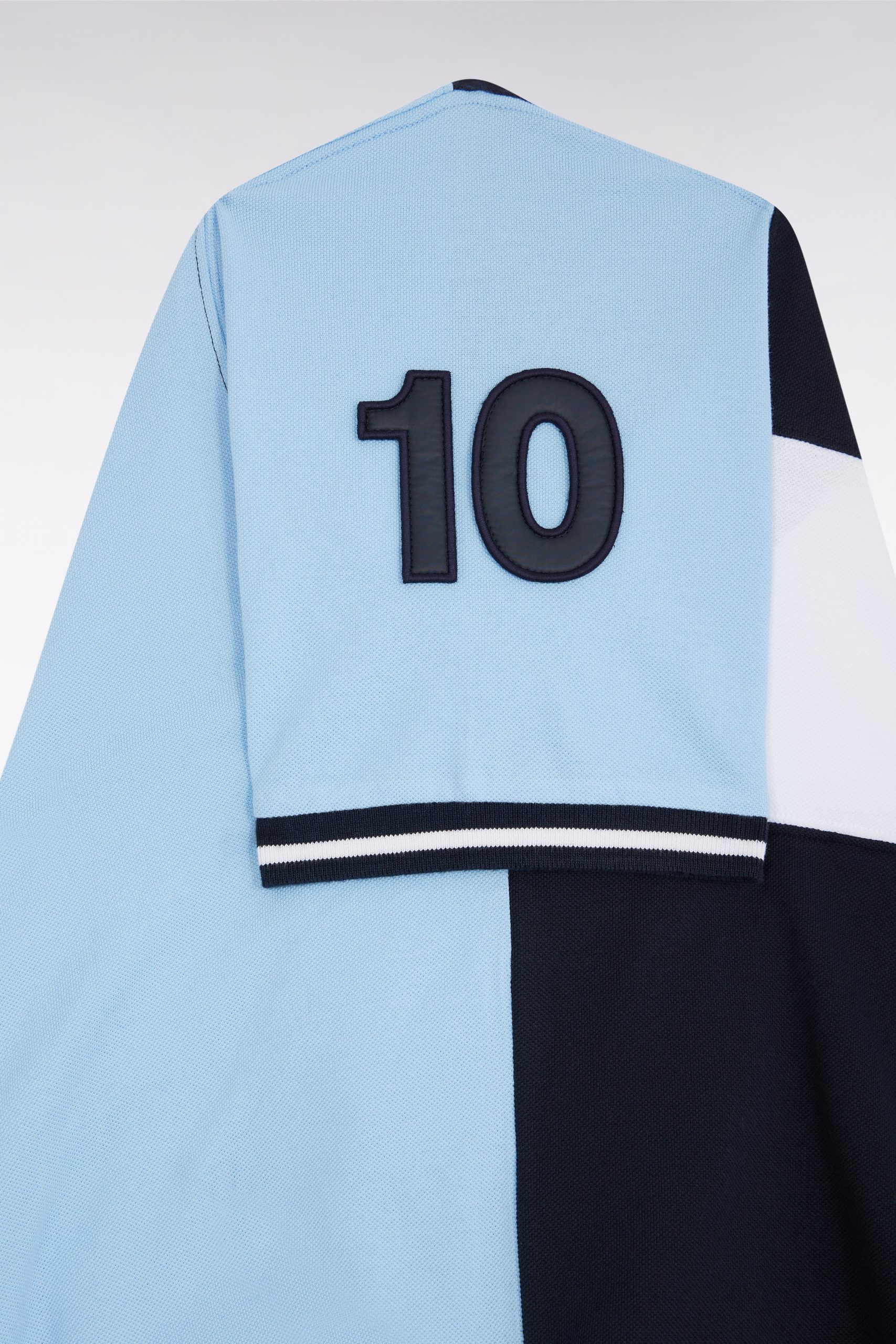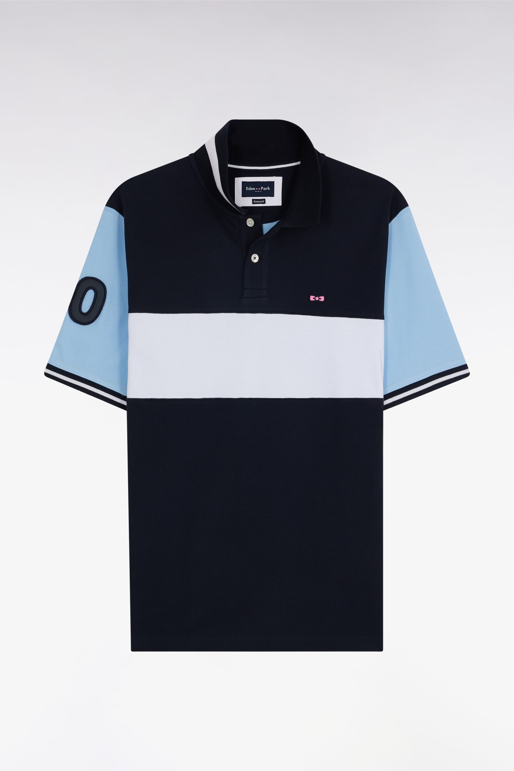 Ce polo masculin en piqué de coton, à la coupe plus décontractée, est proposé en trois coloris, chacun rehaussé d’une large bande contrastée sur la poitrine. Certaines déclinaisons présentent un jeu de contraste entre les manches et le corps de la pièce, complété par une petite bordure de manche et un col rayé contrasté, pour un style dynamique et raffiné. Sur la manche une broderie 10 rappelle le maillot porté par notre fondateur Franck Mesnel.
