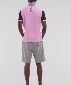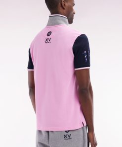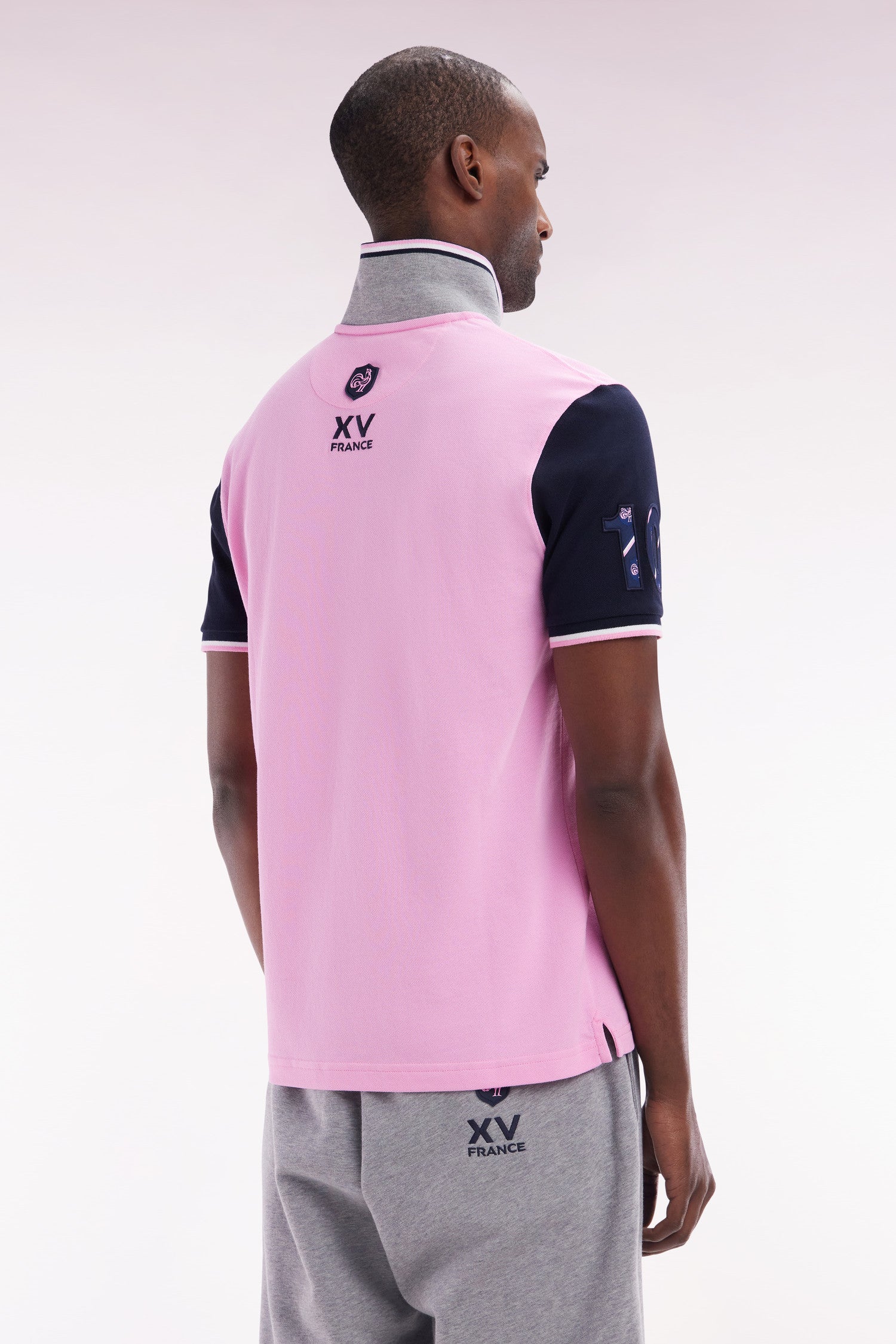 Notre polo en piqué coton pour homme décliné dans deux versions bleu marine et rose, joue sur l’harmonie des couleurs. Sa broderie numéro 10 sur la manche, contrastée ou ton sur ton selon le modèle, apporte une touche sportive discrète. Le col polo, avec un dessous gris, et les bordures de manches en bords-côtes rayée rehaussent son allure sport-chic .