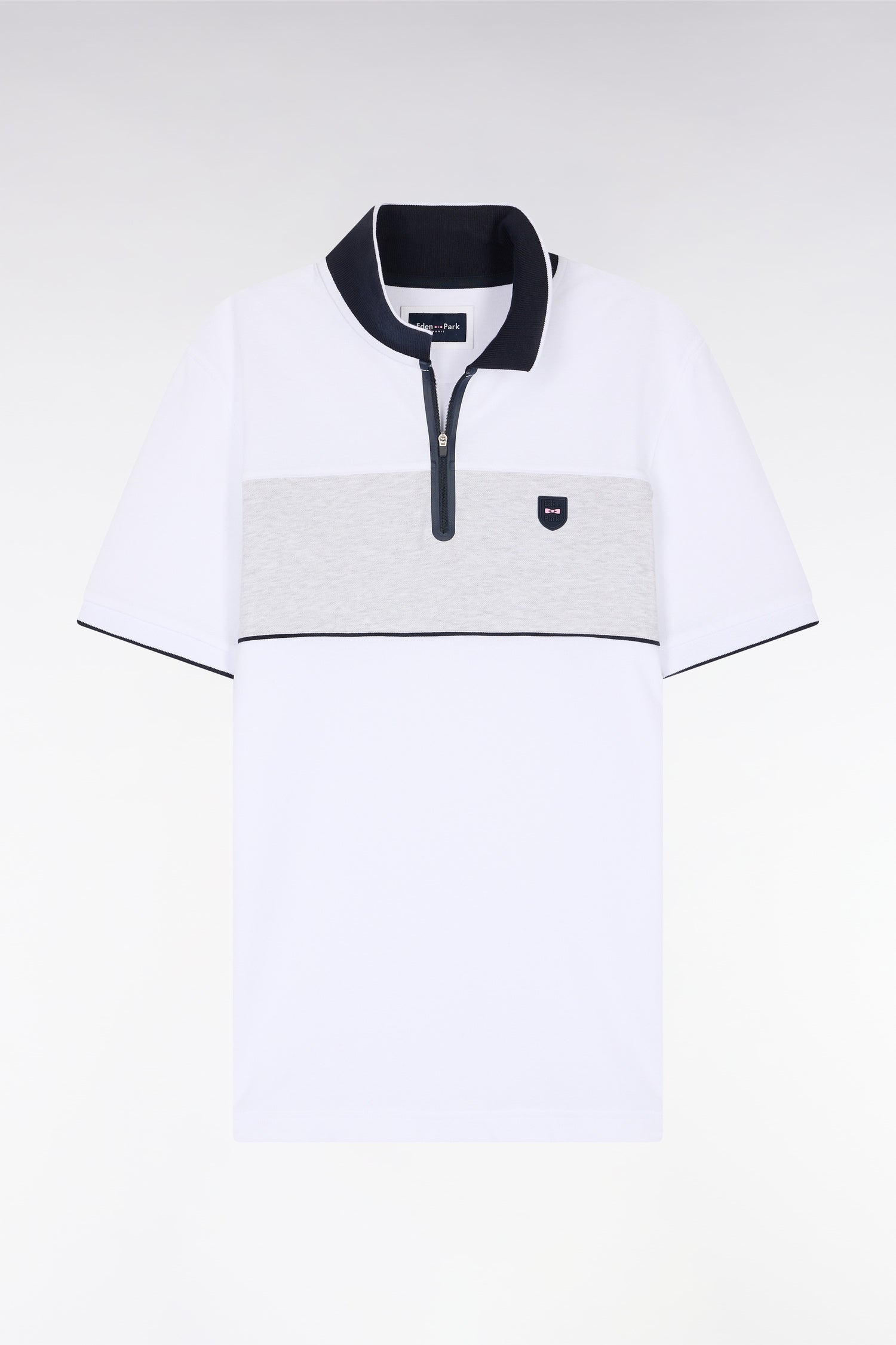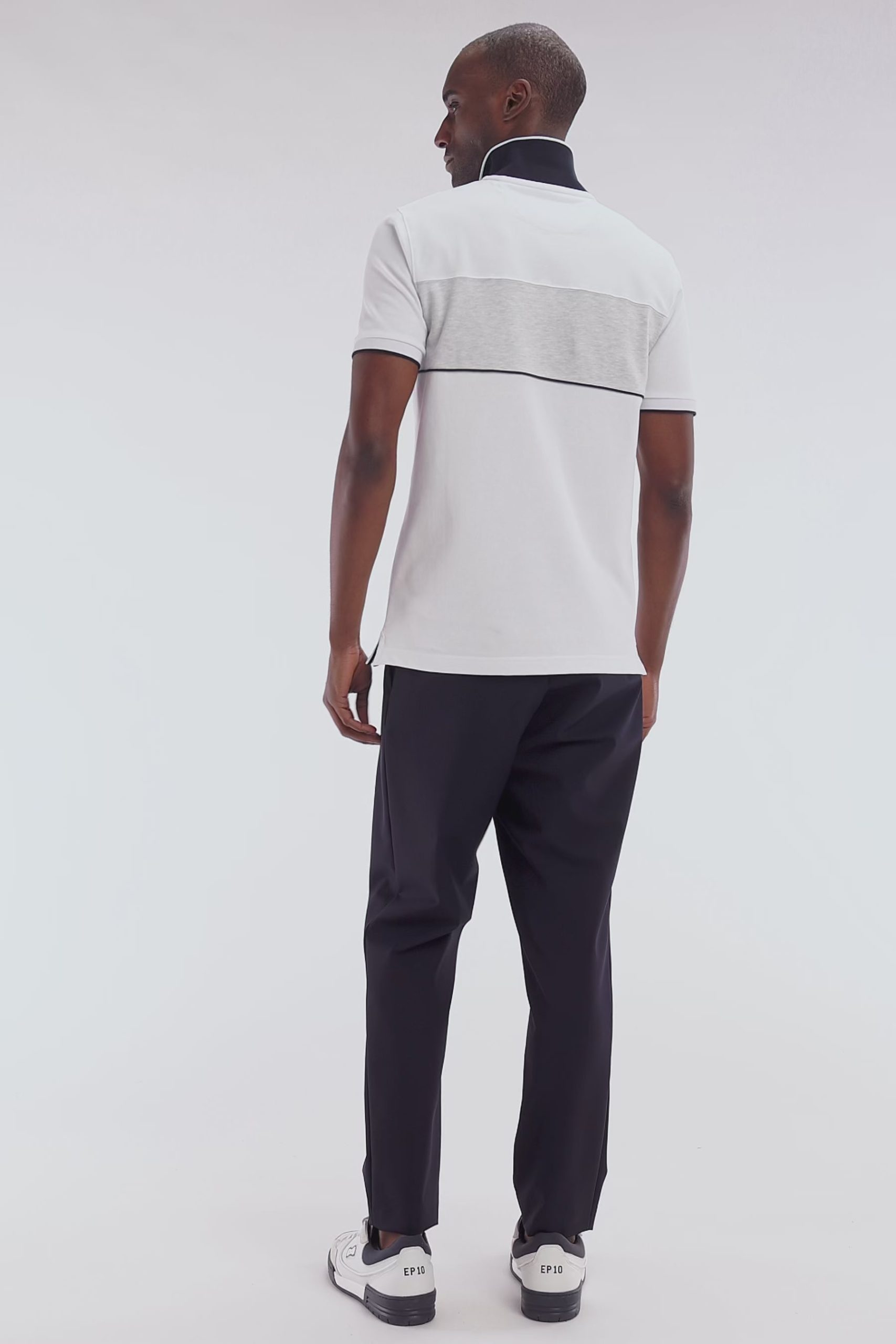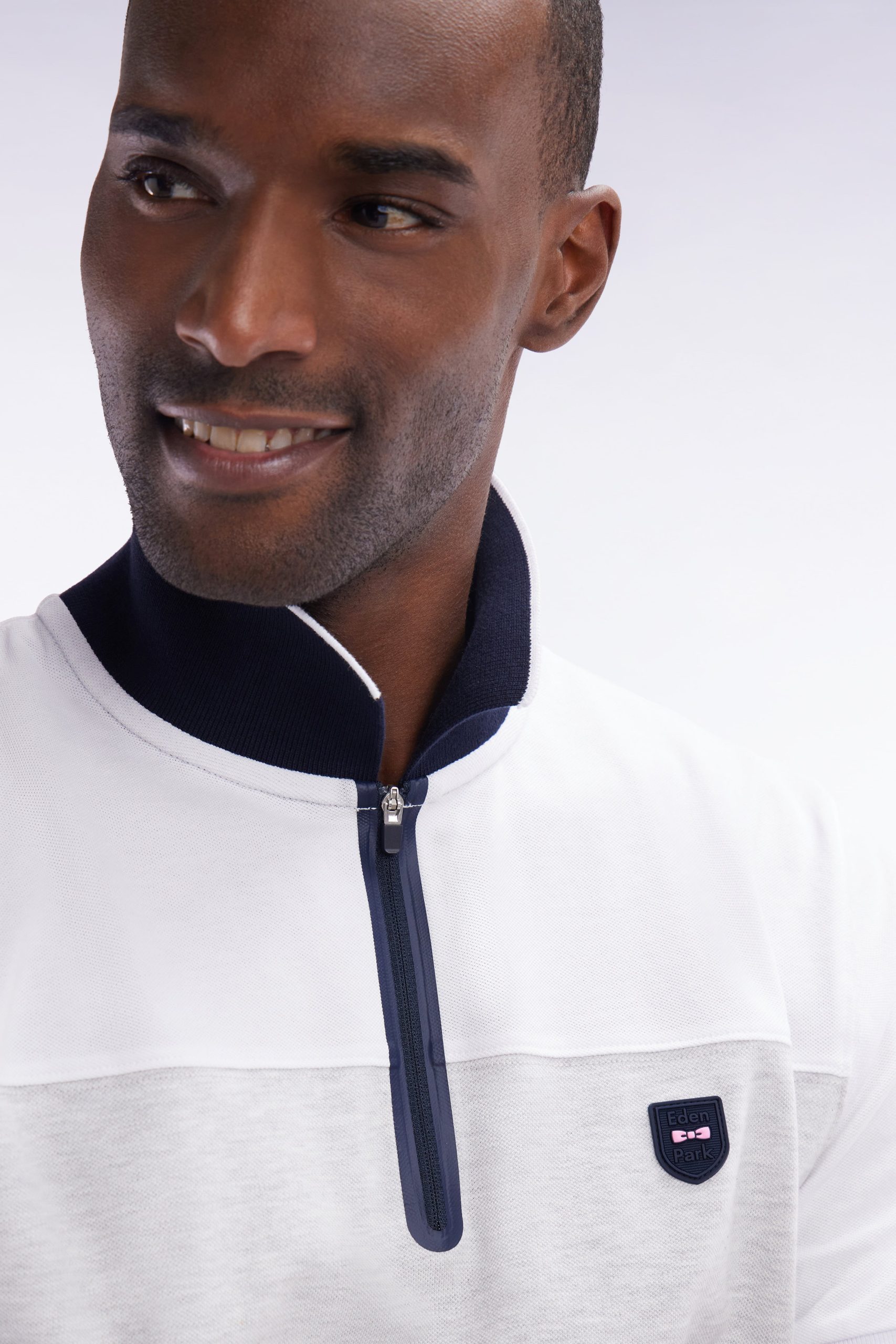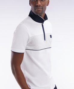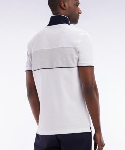 Eden Park Homme Men’s Polo À Manches Courtes En Piqué De Coton Chiné Stretch Blanc Détails C