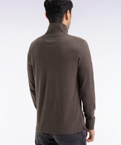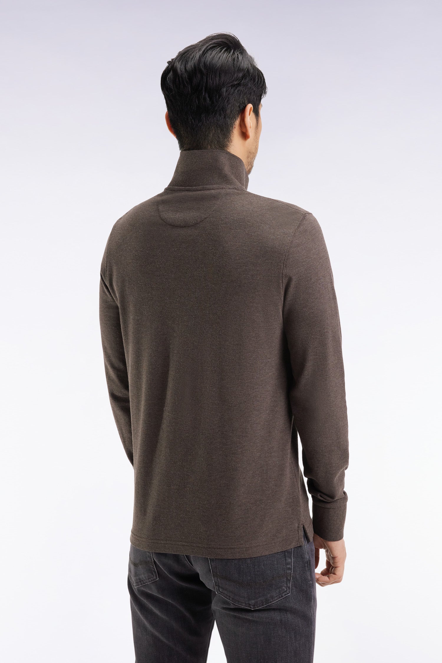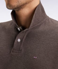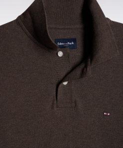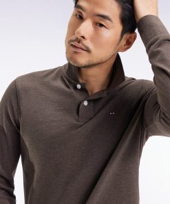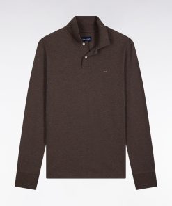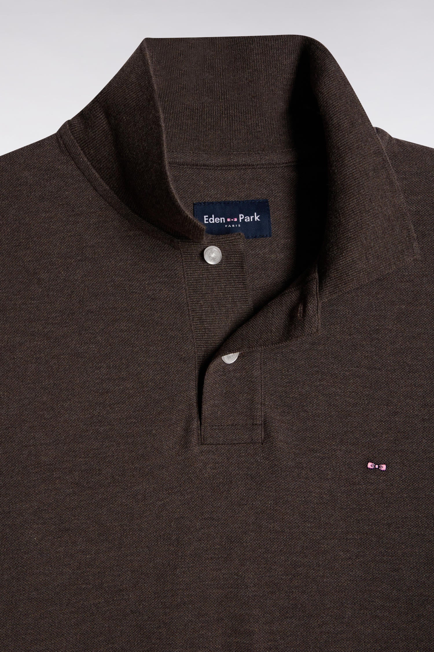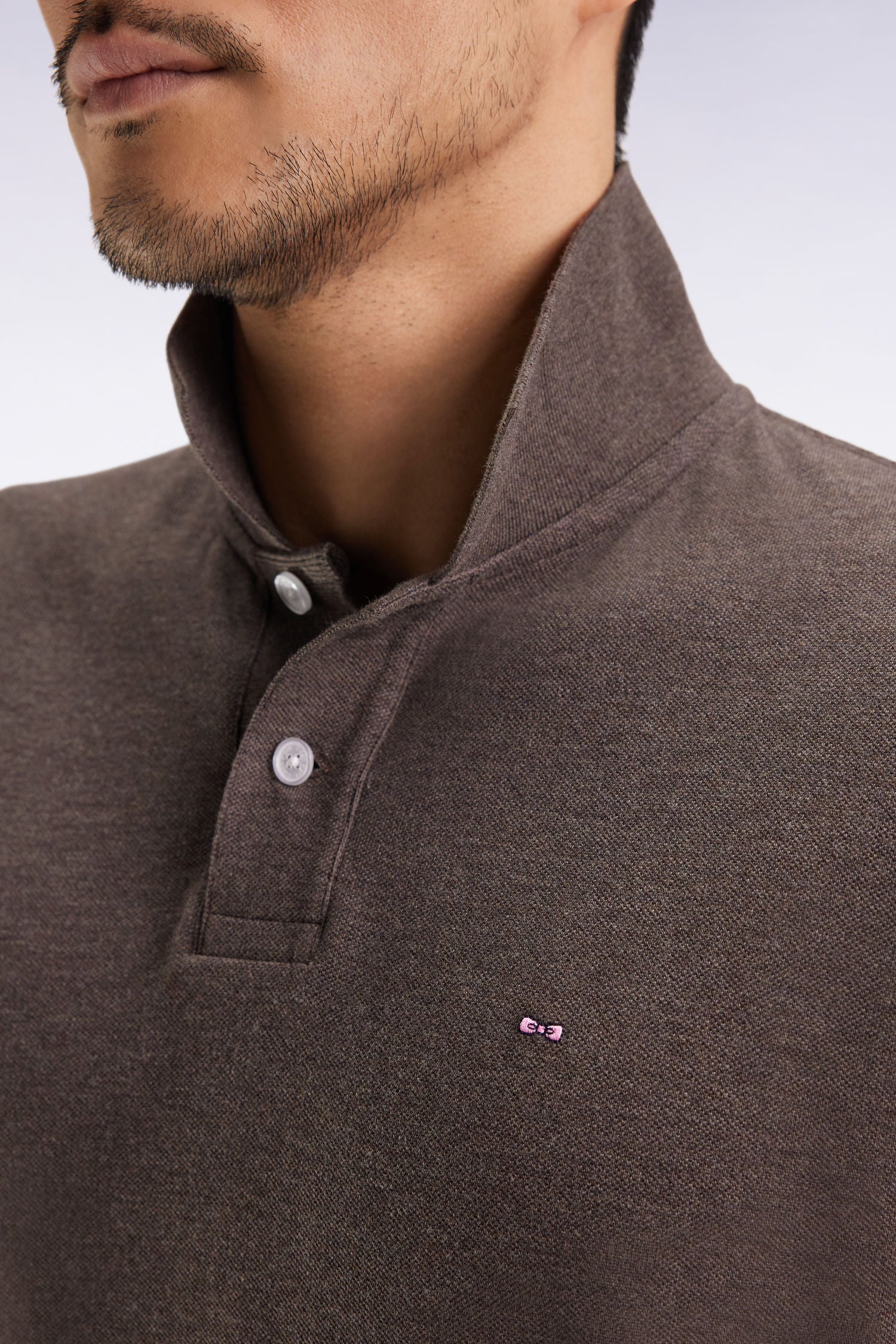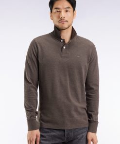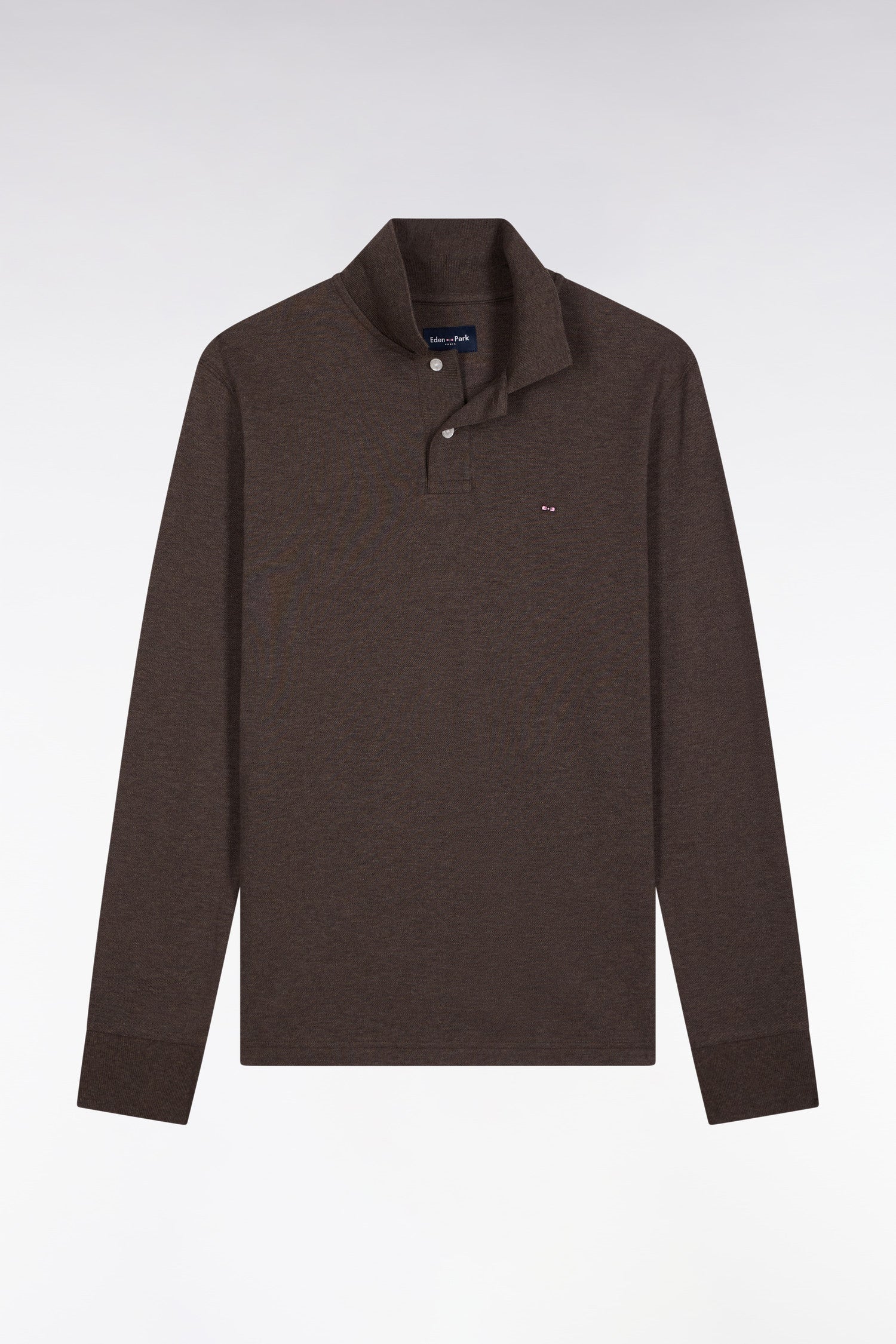 Eden Park Homme Men’s Polo À Manches Longues En Coton Chiné Marron Coupe Droite