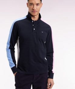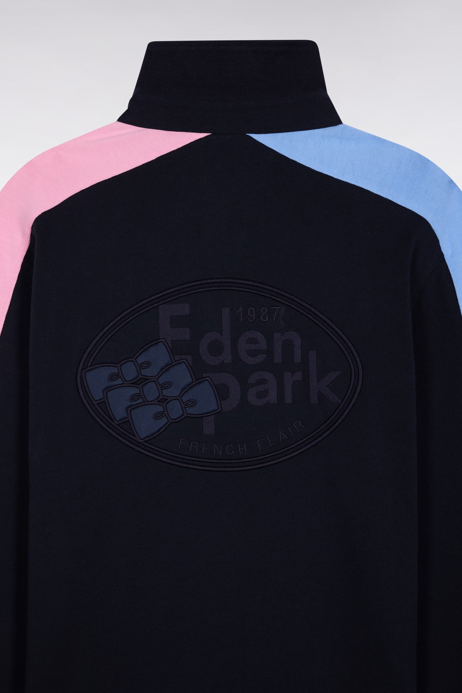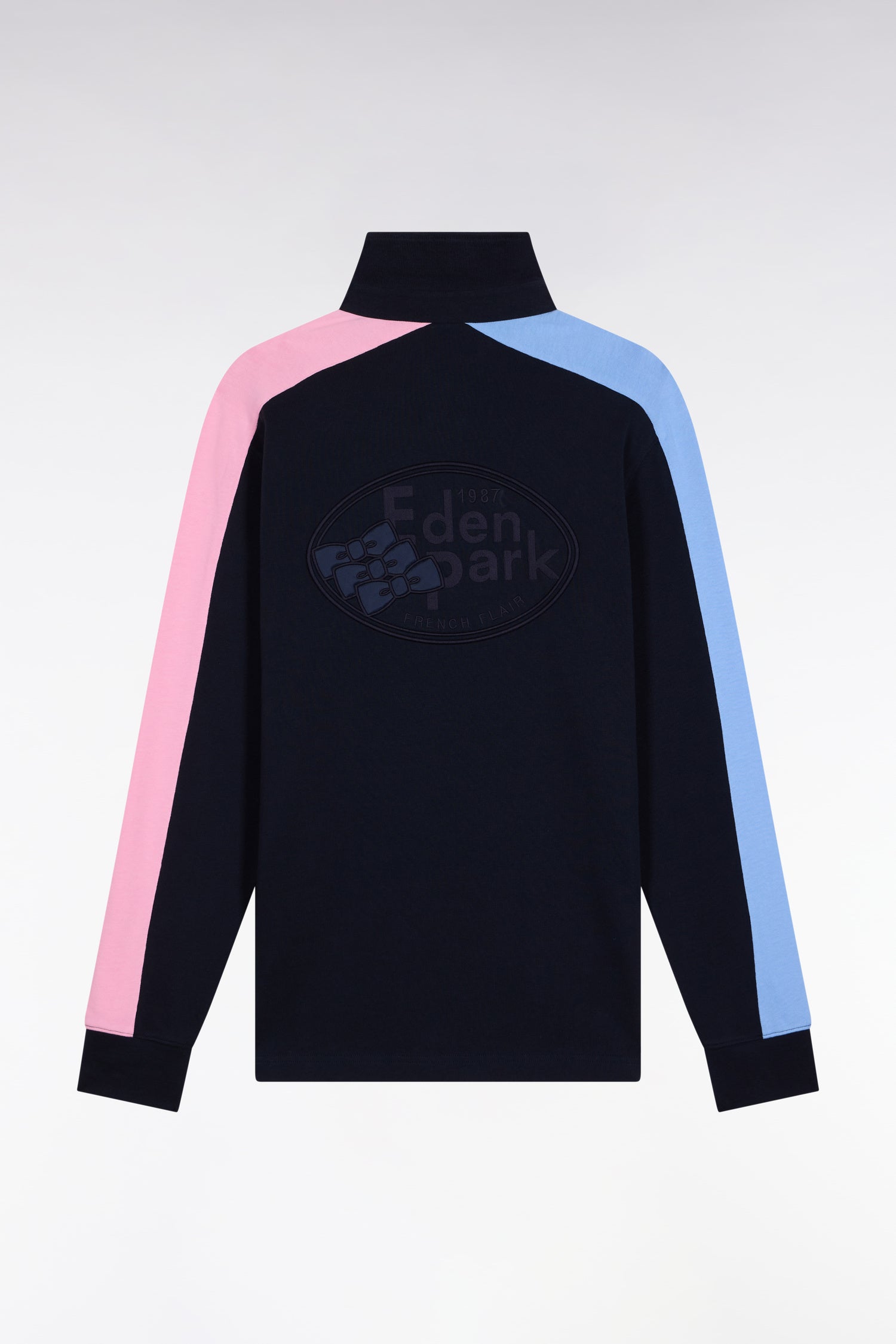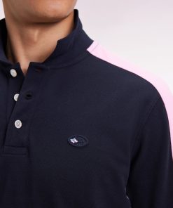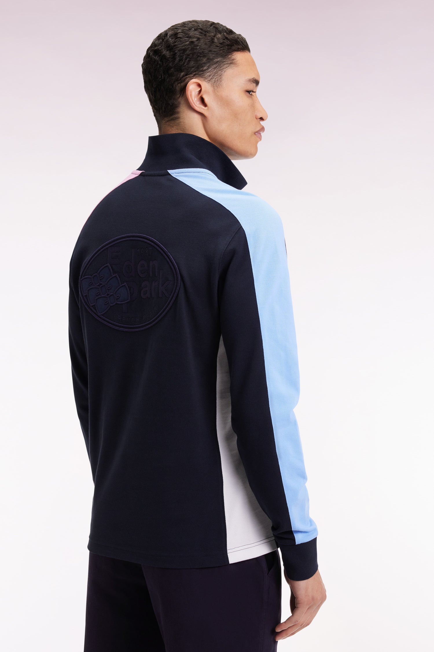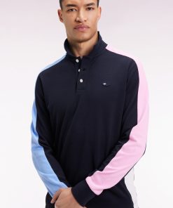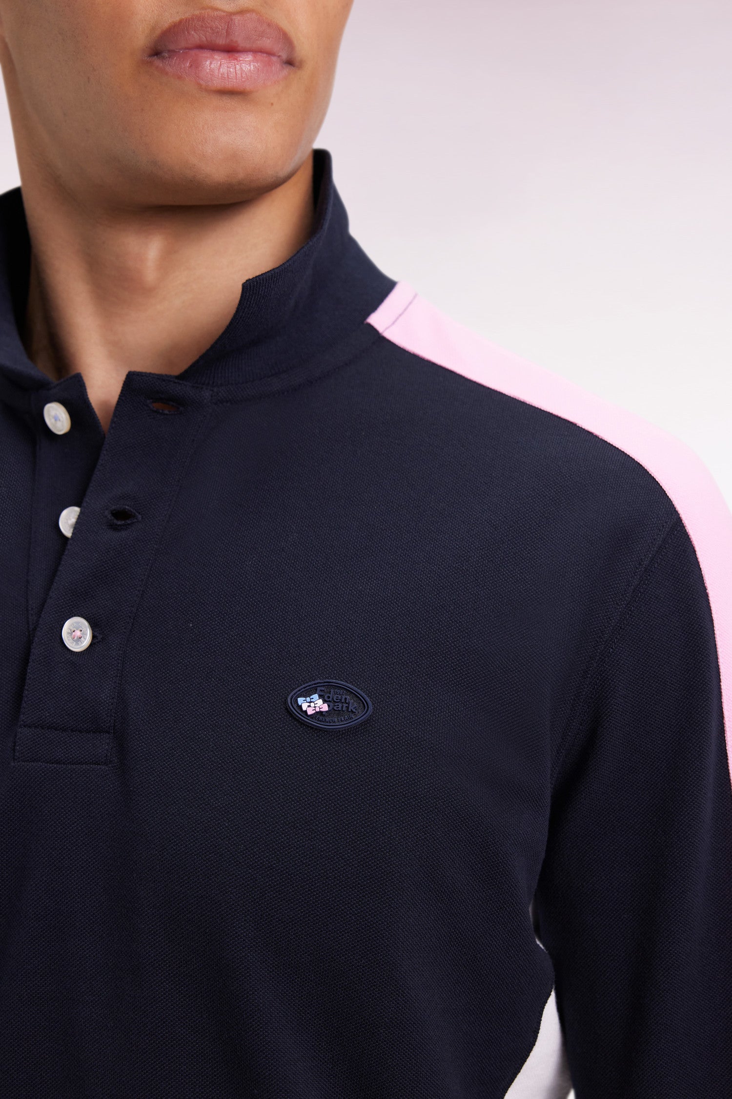 Ce polo à manches longues revisite un essentiel masculin dans le plus pur esprit Eden Park avec ses découpes tricolores contrastées sur les manches. Son coloris marine intemporel et ses finitions soignées en font un essentiel durable du vestiaire de mi-saison