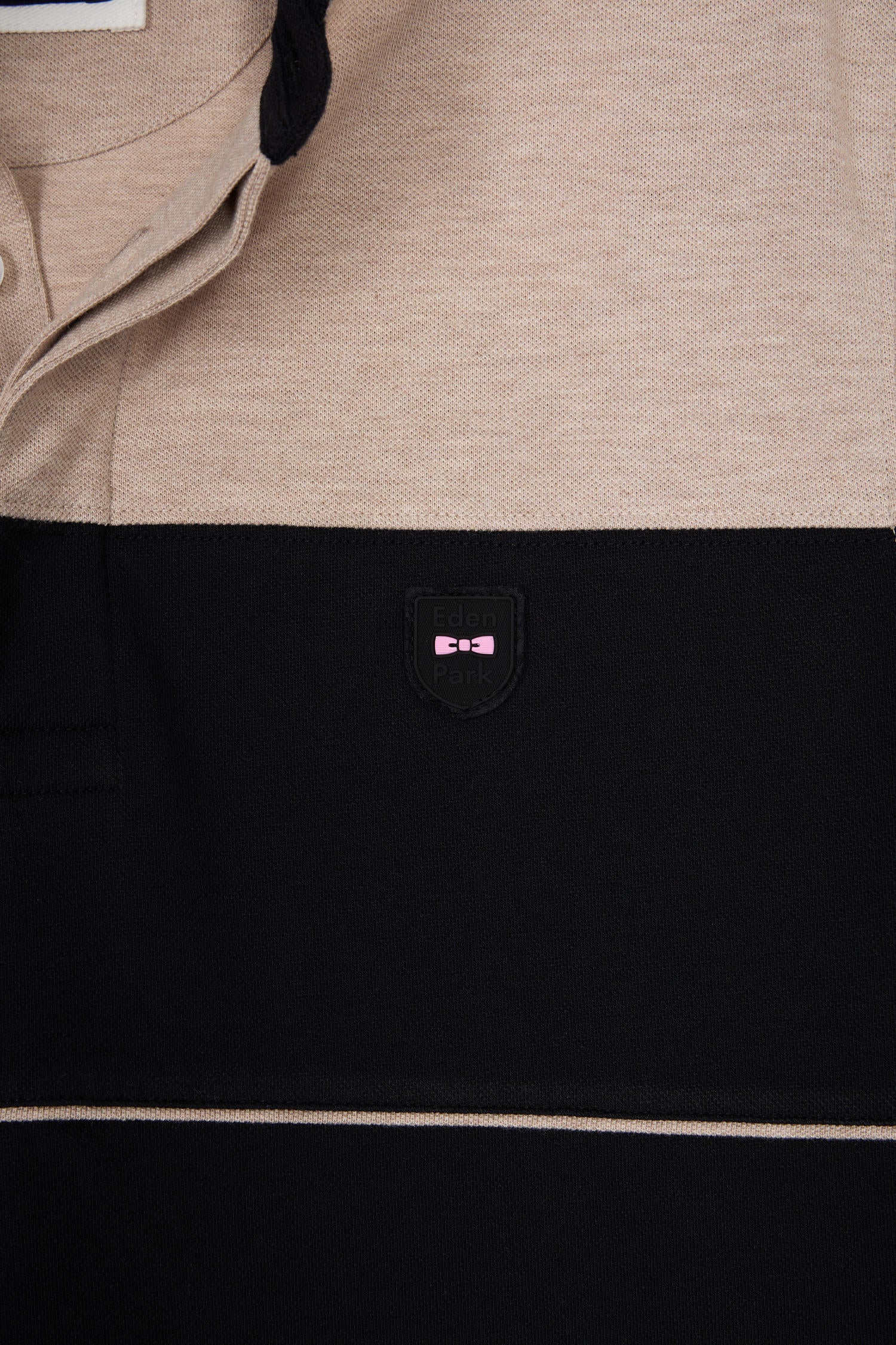 Ce polo se distingue par ses découpes qui ajoutent un jeu de couleur travaillé, souligné par un passepoil ainsi qu’un dessous de col et des bordures de manches contrastées. Ce polo en piqué de coton stretch est offert dans une coupe légèrement ajustée pour un tombé seyant et moderne