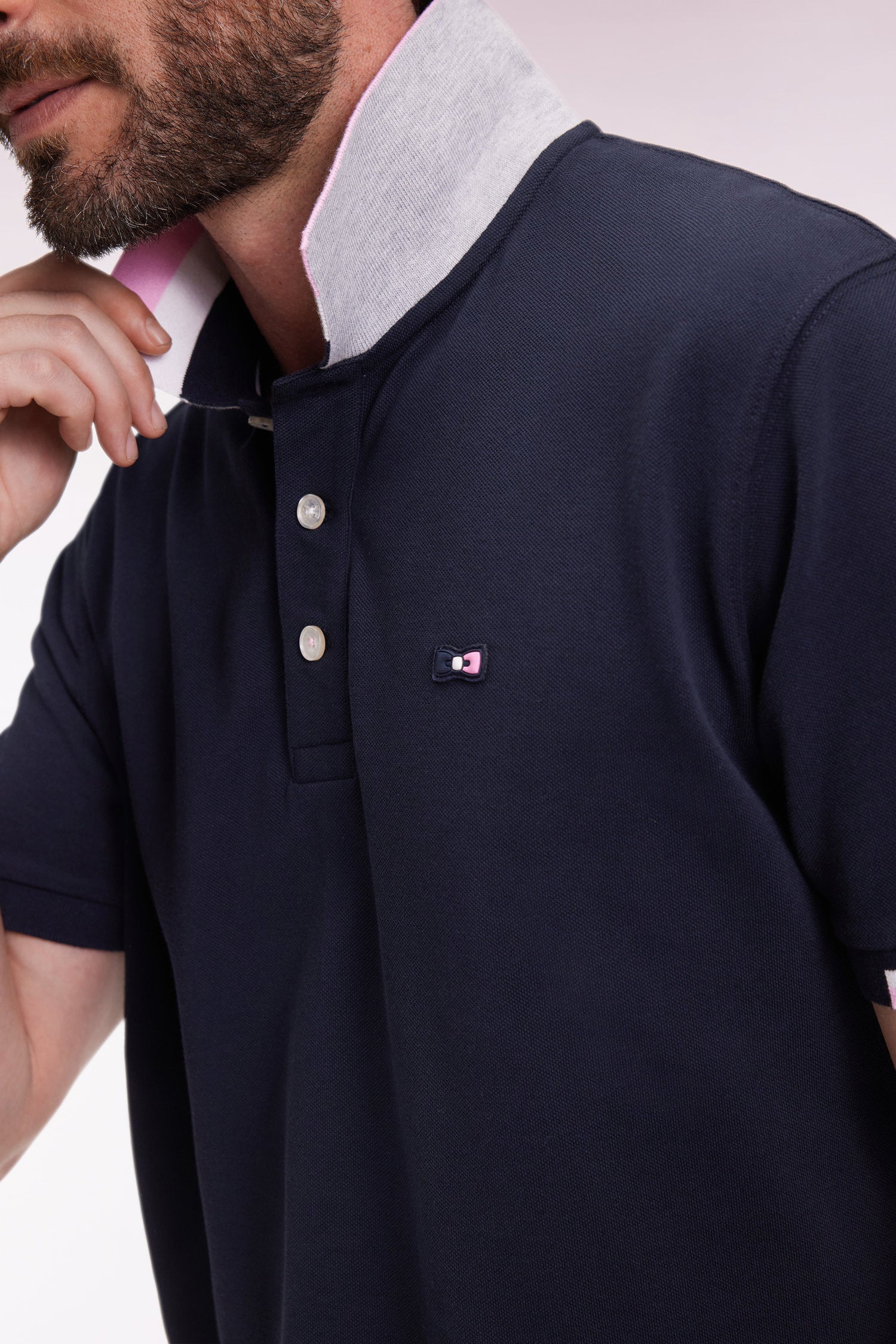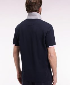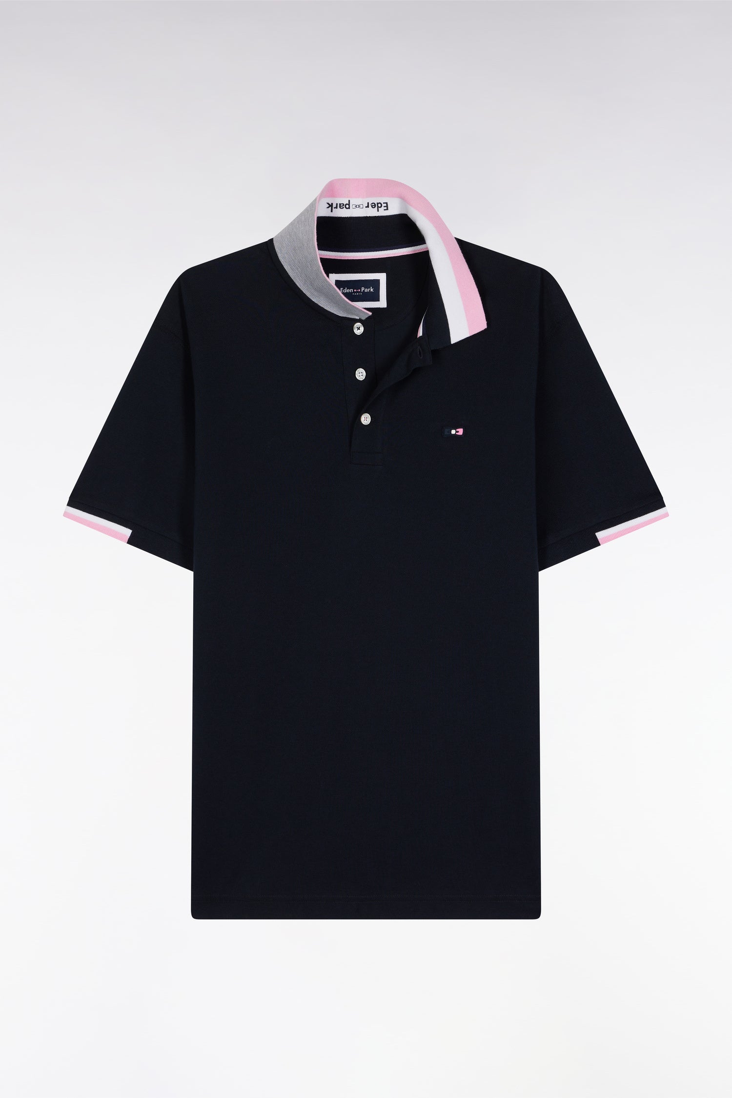 Ce polo à manches courtes mise sur une élégance sportive assumée. Confectionné en piqué de coton doux et respirant, il se distingue par ses larges rayures tricolores en bordure de manches et sur le col, apportant une signature graphique emblématique. Le col et les finitions de manches sont en bords-côtes tricotés à plat pour plus de confort et de tenue saison après saison. À l’arrière du col polo à l’envers contrasté, une impression Eden Park en relief vient souligner le souci du détail de nos ateliers. Ce modèle est disponible en marine ou en noir, toujours rehaussé de ses iconiques accents tricolores