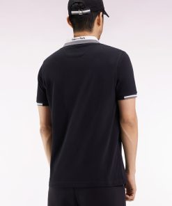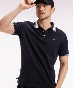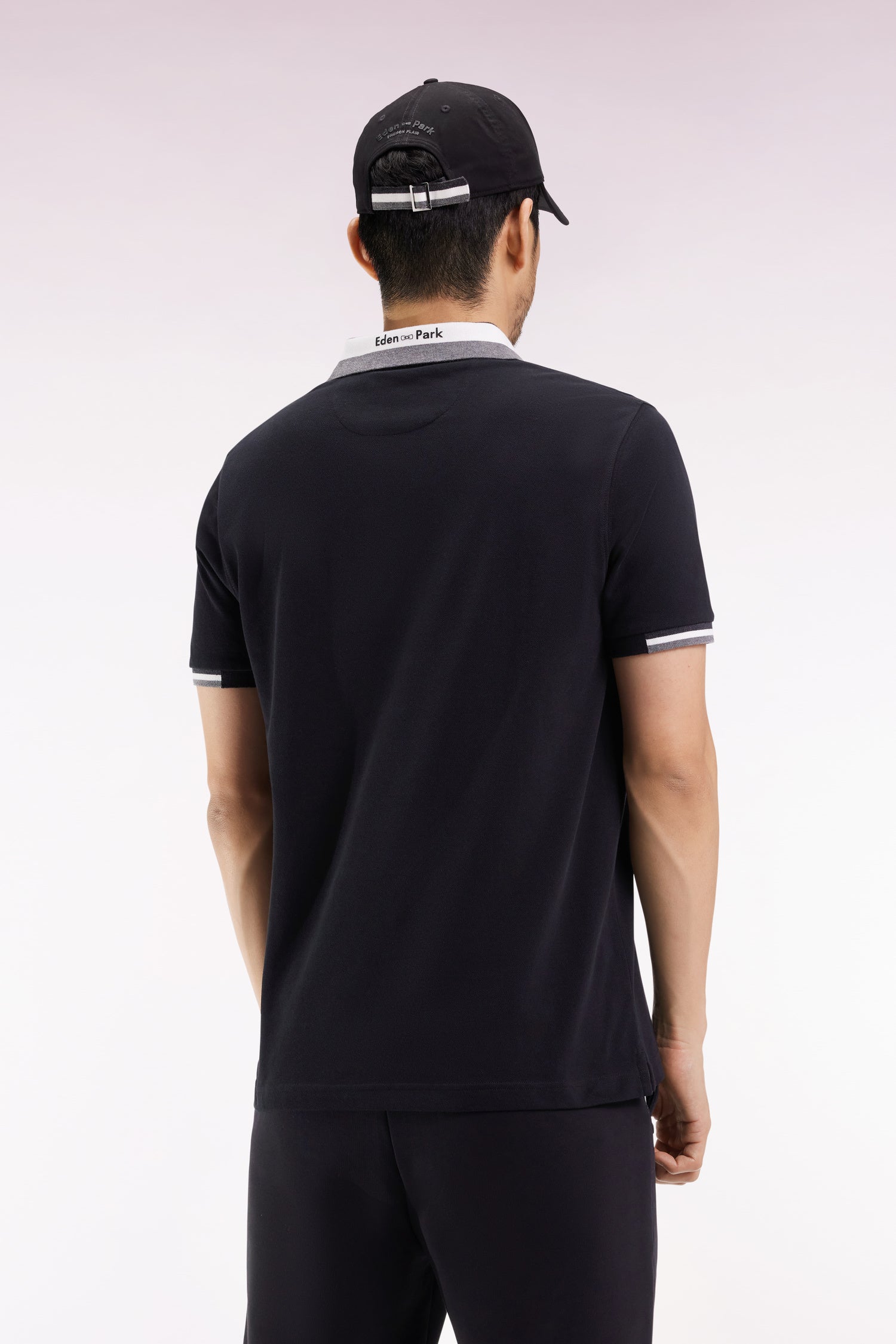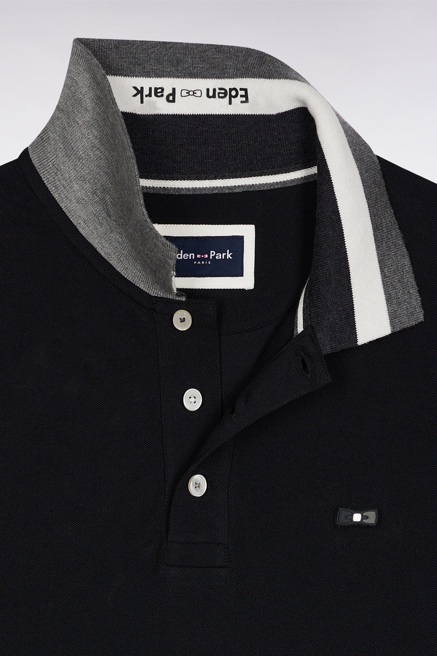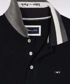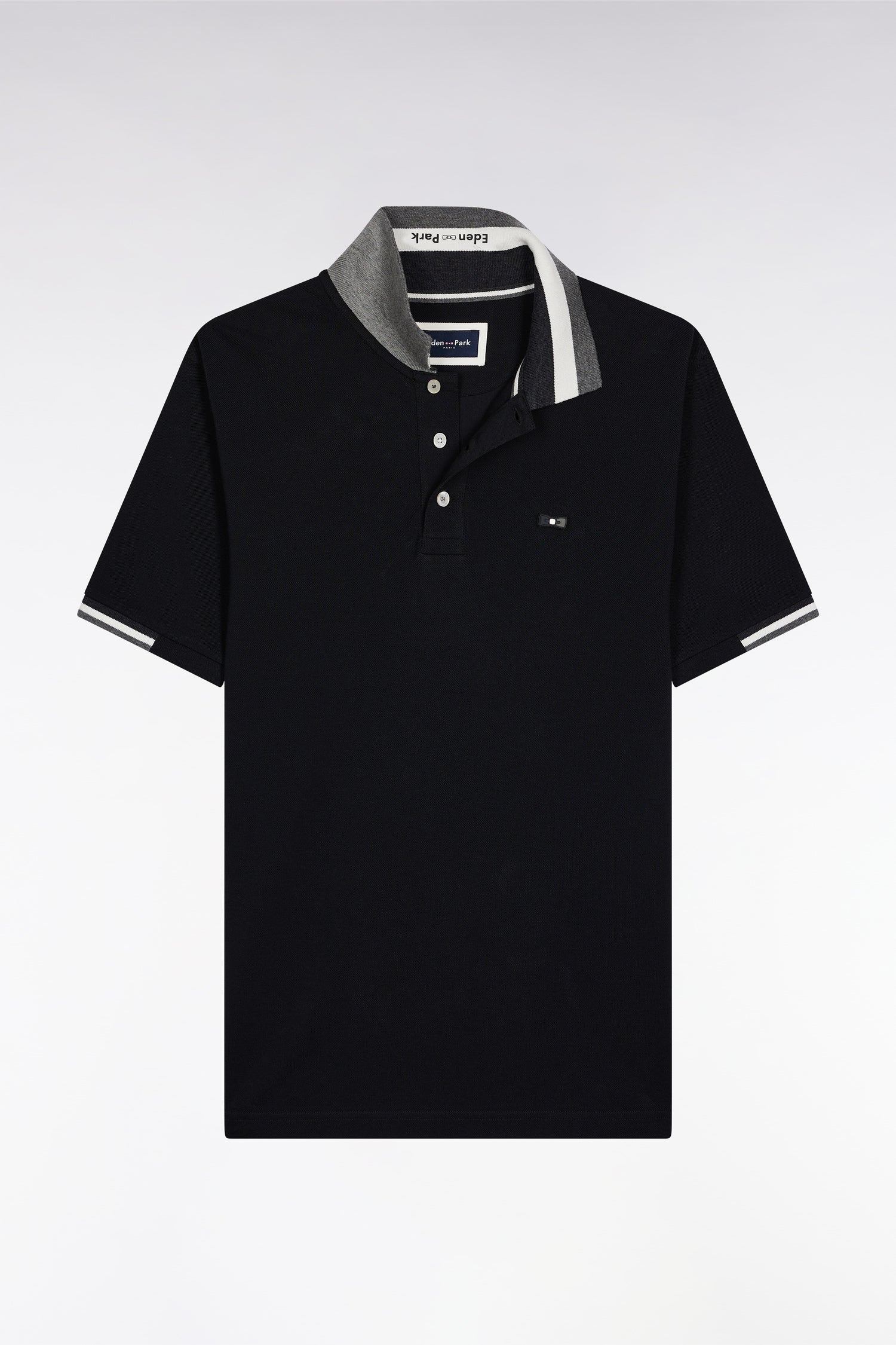 Eden Park Homme Men’s Polo Manches Courtes En Coton Noir Détails Tricolores Coupe Ample