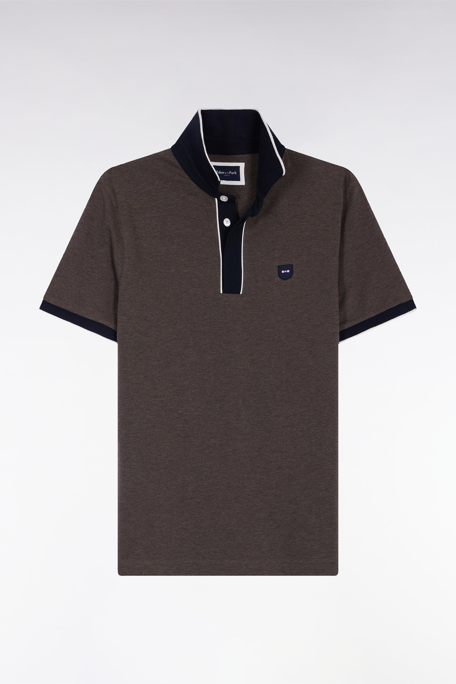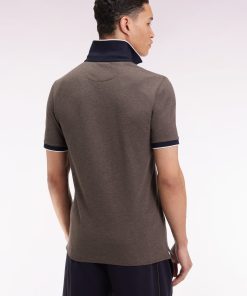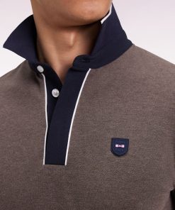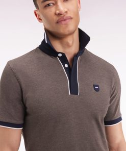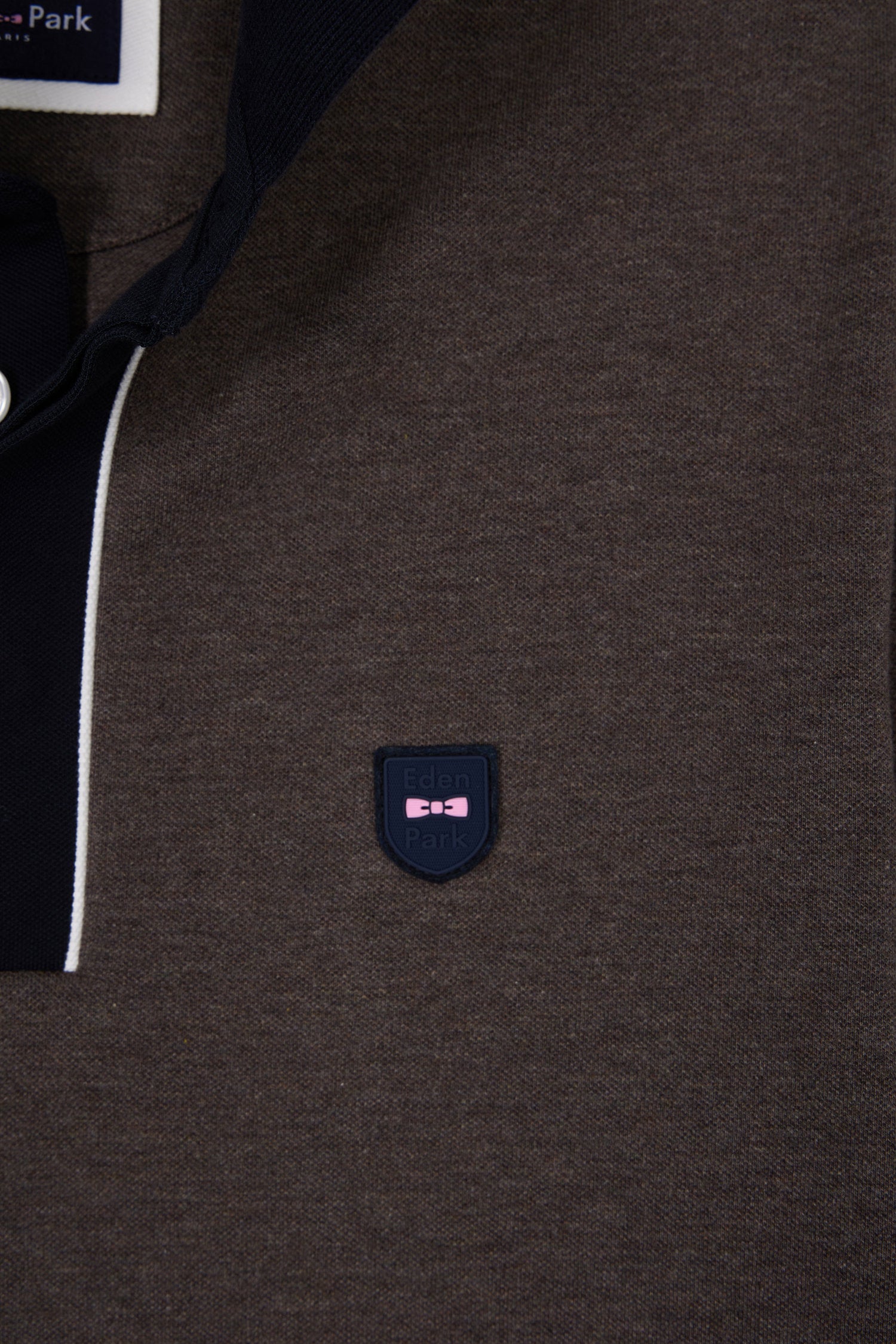 Eden Park Homme Men’s Polo Manches Courtes En Piqué Coton Stretch Marron Coupe Slim