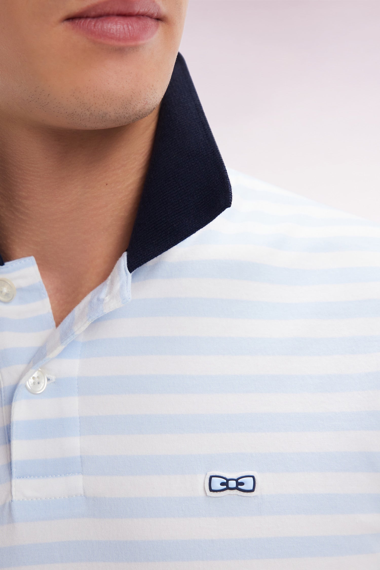 Pour une touche colorée et graphique, Eden Park réinvente le polo dans une version marinière tendance. Disponible en bleu ciel, jaune ou rose, ce modèle à coupe slim plus ajustée arbore un nœud papillon assorti avec contour bleu marine. Idéal pour apporter une touche de fantaisie à une tenue d’été.