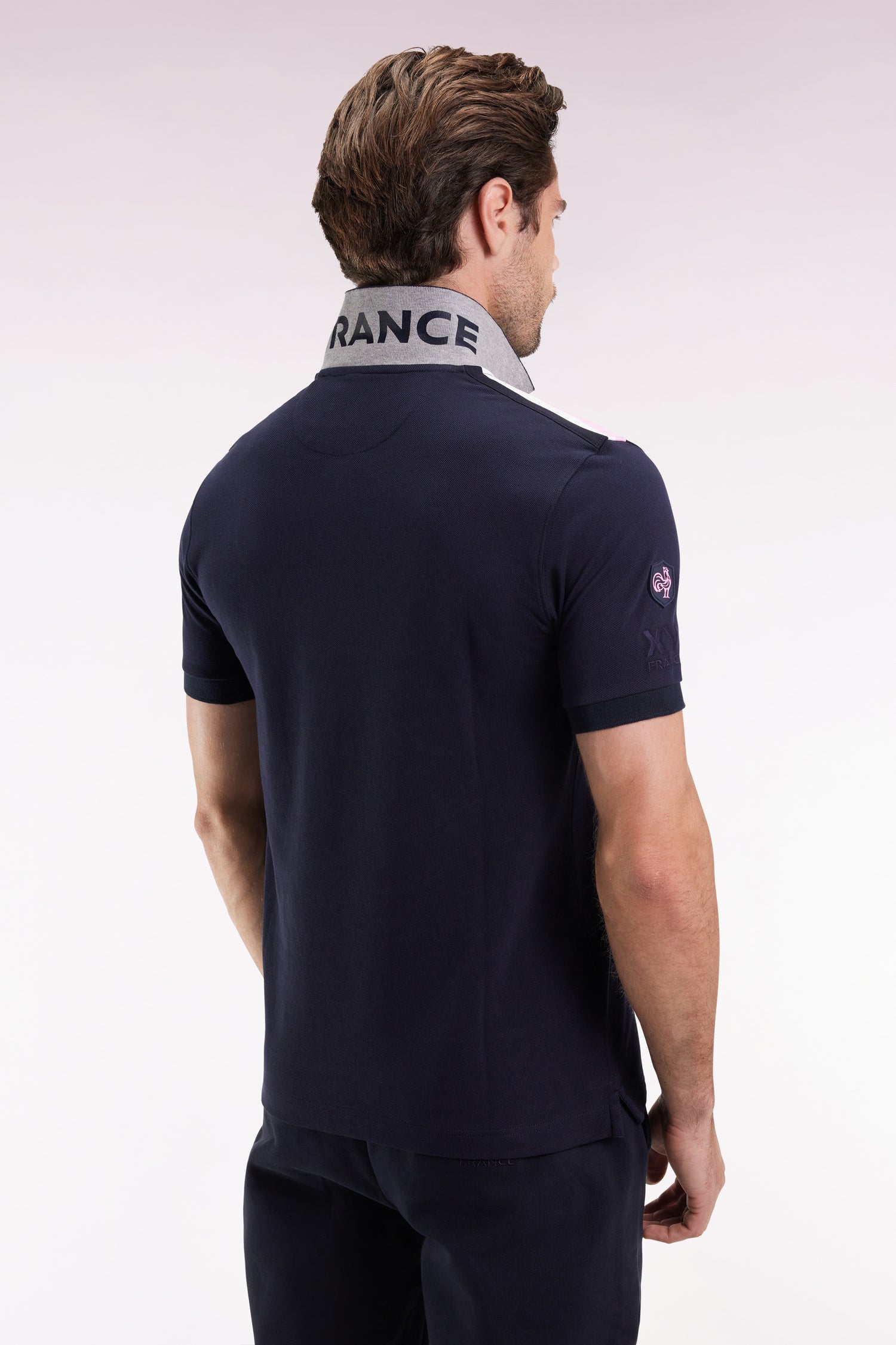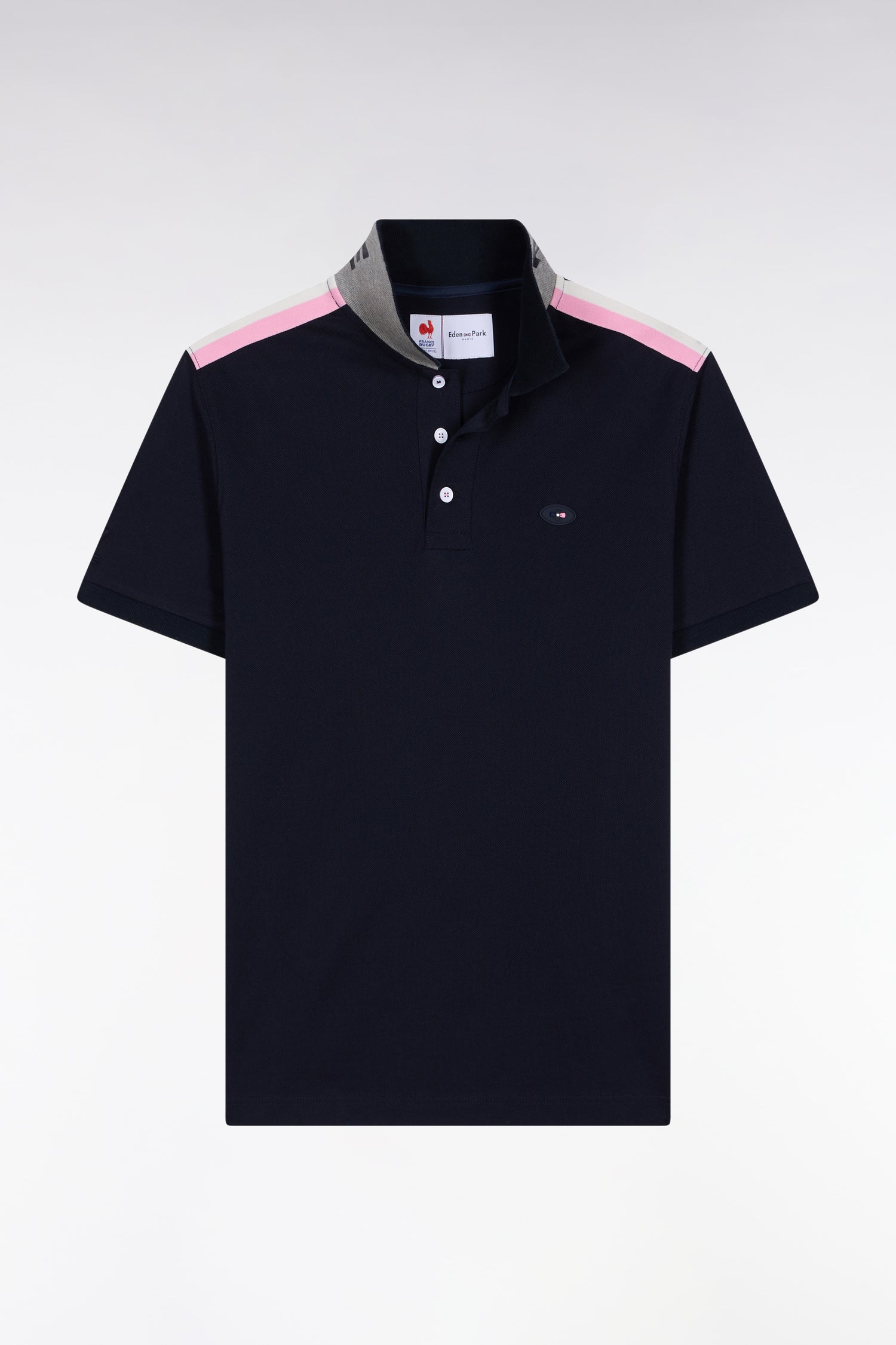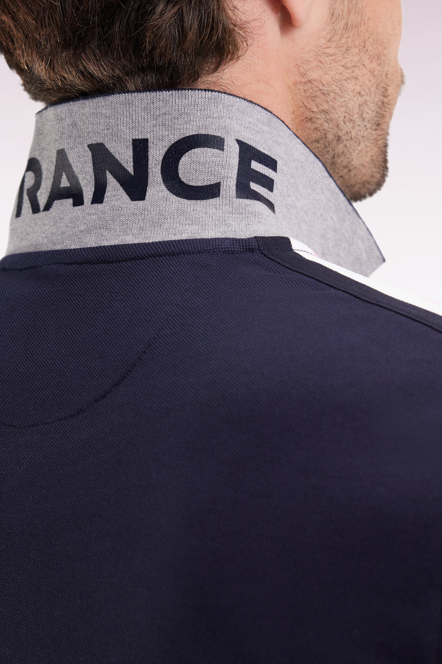 Ce polo à manches courtes incarne l’esprit sportif d’Eden Park et du XV de France masculin avec ses rubans tricolores bleu ciel, blanc et rose brodés sur l’épaule qui dynamisent l’allure. Son dessous de col comporte l’inscription “France” permettant de subtilement signifier votre soutien à l’équipe nationale. Sur la poitrine, un badge silicone contraste subtilement avec le piqué de coton aussi doux que respirant. Une pièce emblématique du vestiaire rugby chic à forte personnalité jusqu’aux boutons tricolores reprenant la forme d’un ballon de rugby !