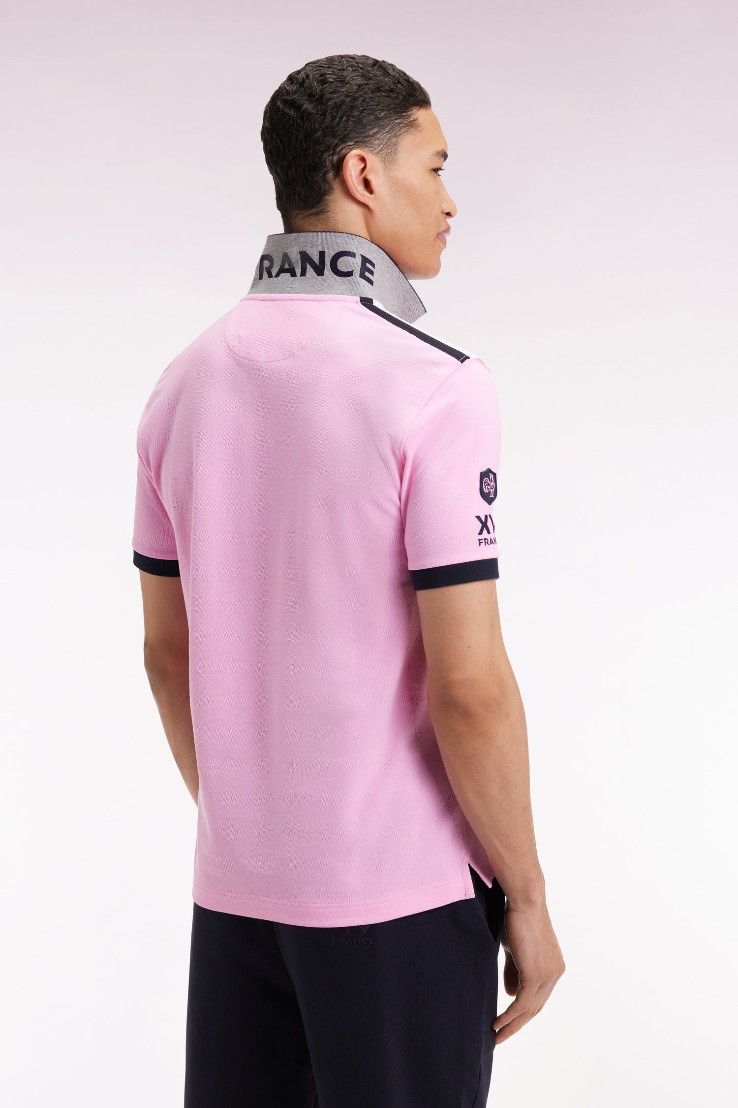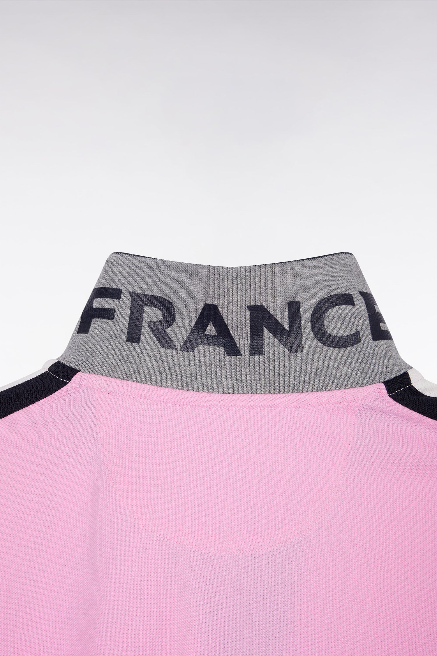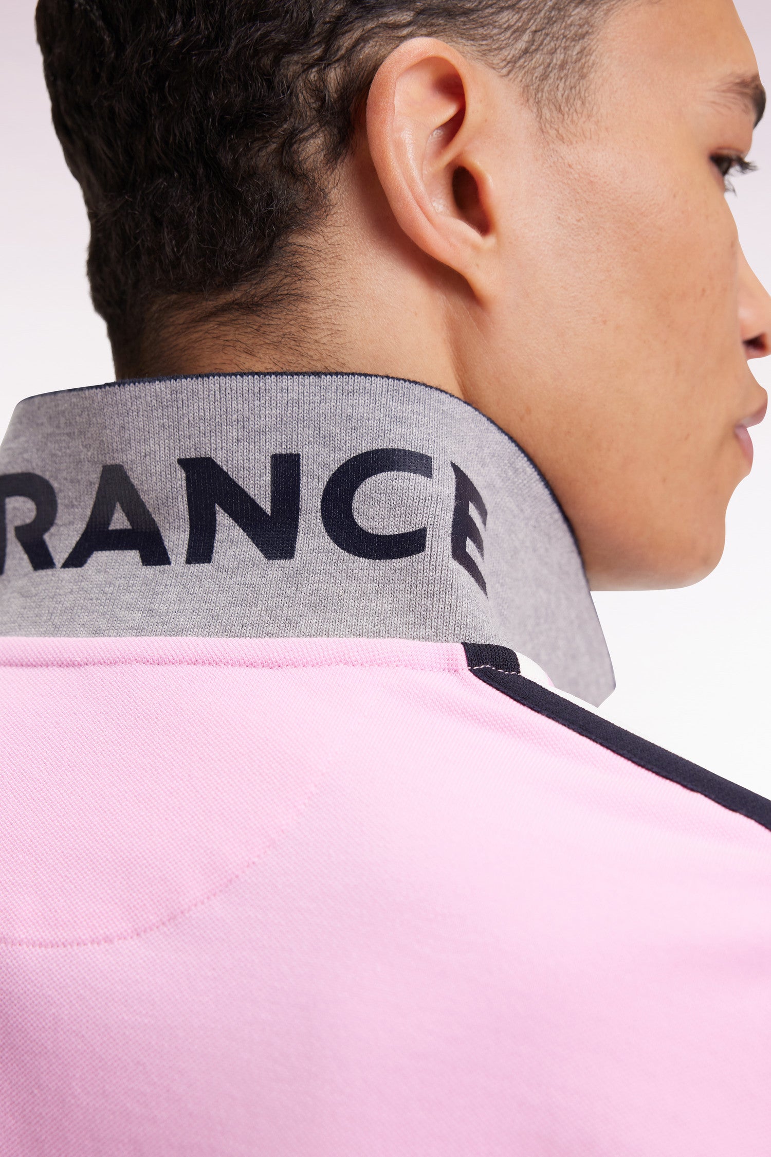 Ce polo à manches courtes incarne l’esprit sportif d’Eden Park et du XV de France masculin avec ses rubans tricolores bleu ciel, blanc et rose brodés sur l’épaule qui dynamisent l’allure. Son dessous de col comporte l’inscription “France” permettant de subtilement signifier votre soutien à l’équipe nationale. Sur la poitrine, un badge silicone contraste subtilement avec le piqué de coton aussi doux que respirant. Une pièce emblématique du vestiaire rugby chic à forte personnalité jusqu’aux boutons tricolores reprenant la forme d’un ballon de rugby !