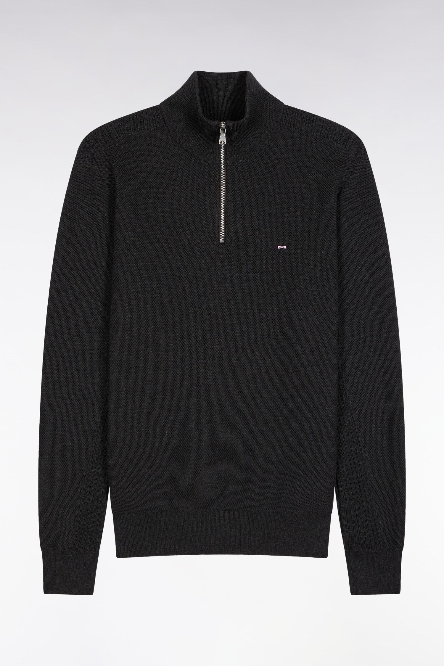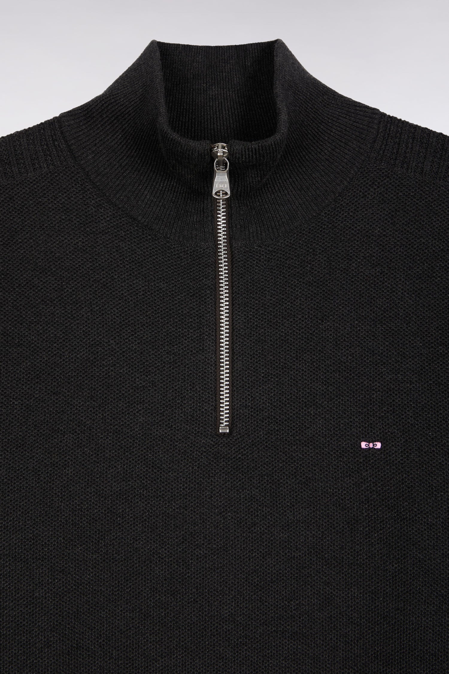 Tricoté dans un coton nid d’abeille pour une texture subtile et légère, ce pull camionneur à col zippé se distingue par son tricotage en côtes sur les côtés, les épaules et le dessous de manches. Son col montant zippé permet de moduler l’allure selon l’envie. Décliné dans une palette de coloris intemporels, il s’impose comme un essentiel du vestiaire masculin, à porter saison après saison